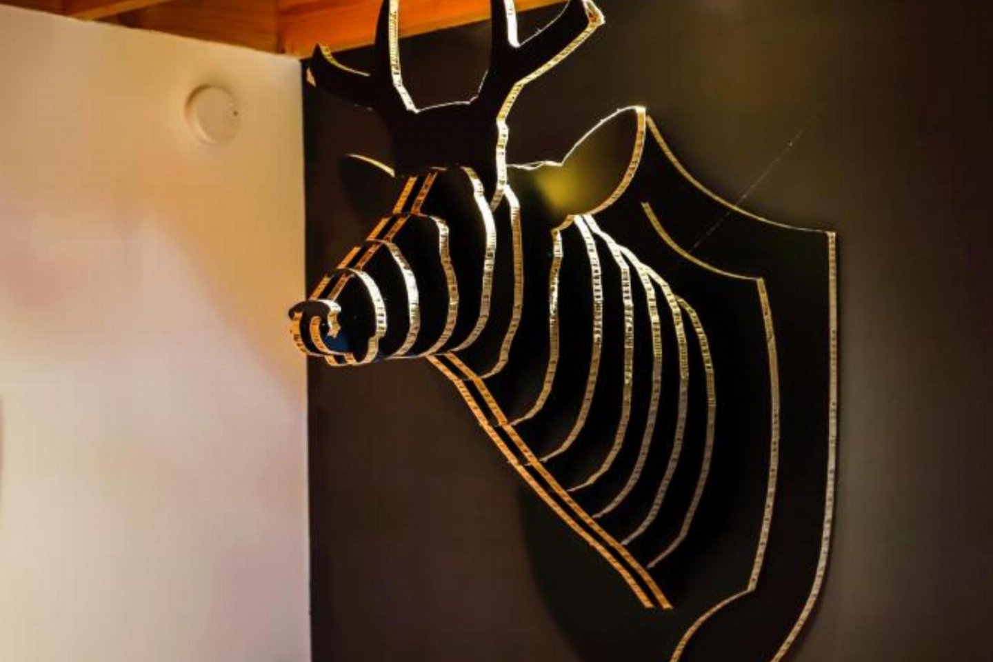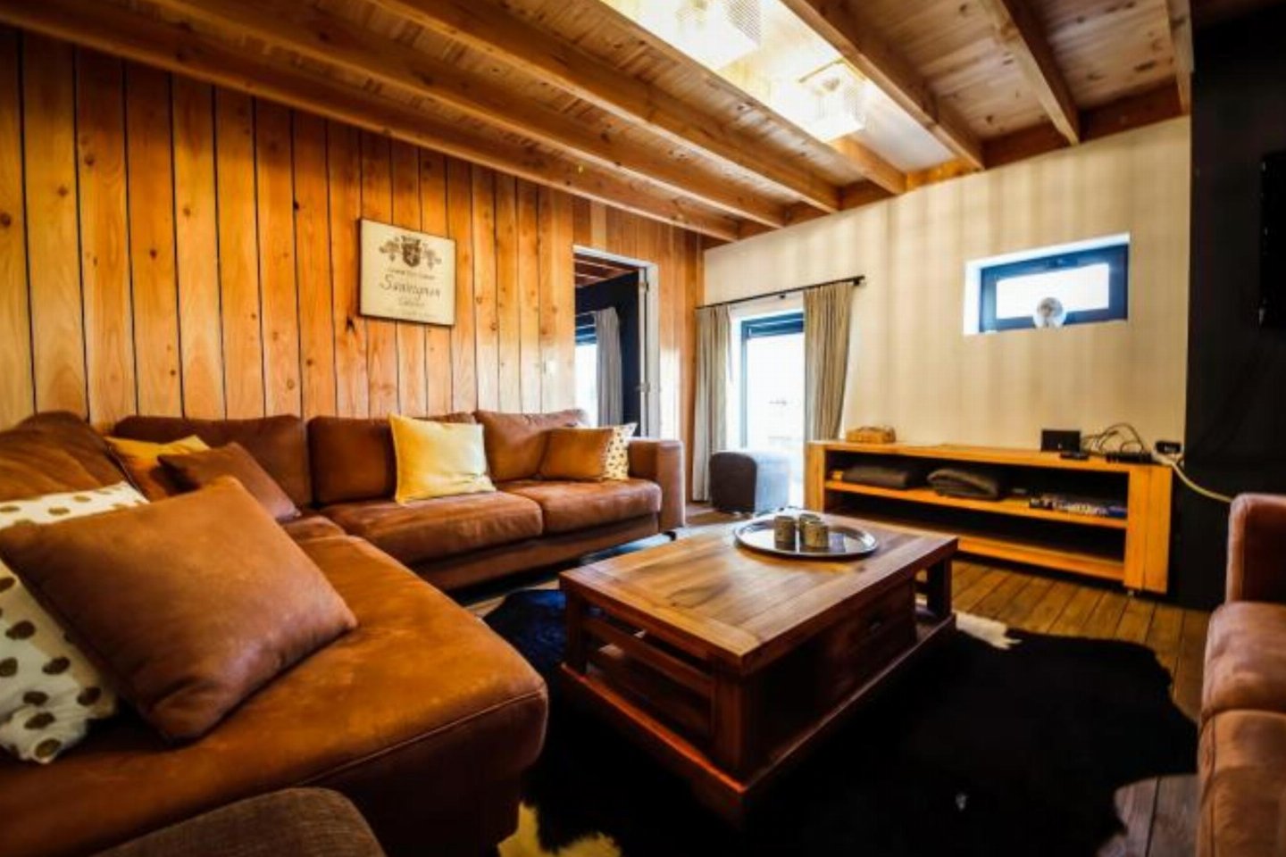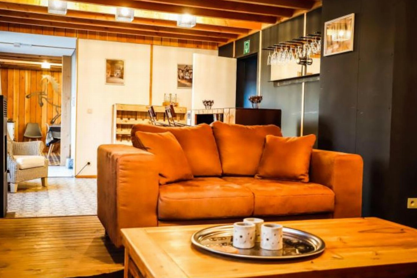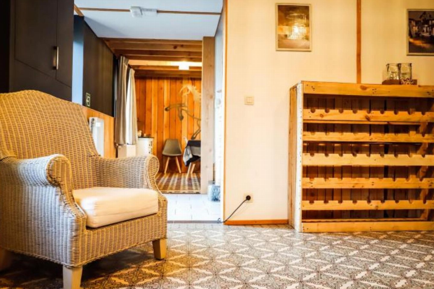 Begane grond: (woonkamer(TV, open haard, zithoek, bar), eetkamer(eettafel, open haard, 1x kinderstoel), open keuken(waterkoker, fornuis, afzuigkap, koffiezetapparaat(filtermaling), oven, magnetron, afwasmachine, koel-/vriescombinatie), toilet(wc), recreatieruimte(dart, biljart))