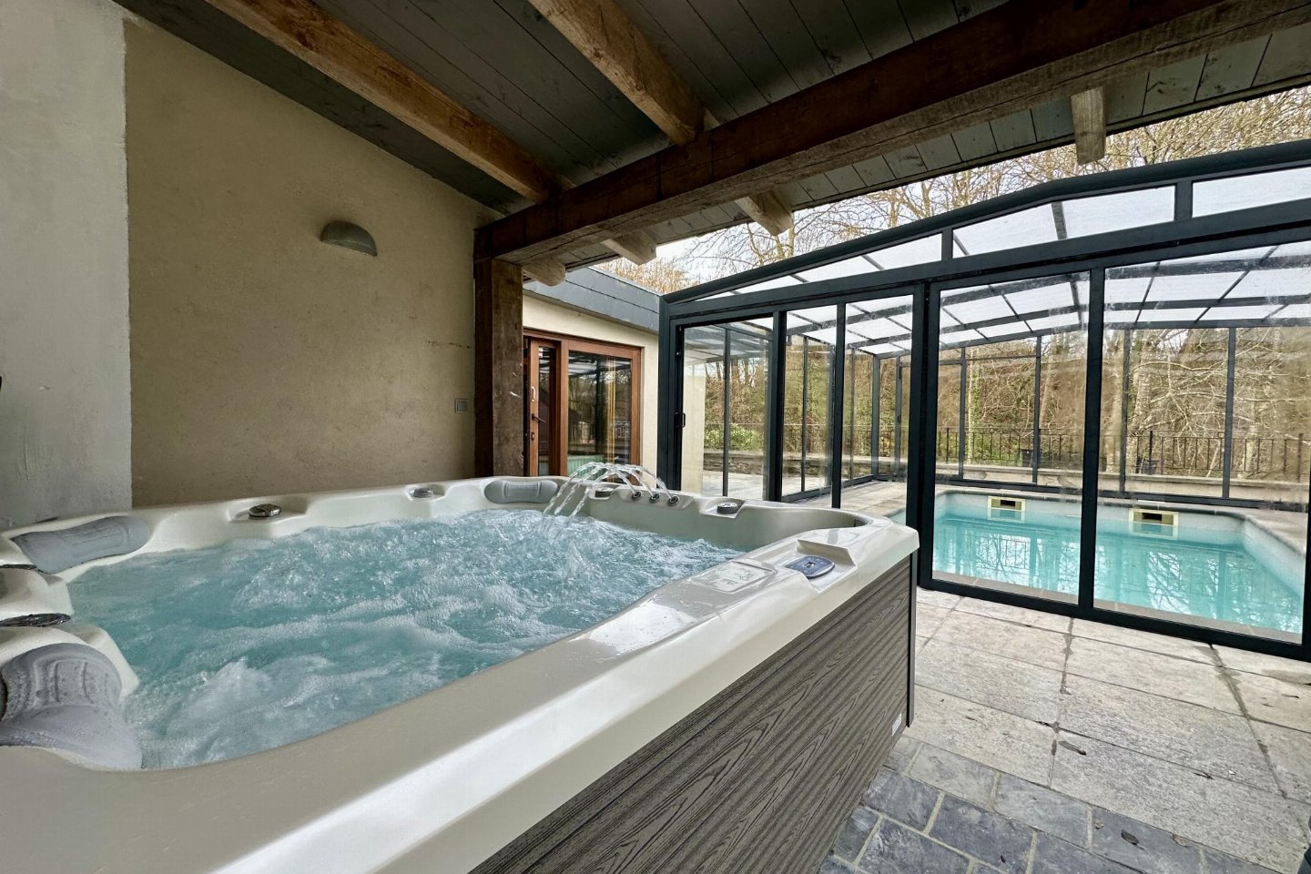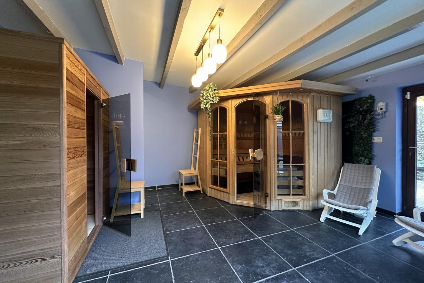 spa bad, infraroodsauna, sauna(privé), dakterras, tuin(privé, deels omheind, 2000 m2), tuinmeubilair, BBQ(houtskool), 10x parking, zwembad(privé, verwarmd, overdekt, 6 x 4 m., diepte: 1.5 - 1.6m, geopend van half Mei t/m Sep), 1x kinderbed (excl. beddengoed)