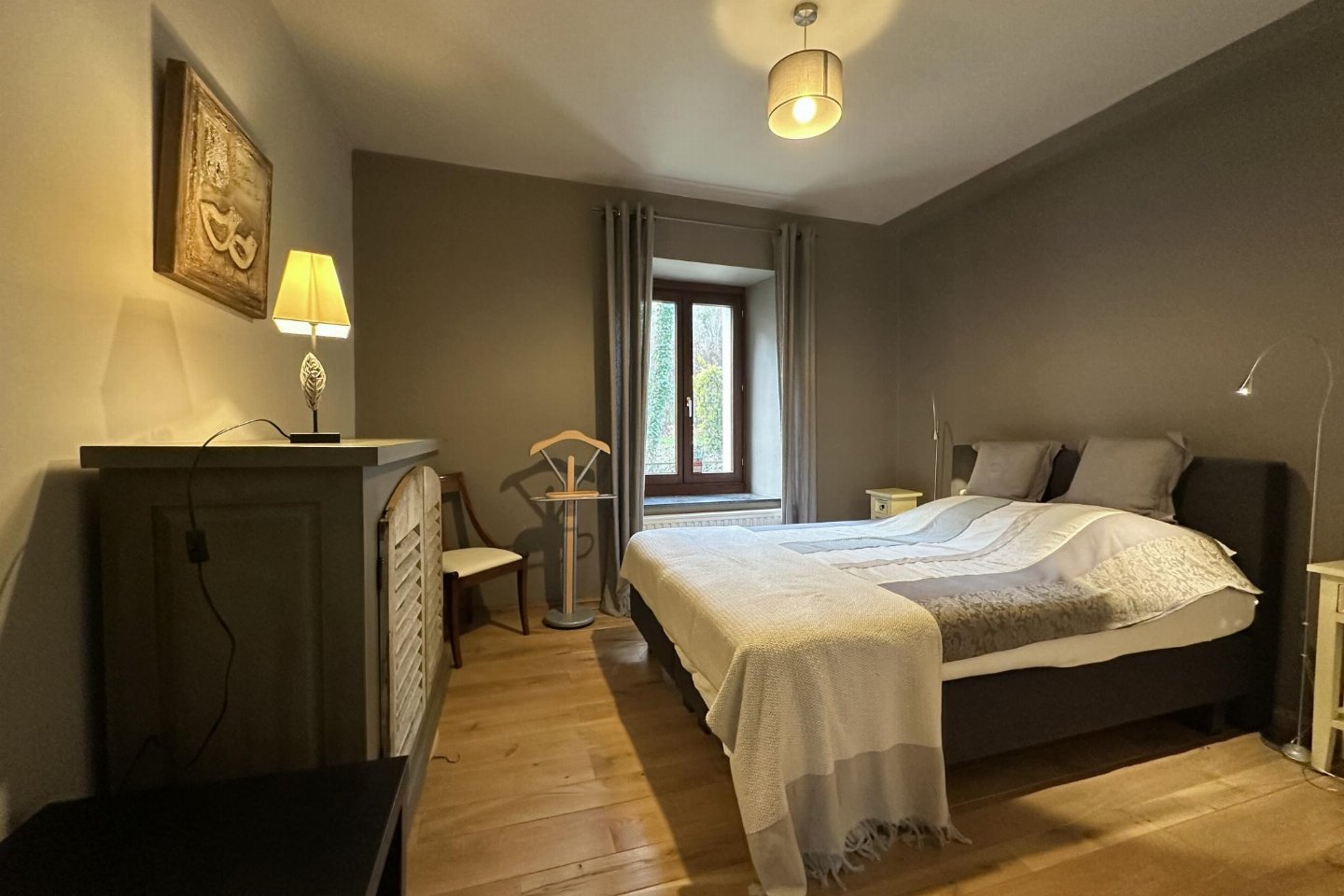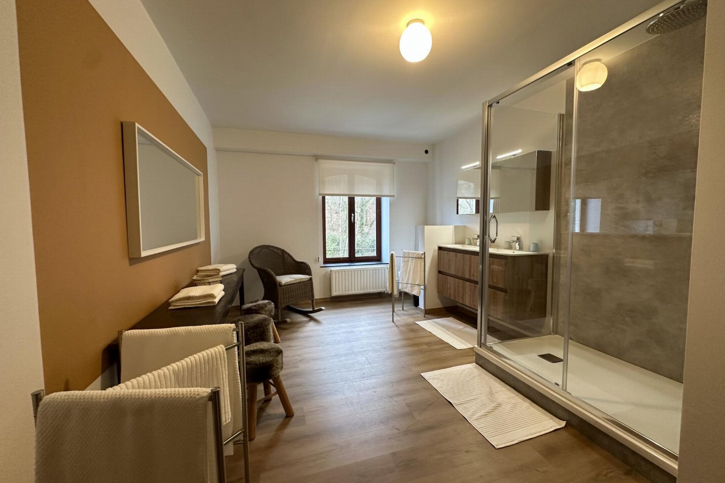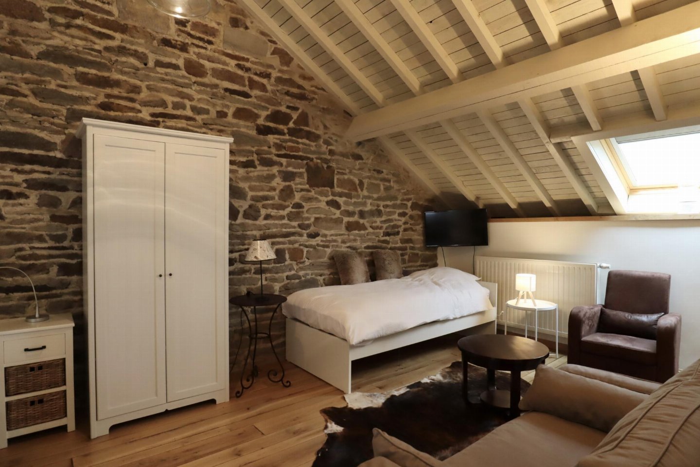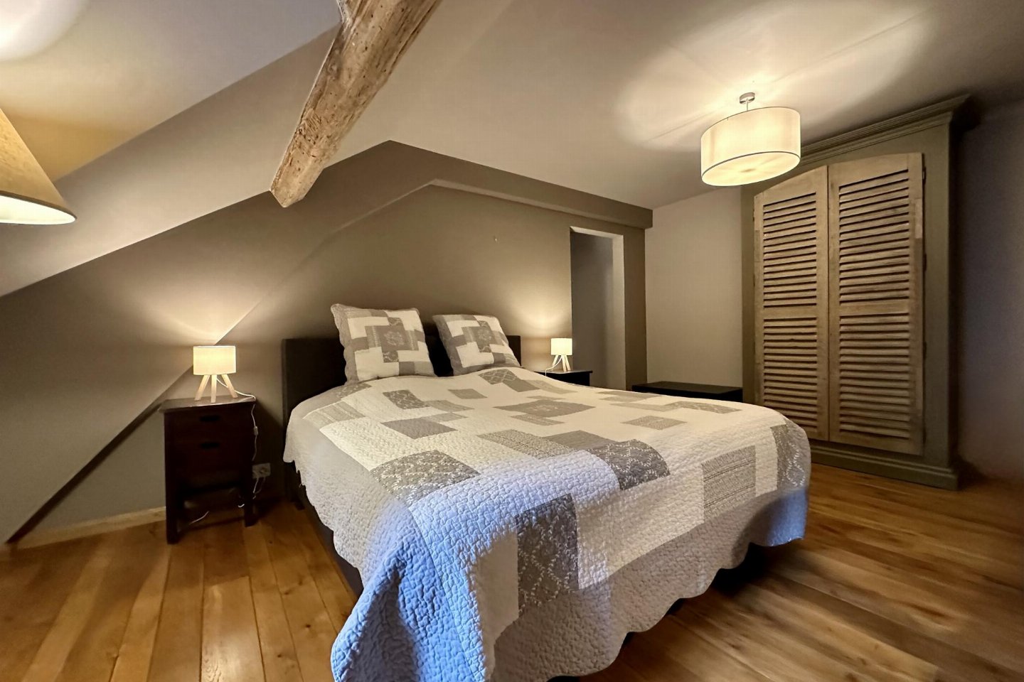 Dit voormalige hotel is gerenoveerd en omgebouwd tot een luxe gite op een landgoed van 2 hectare. Met zijn open zwembad en ontspanningsruimte met sauna is het de perfecte plek om tijd door te brengen met familie of vrienden. bed , slaapkamer met badkamer met 2x 1-pers. bed, douche, 2x wastafel, wc , vide met 2-pers.