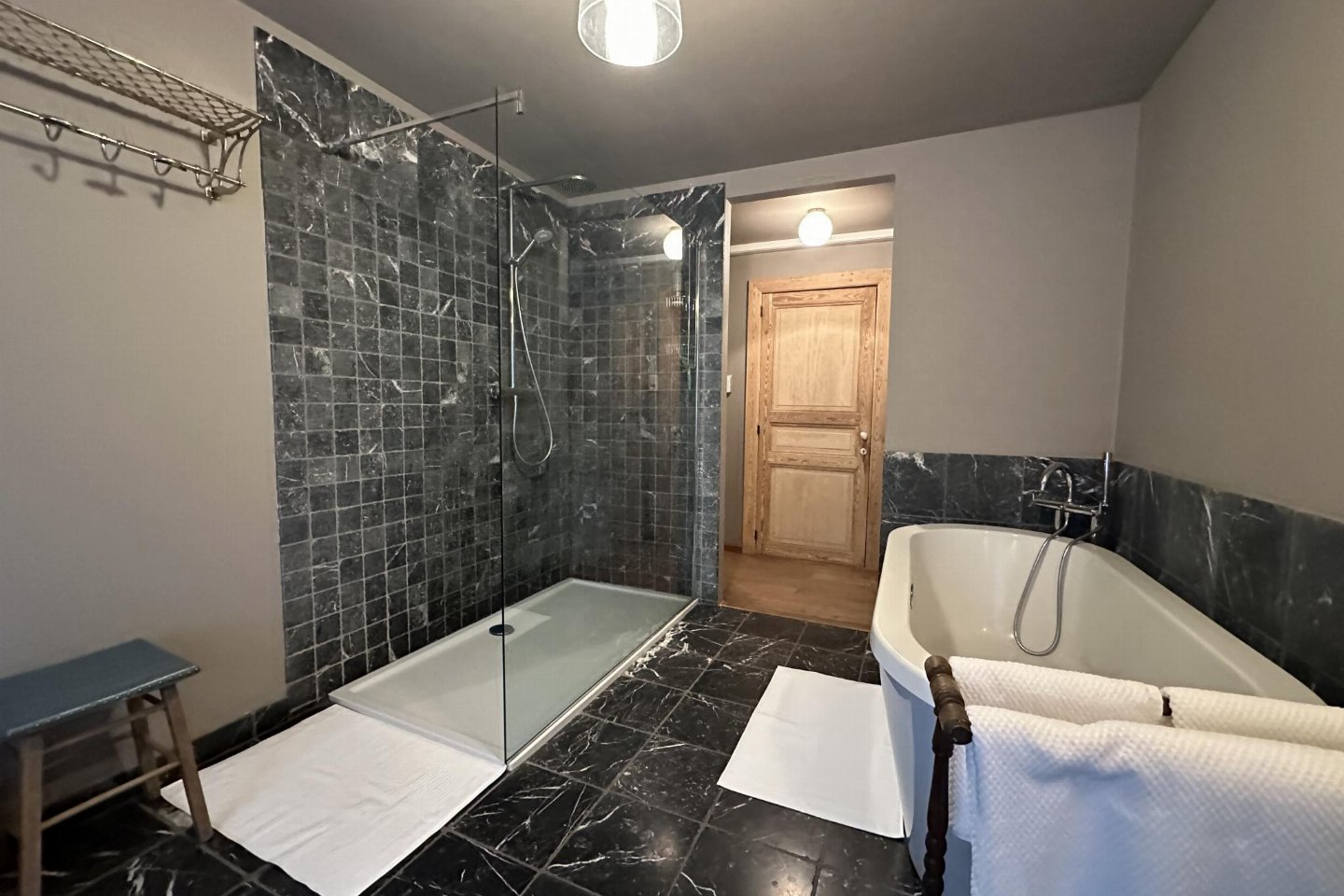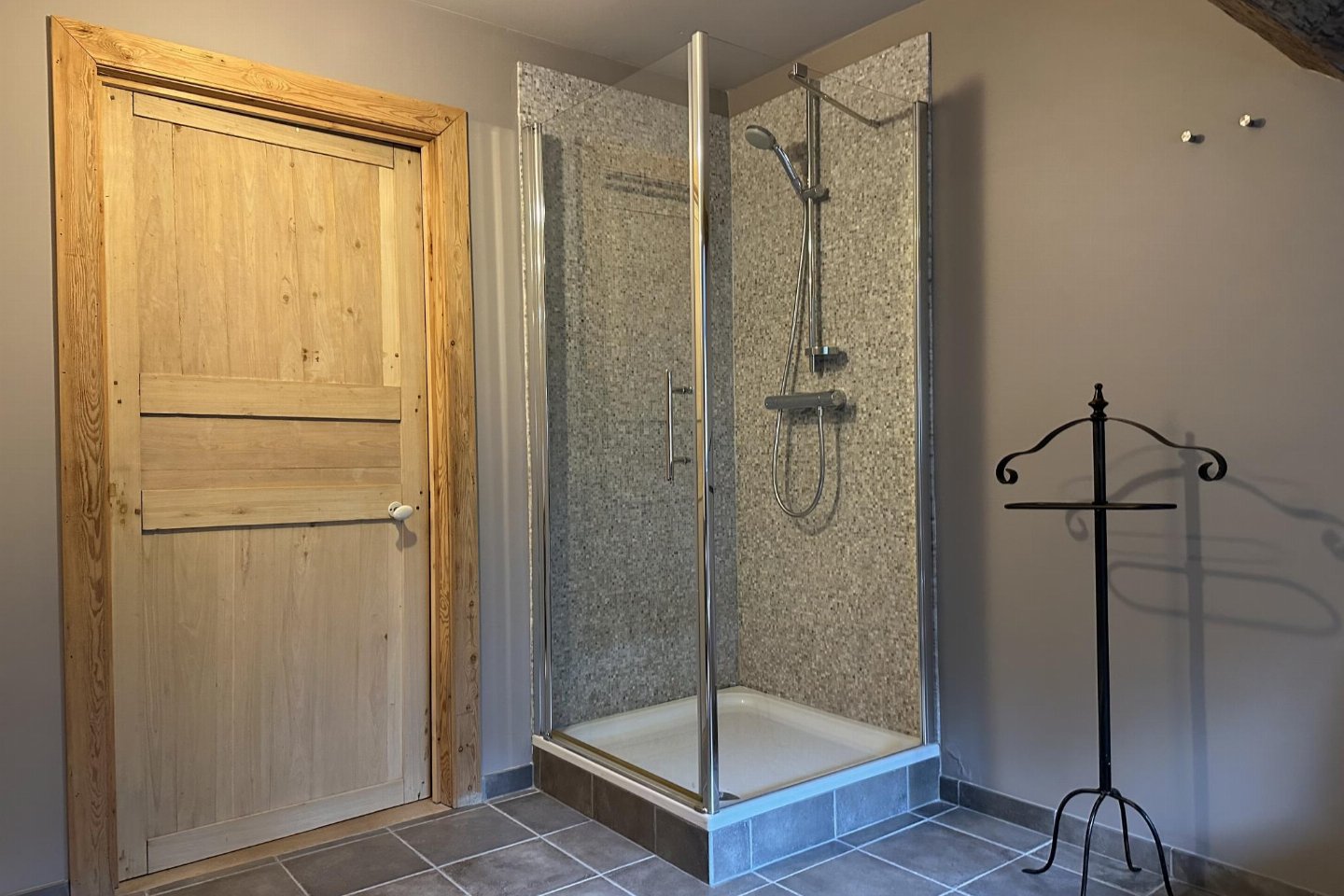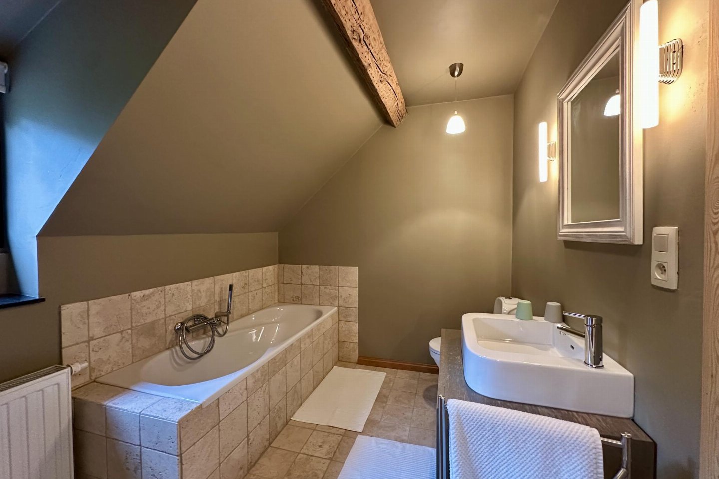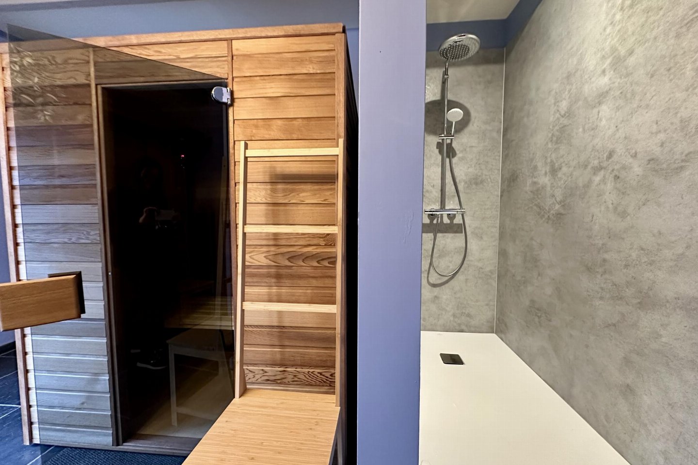 Dit voormalige hotel is gerenoveerd en omgebouwd tot een luxe gite op een landgoed van 2 hectare. Met zijn open zwembad en ontspanningsruimte met sauna is het de perfecte plek om tijd door te brengen met familie of vrienden. bed , slaapkamer met badkamer met 2x 1-pers. bed, douche, 2x wastafel, wc , vide met 2-pers.