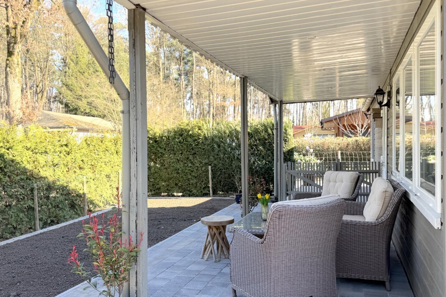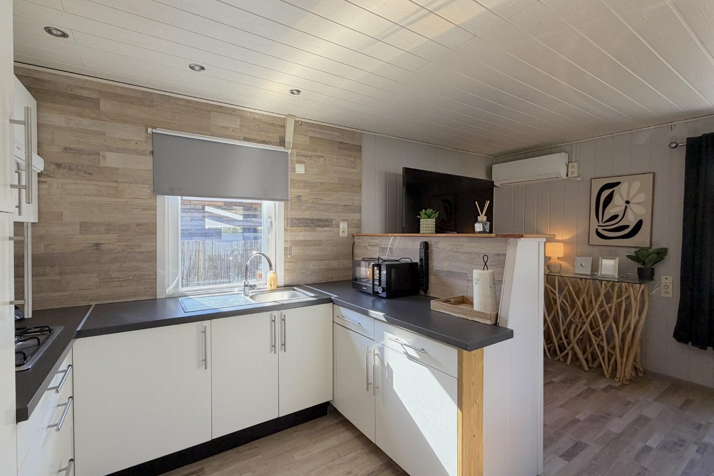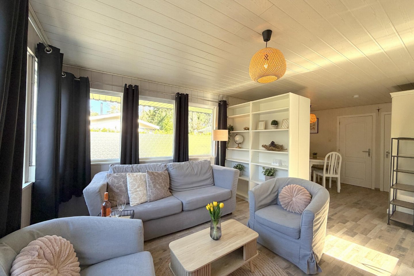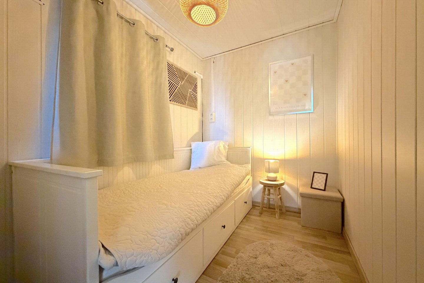 Deze vrijstaande vakantiewoning ligt op een kleinschalig en rustig park in Zutendaal, midden in het groen. Omringd door bossen geniet je hier van rust, natuur en privacy. De woning is modern en sfeervol ingericht en van alle gemakken voorzien. onderschuifbed(80 x 200 cm) , slaapkamer met 2-pers.