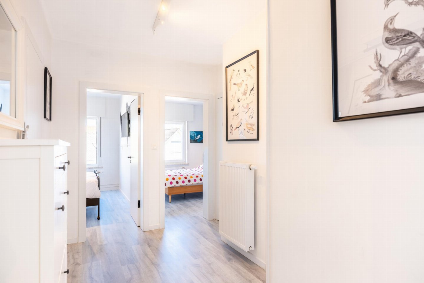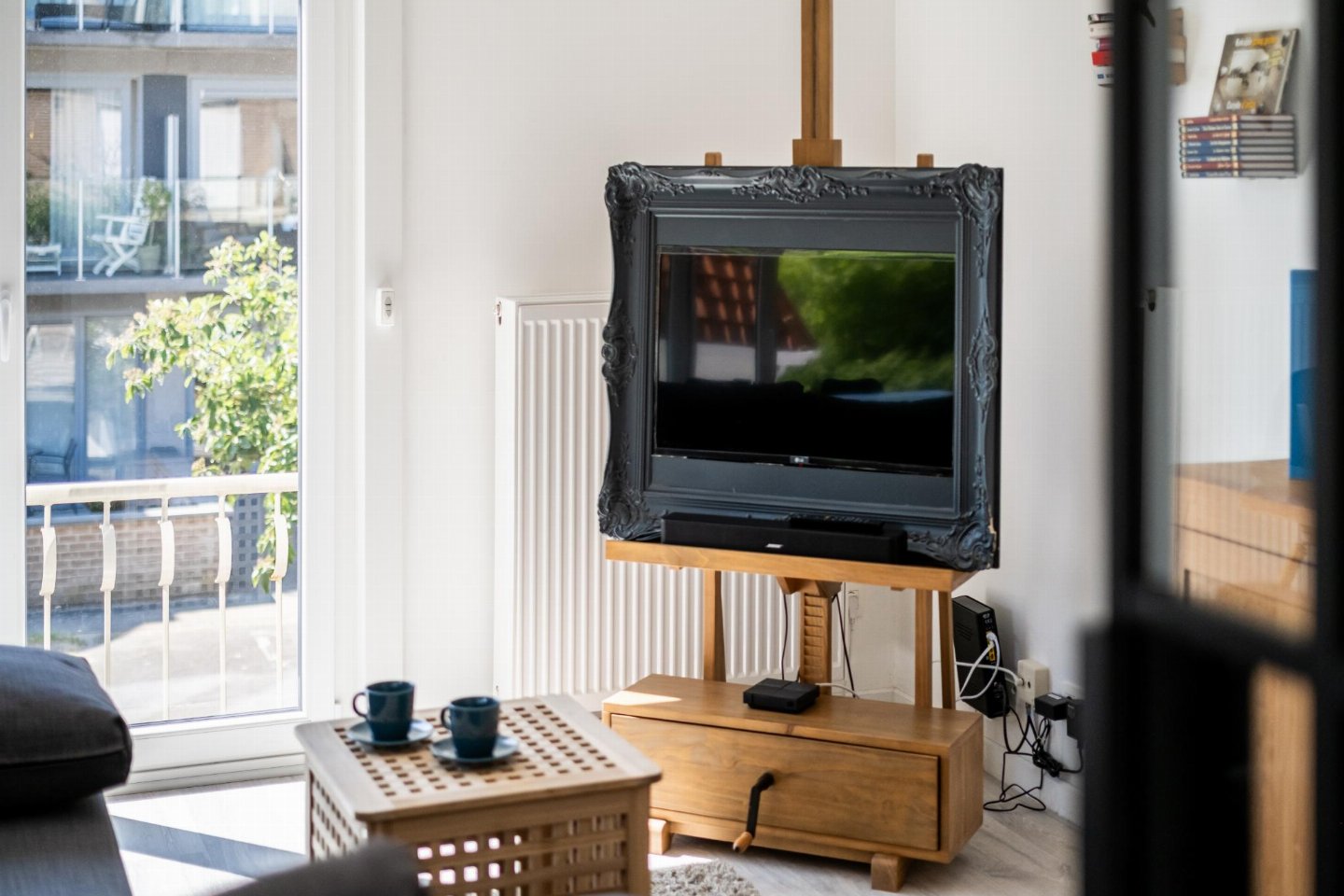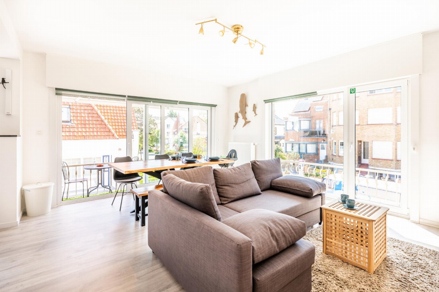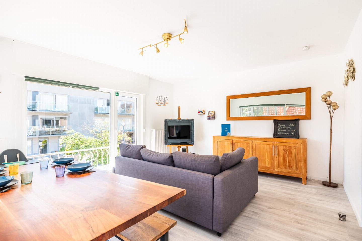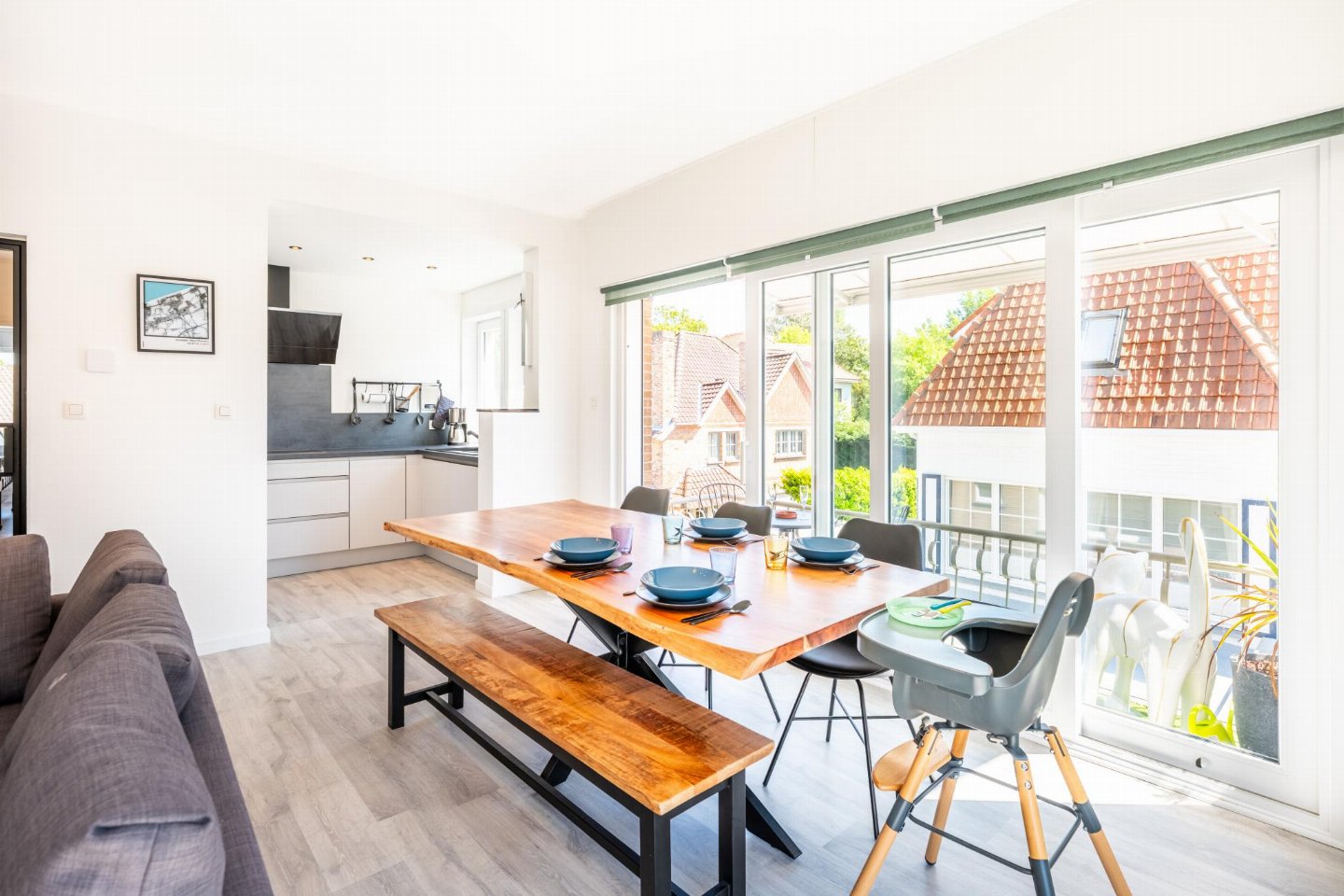 Op de 1e etage: (keuken(kookplaat(inductie), waterkoker, broodrooster, afzuigkap, koffiezetapparaat(Dolce Gusto), oven(elektrisch), magnetron, afwasmachine, koelkast( vriesvak)), woon/eetkamer(2-pers. slaapbank(2 persoons dekbed), TV(flatscreen, digital), eettafel, zithoek, radio, stereo-installatie), slaapkamer(2-pers. bed(2 persoons dekbed), TV), slaapkamer(2-pers. bed(2 persoons dekbed)), badkamer(douche(inloopdouche), wastafel), toilet(wc), berging(wasdroger, wasmachine, stofzuiger, strijkplank, strijkijzer), balkon, 1x kinderbed (excl. beddengoed), 1x kinderstoel)
