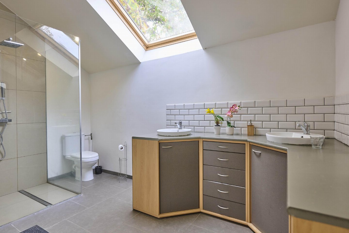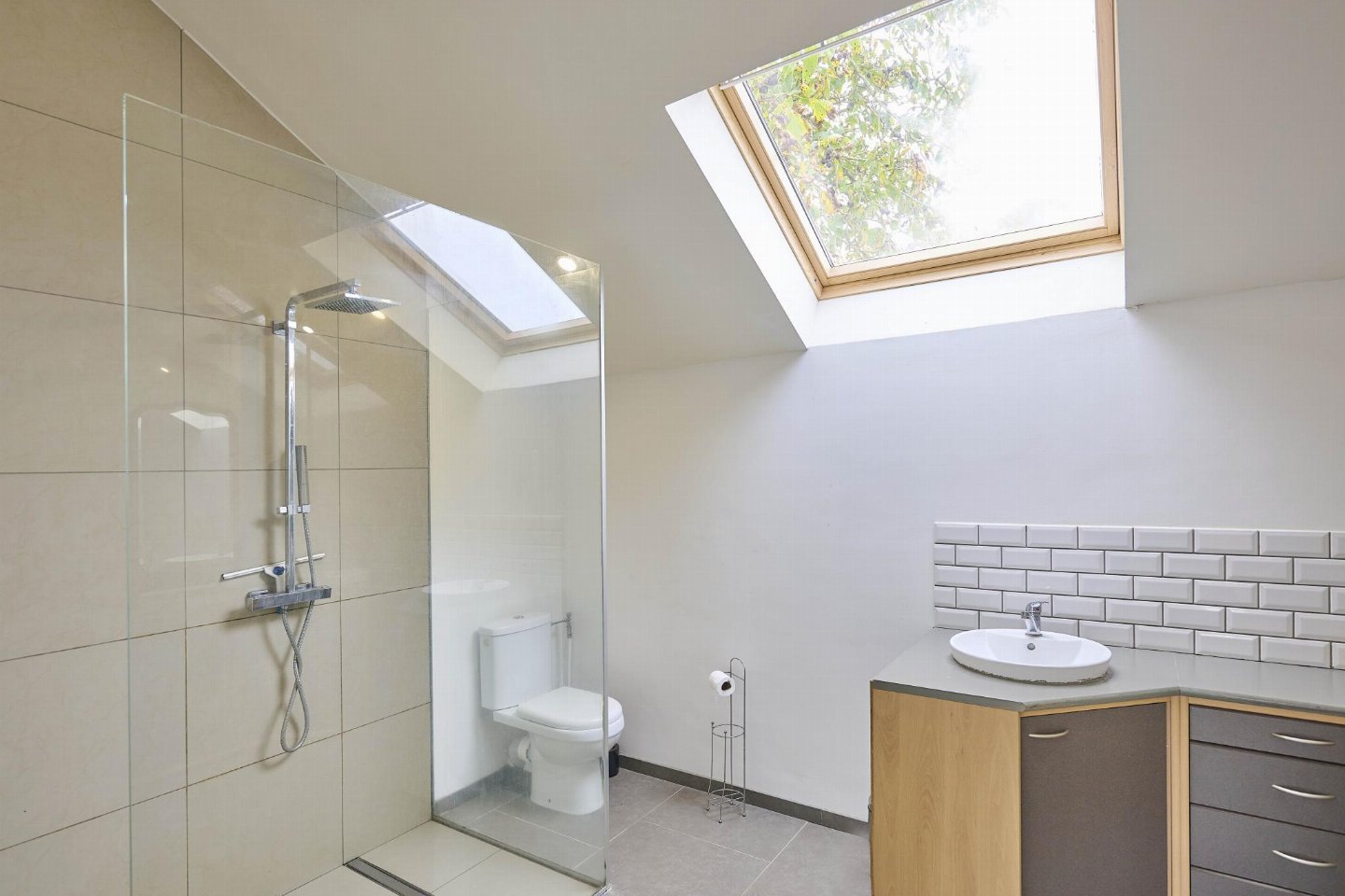 Op de 1e etage: (slaapkamer met 2-persoonsbed, slaapkamer met 2-persoonsbed, badkamer (douche met inloopdouche, wastafel, wc), overloop met zithoek).