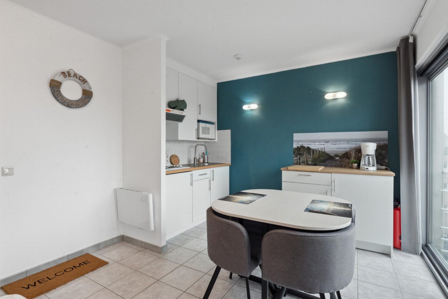 Prachtig ingerichte studio in een gebouw aan de Zeedijk, rustig gelegen aan de achterzijde met zonnig terras. Eetruimte met open, volledig uitgeruste keuken. Slaaphoek met comfortabel tweepersoonsbed en badkamer met douche en wastafel. Ideaal voor een verblijf met twee aan zee.