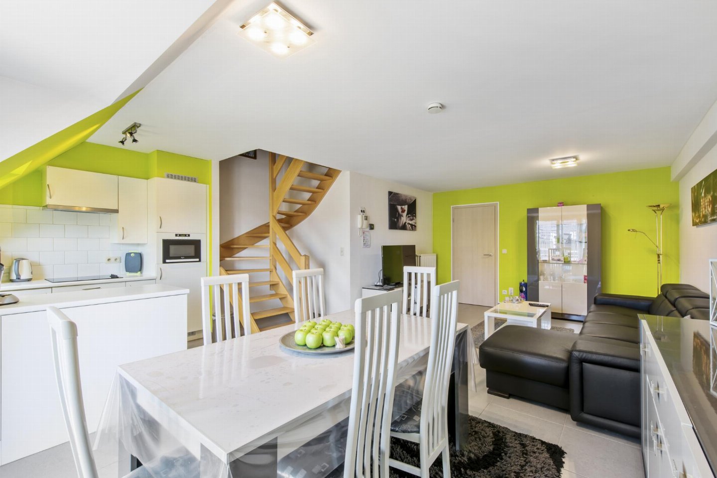 Op de 4de verdieping: ruime woonkamer met open ingerichte keuken, slaapkamer, dressing, badkamer met inloopdouche, apart toilet en terras met zicht op de Markt. Bovenverdieping: 2de slaapkamer en badkamer met douche en toilet. Gemeenschappelijke fietsenstalling in het gebouw.