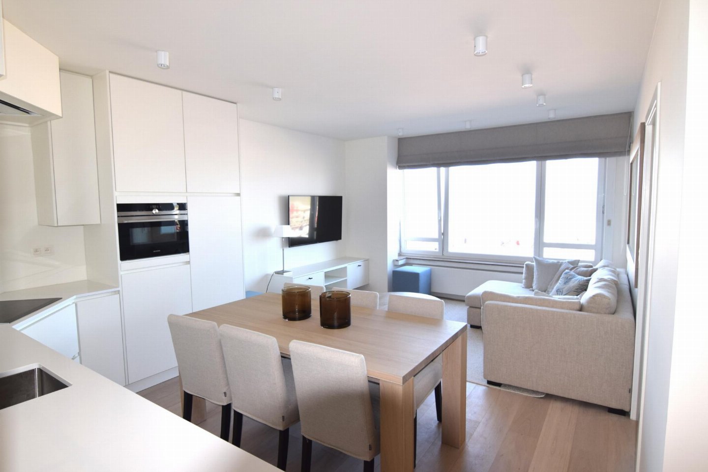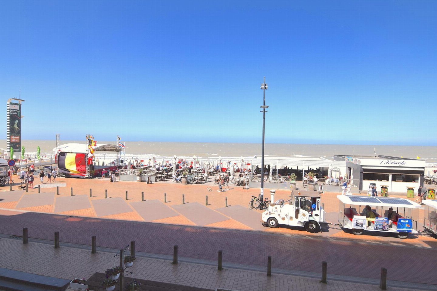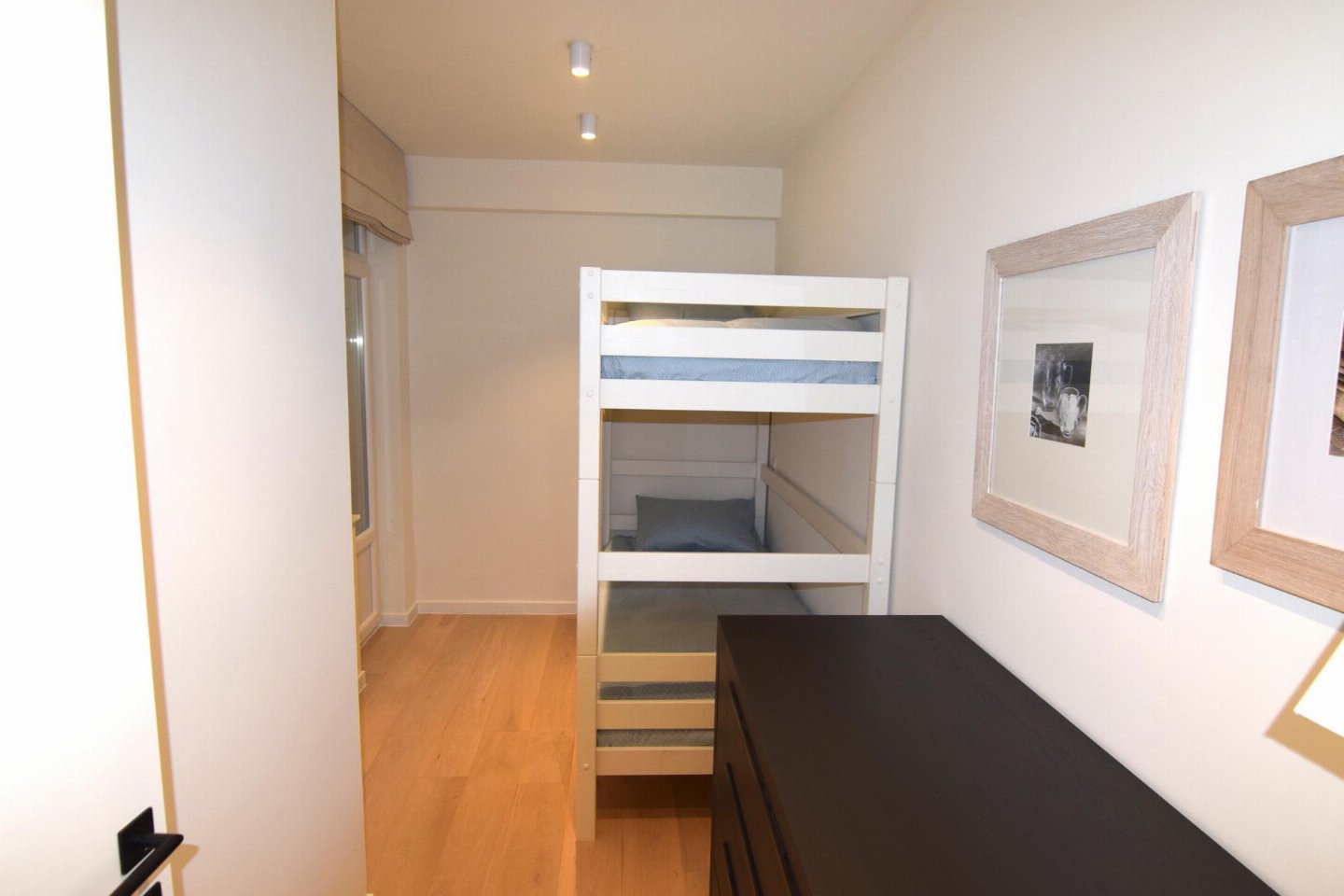 Luxueus en modern 4-slaapkamerappartement op de Zeedijk naast het Casino van Blankenberge met frontaal zeezicht. Woonkamer met volledig ingerichte open keuken. 2 slaapkamers met dubbel bed en 2 met stapelbed. 2 badkamers: één met douche (master) en één met bad.