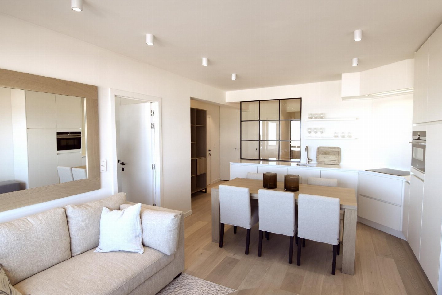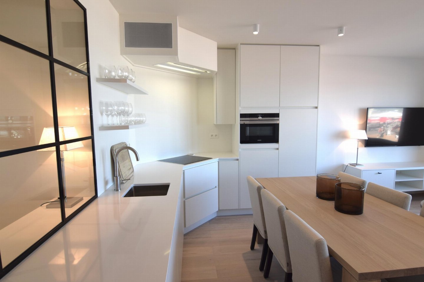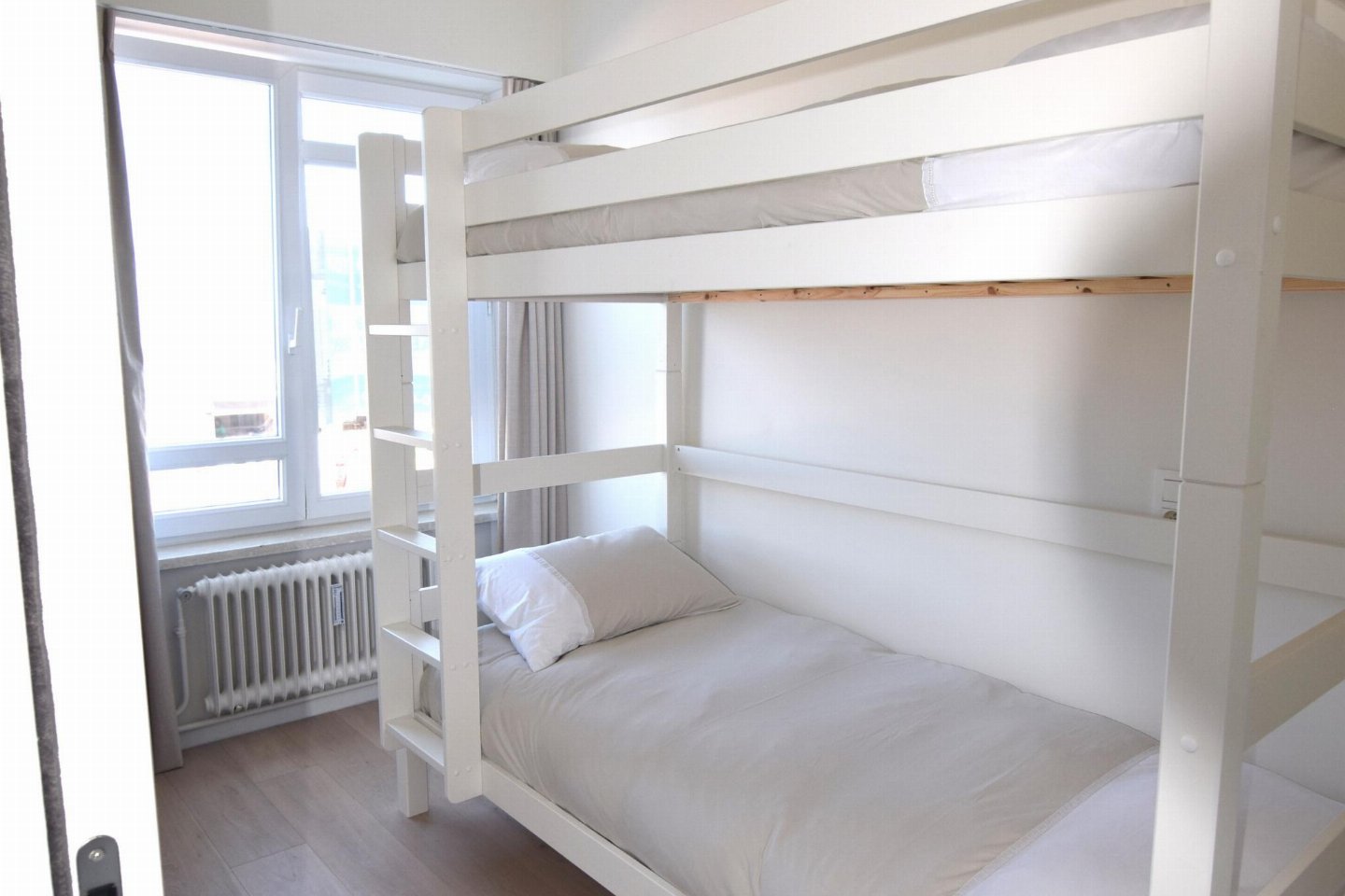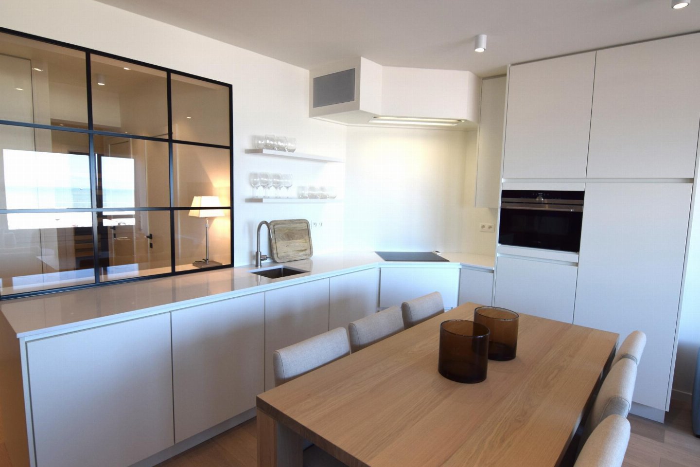 Luxueus en modern 4-slaapkamerappartement op de Zeedijk naast het Casino van Blankenberge met frontaal zeezicht. Woonkamer met volledig ingerichte open keuken. 2 slaapkamers met dubbel bed en 2 met stapelbed. 2 badkamers: één met douche (master) en één met bad.