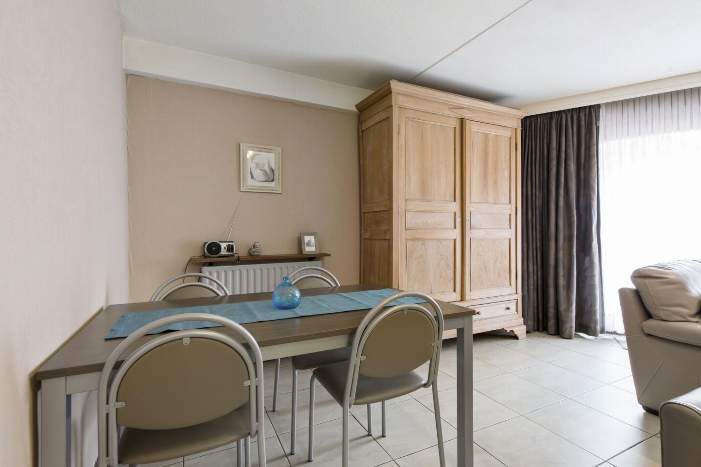 Aangenaam appartement aan het Casino van Blankenberge, op 50 meter van de Zeedijk en de zee, midden in het commercieel centrum. Ideaal voor wie alles binnen handbereik wil tijdens een verblijf aan zee. bed(2 persoons dekbed, 140 x 210 cm) , badkamer met ligbad lift, 1x kinderbed (excl.