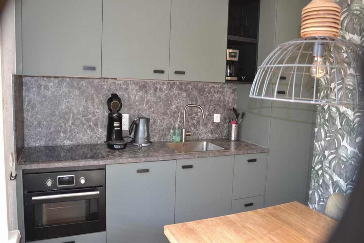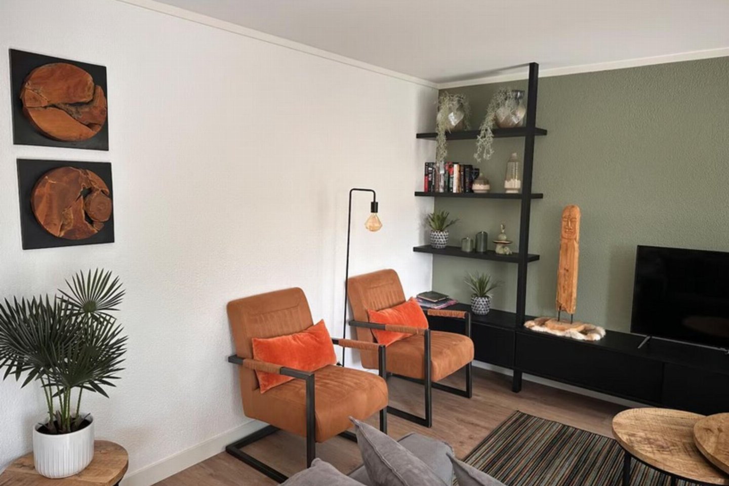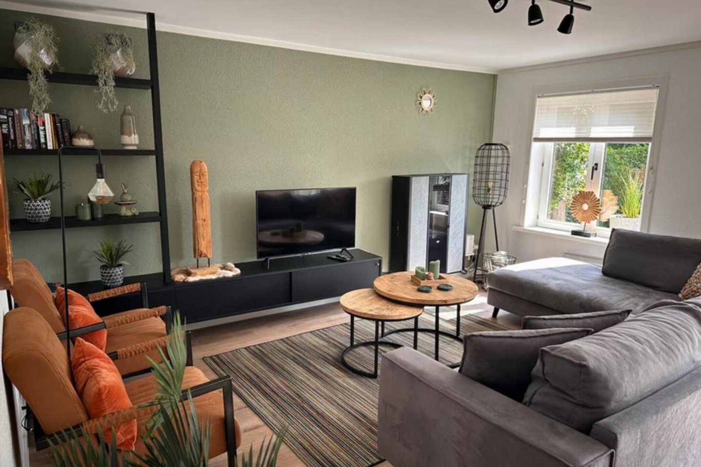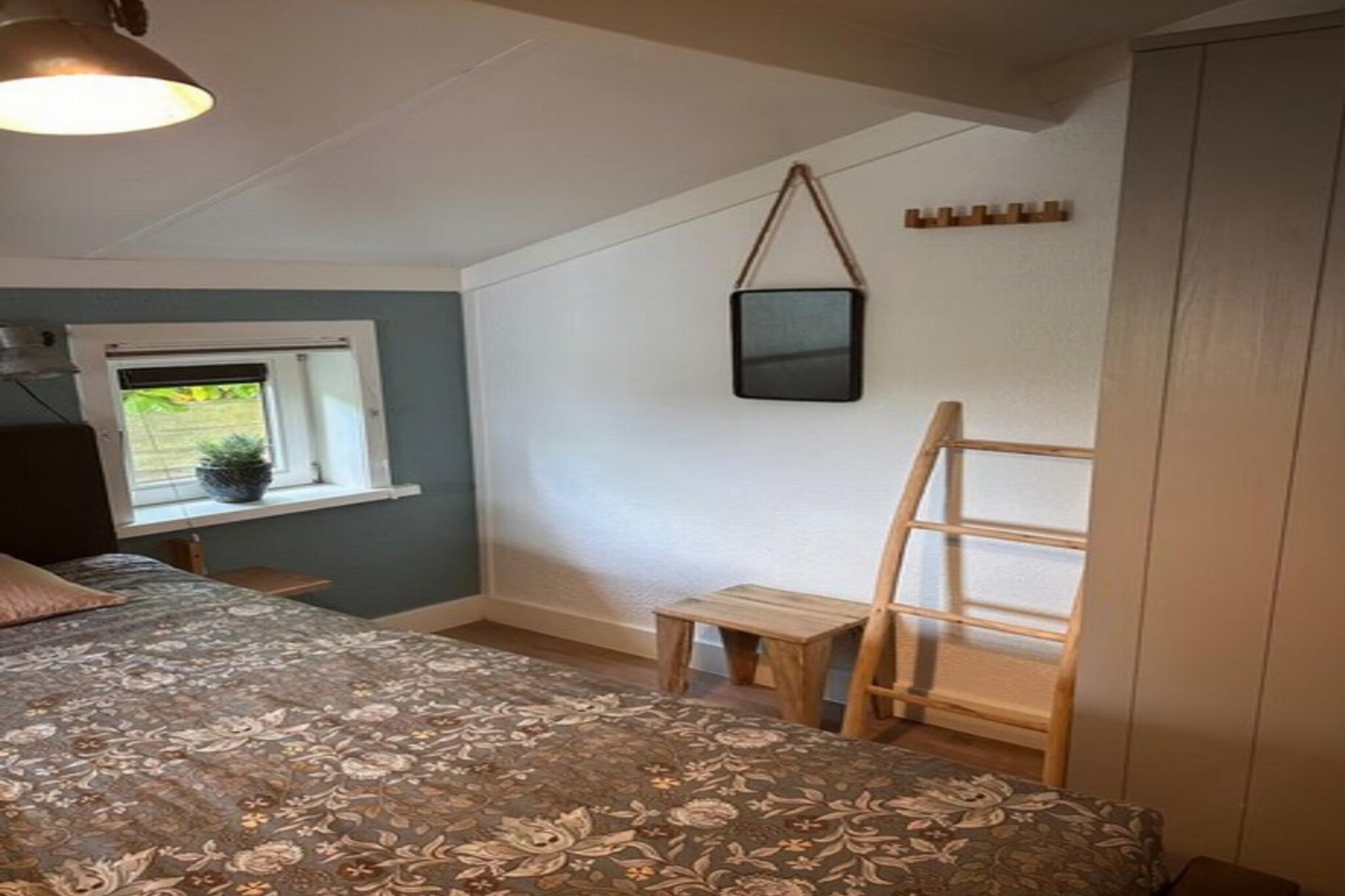 Begane grond: woonkamer met TV(flatscreen, smart TV), kachel(hout), zithoek , open keuken met eettafel, kookplaat(4 kookplaten, elektrisch), waterkoker, afzuigkap, koffiezetapparaat(senseo pads), combimagnetron, afwasmachine, koelkast( vriesvak) , slaapkamer met 2-pers. bed(boxspring, 180 x 200 cm) , badkamer met douche(inloopdouche), wastafel , toilet met wc , stofzuiger, 1x kinderstoel, strijkplank, strijkijzer, gezelschapsspellen