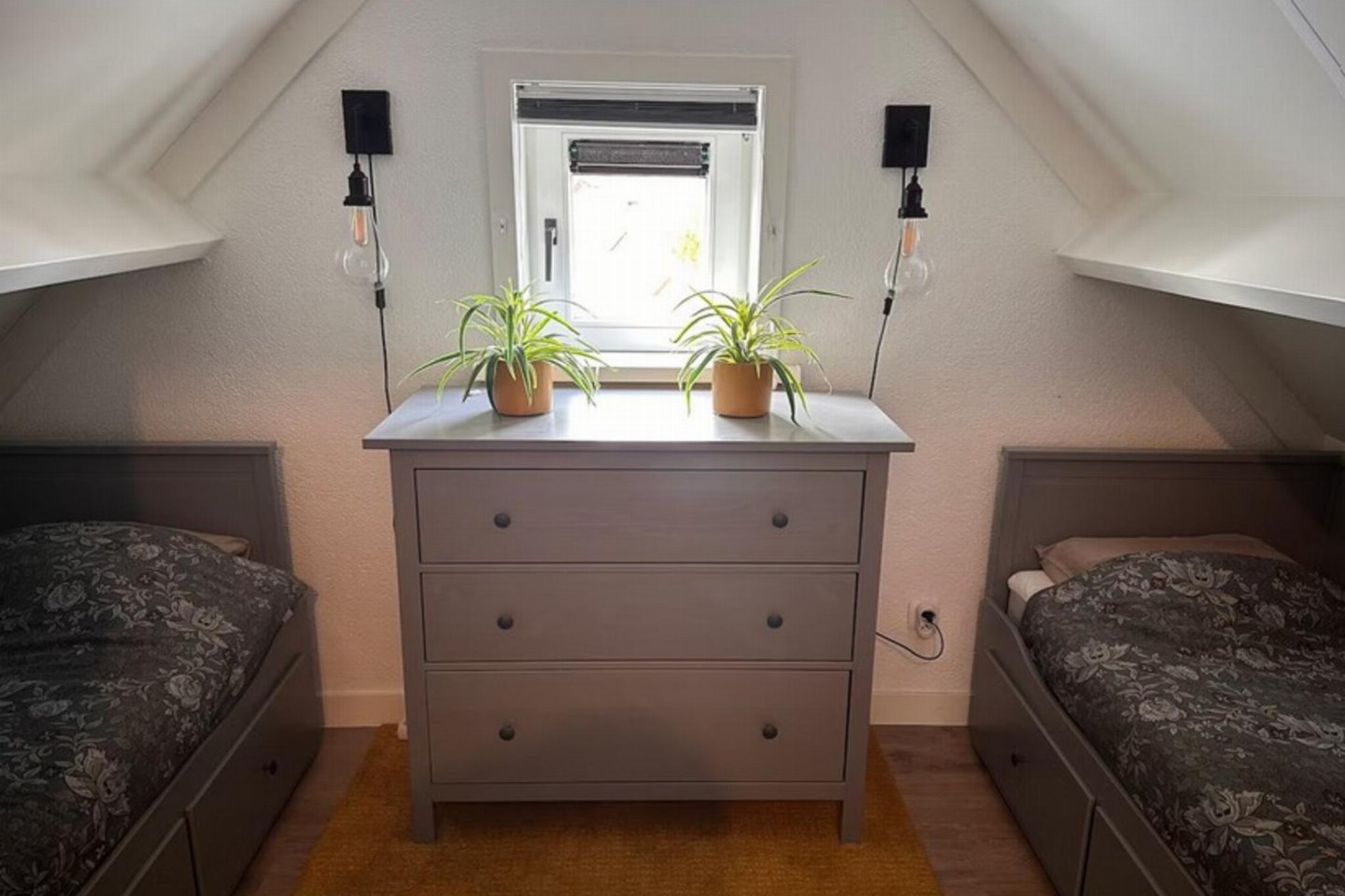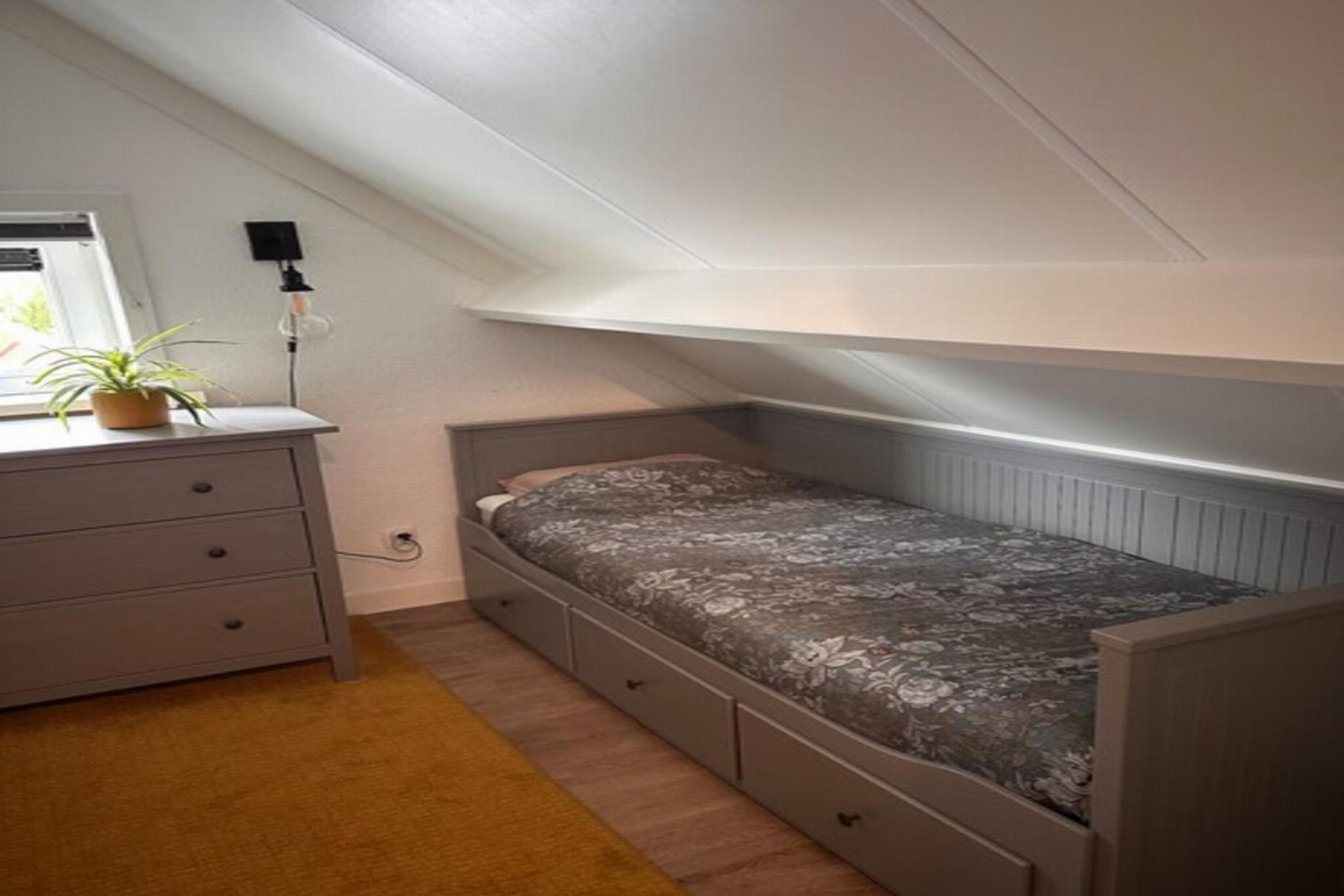 Op de 1e etage: slaapkamer met 2-pers. bed(boxspring, 180 x 200 cm) , slaapkamer met 2x 1-pers. bed(80 x 200 cm) , 1x kinderbed (excl. beddengoed)