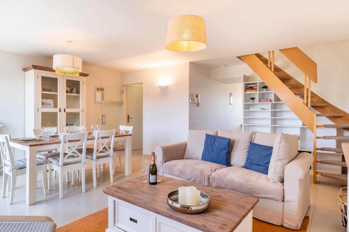 Mooi zonnig en modern duplex appartement voor 6 personen, rustig gelegen op 700 m van het strand en vlakbij het centrum, winkels, restaurants en bioscoop. Het appartement biedt twee slaapkamers, volledig uitgeruste keuken, wasmachine en twee balkons. bed(2 persoons dekbed) , slaapkamer met 2x 1-pers.