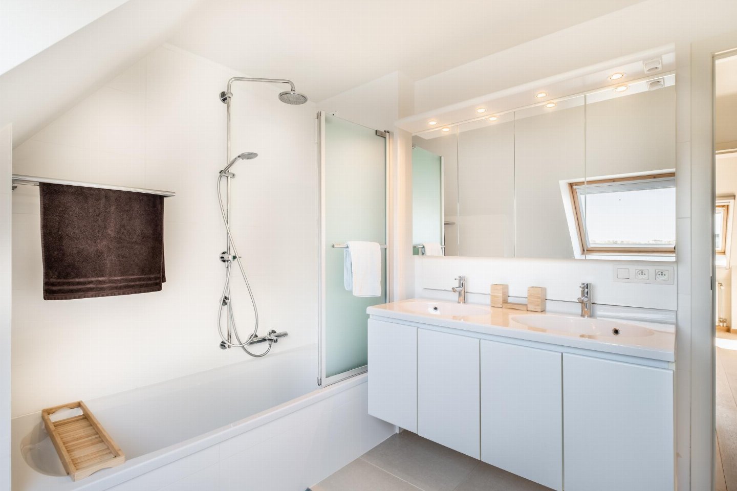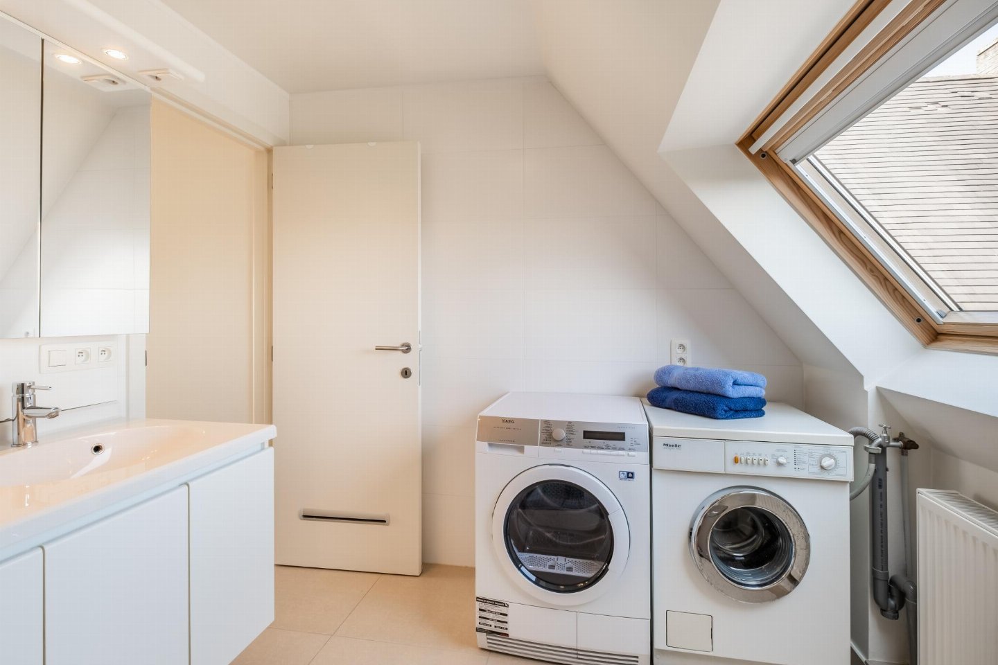 Op de 4e etage(via steile trap): slaapkamer met 2-pers. bed(2 persoons dekbed) , slaapkamer met 2x 1-pers. bed(dekbed) , badkamer met wasdroger, bad met douche, 2x wastafel, wasmachine , toilet met wc
