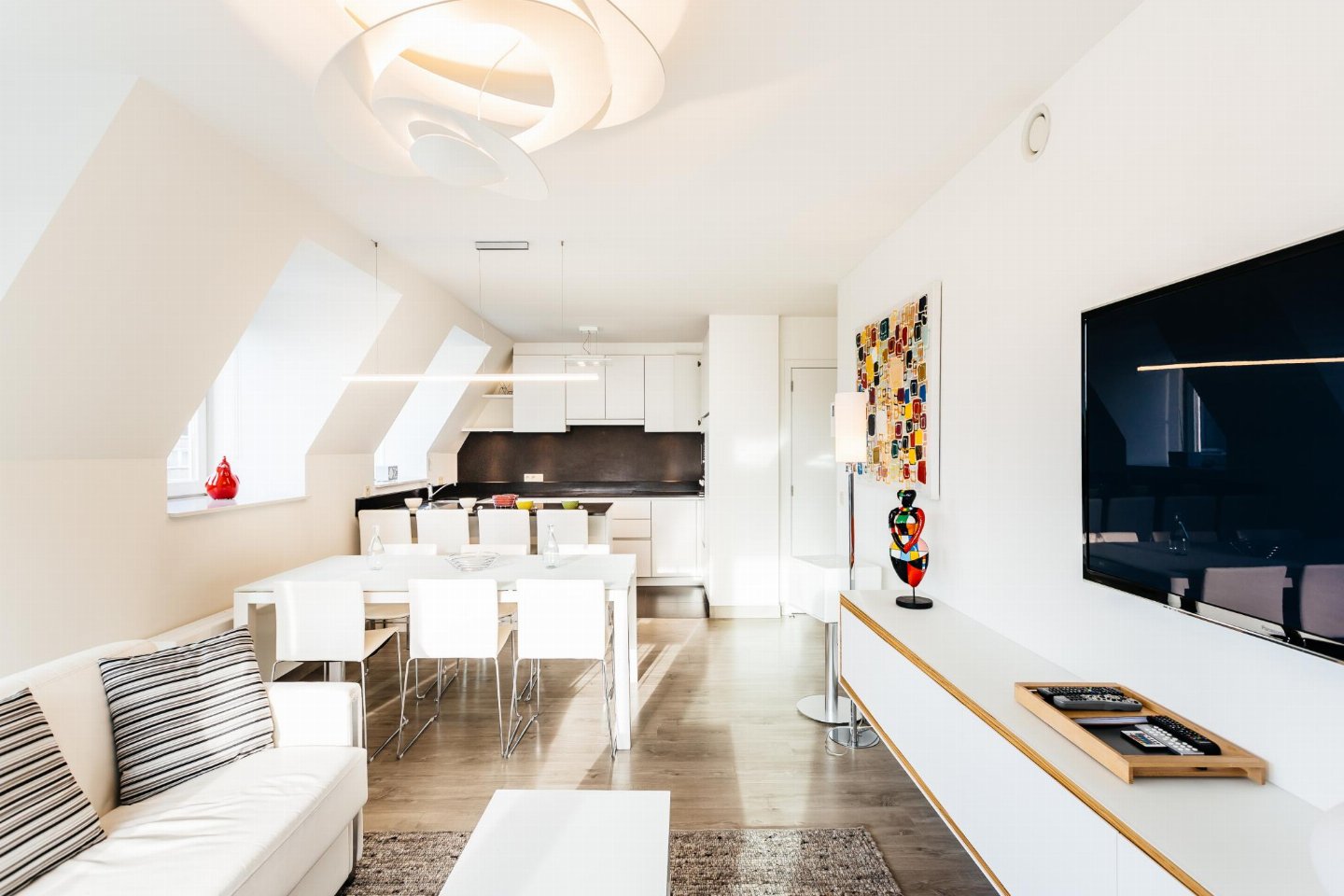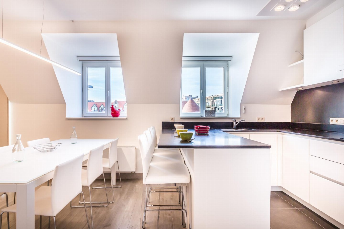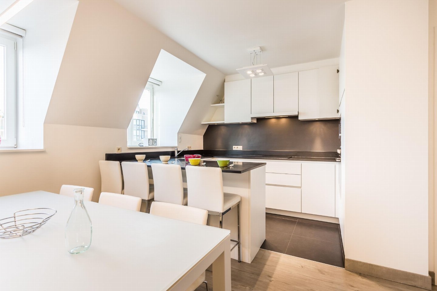 Op de 3e etage: (open keuken(kookplaat(keramisch), waterkoker, broodrooster, afzuigkap, koffiezetapparaat(nespresso cups), oven, magnetron, afwasmachine, koelkast( vriesvak), Staafmixer), woon/eetkamer(2-pers. slaapbank, TV(flatscreen, digital), eettafel, zithoek), slaapkamer(2-pers. bed), badkamer(douche, 2x wastafel), toilet(wc), wasmachine, stofzuiger, tuinmeubilair, ligbedden, strijkplank, strijkijzer)