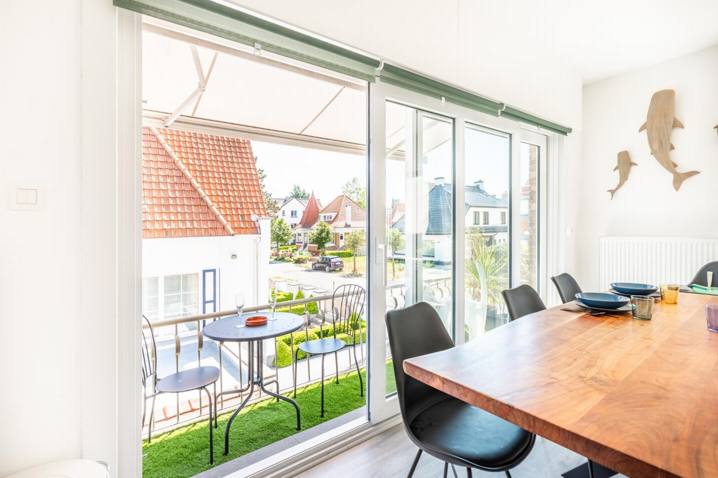 Op de 1e etage: (keuken(kookplaat(inductie), waterkoker, broodrooster, afzuigkap, koffiezetapparaat(Dolce Gusto), oven(elektrisch), magnetron, afwasmachine, koelkast( vriesvak)), woon/eetkamer(2-pers. slaapbank(2 persoons dekbed), TV(flatscreen, digital), eettafel, zithoek, radio, stereo-installatie), slaapkamer(2-pers. bed(2 persoons dekbed), TV), slaapkamer(2-pers. bed(2 persoons dekbed)), badkamer(douche(inloopdouche), wastafel), toilet(wc), berging(wasdroger, wasmachine, stofzuiger, strijkplank, strijkijzer), balkon, 1x kinderbed (excl. beddengoed), 1x kinderstoel)