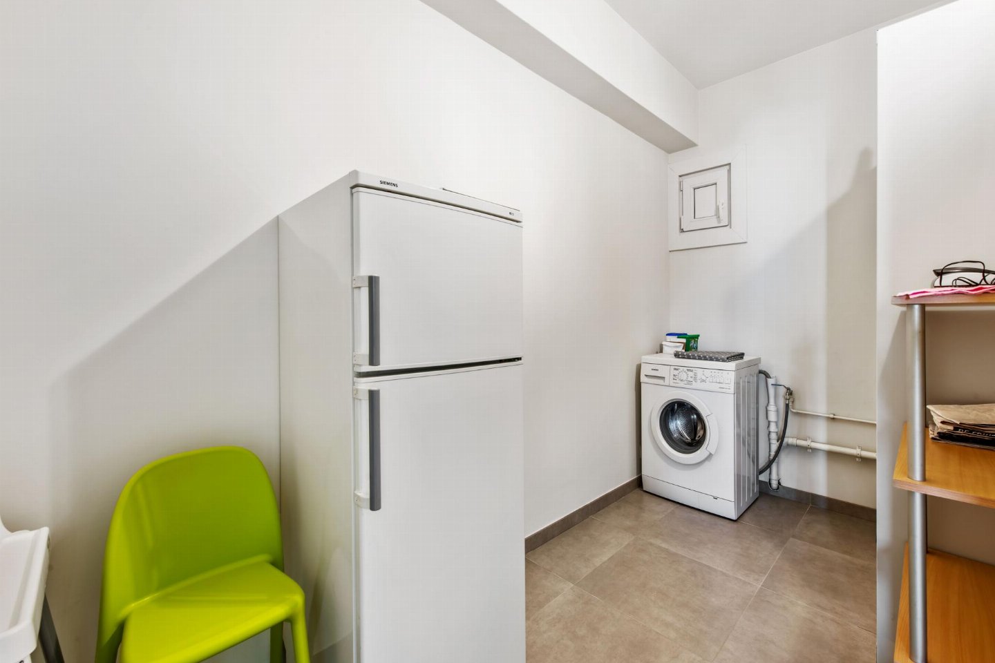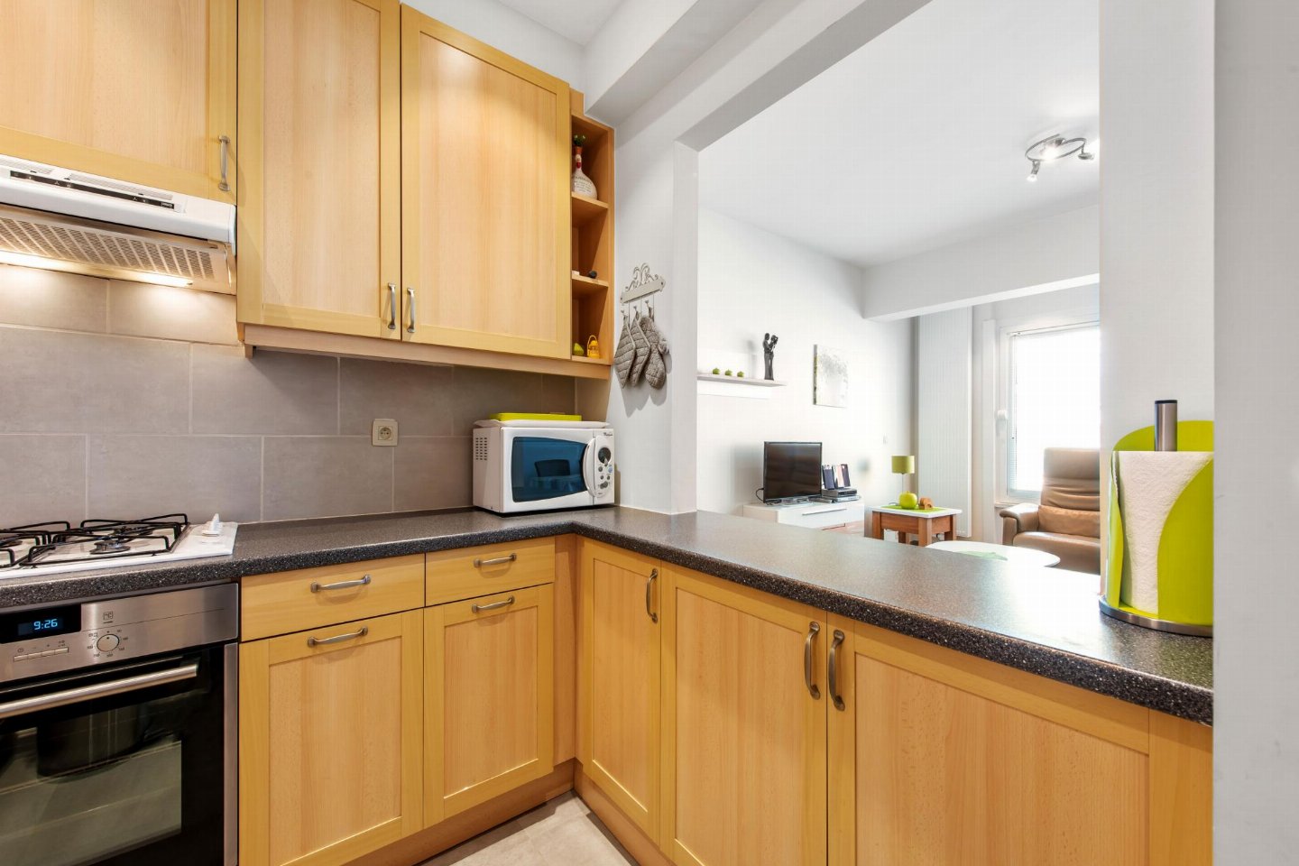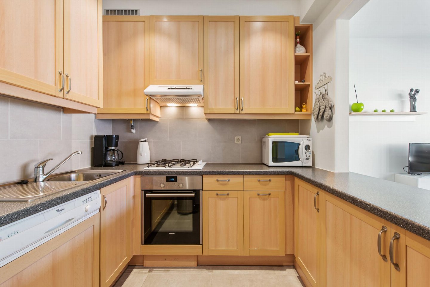 Op de 2e etage: (hal, keuken(kookplaat(gas), broodrooster, afzuigkap, koffiezetapparaat(filtermaling, senseo pads), oven, magnetron, afwasmachine, koelkast( vriesvak)), woon/eetkamer(TV(flatscreen, digital), eettafel, zithoek), slaapkamer(2-pers. bed(2 persoons dekbed)), slaapkamer(2x stapelbed(dekbed)), badkamer(douche(inloopdouche), wastafel), toilet(wc), berging(wasmachine))