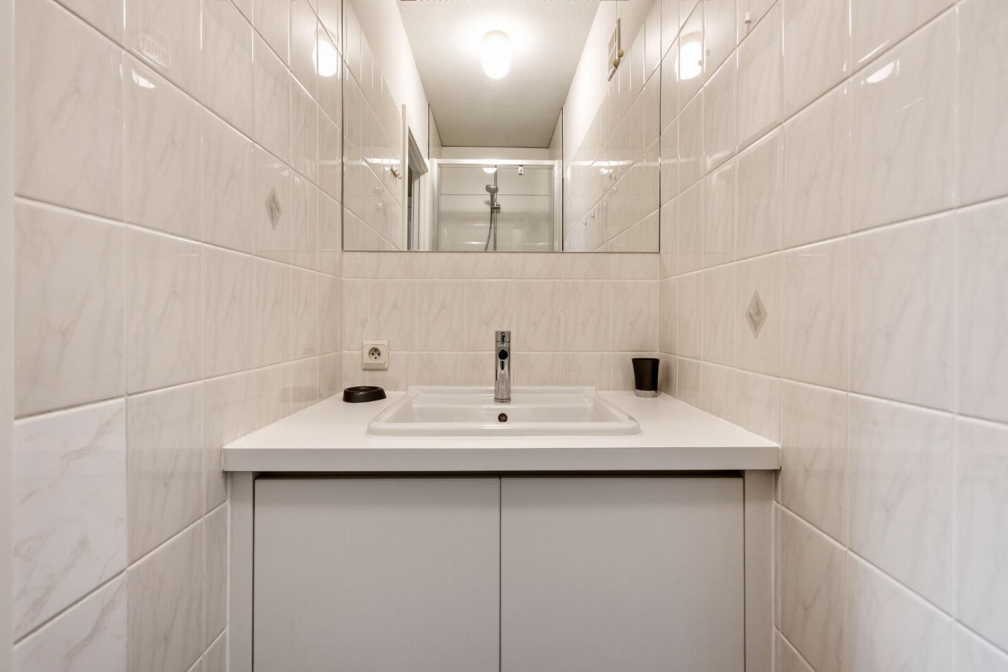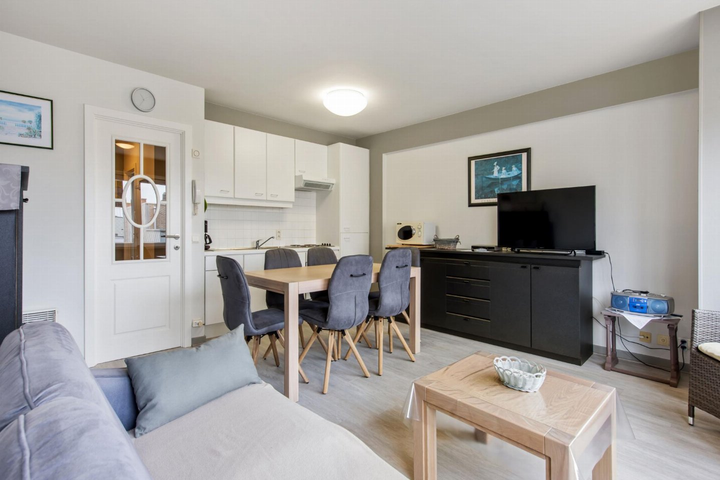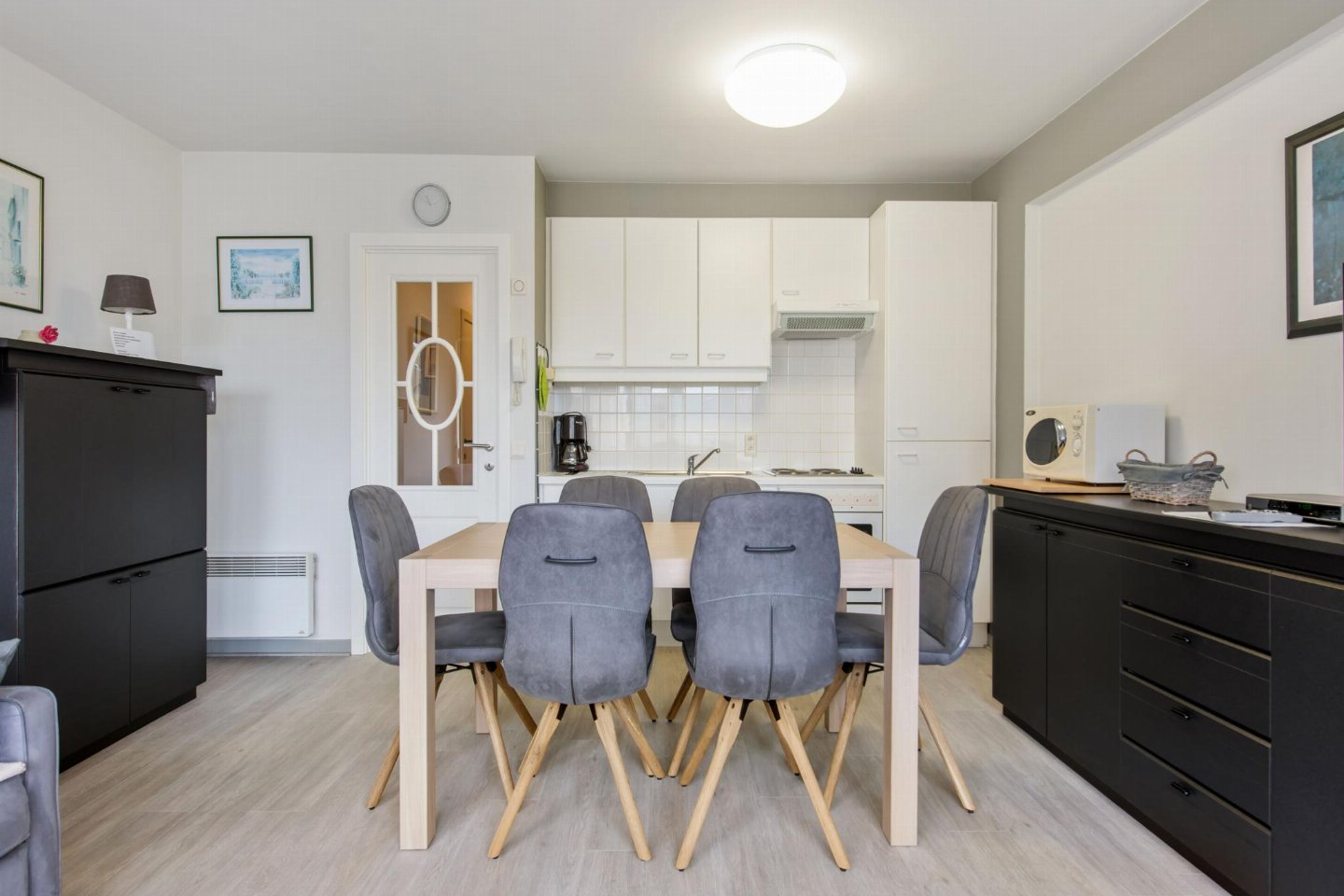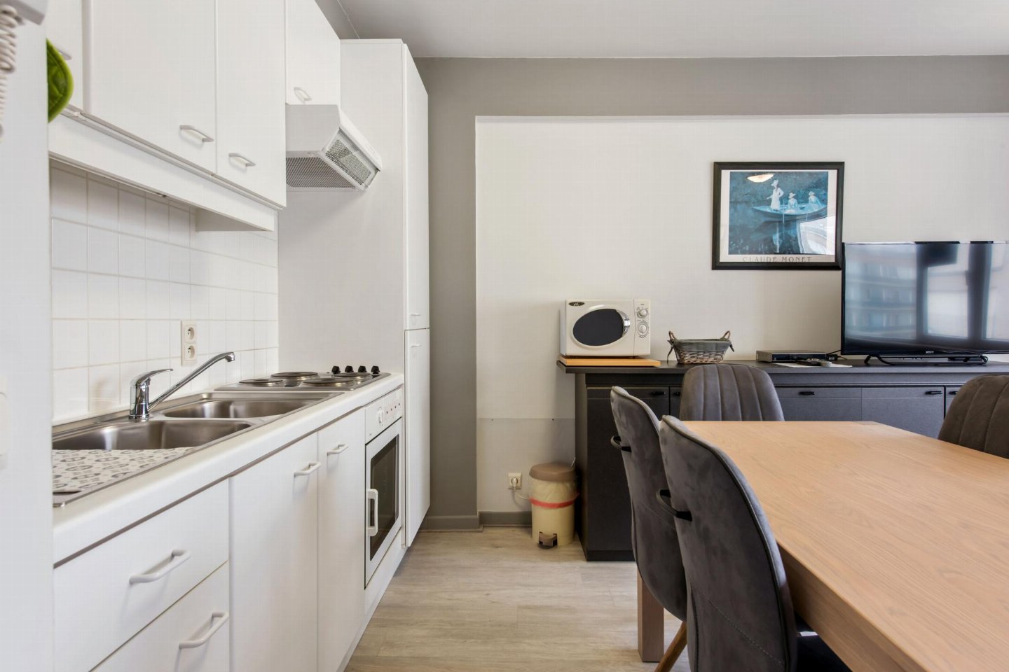 Op de 4e etage: (open keuken(kookplaat(elektrisch), afzuigkap, koffiezetapparaat(filtermaling), oven(elektrisch), magnetron, koelkast( vriesvak)), woon/eetkamer(2-pers. slaapbank, TV(flatscreen, digital), eettafel, zithoek), slaapkamer(2-pers. bed), badkamer(douche, wastafel), toilet(wc), stofzuiger, strijkplank, strijkijzer)