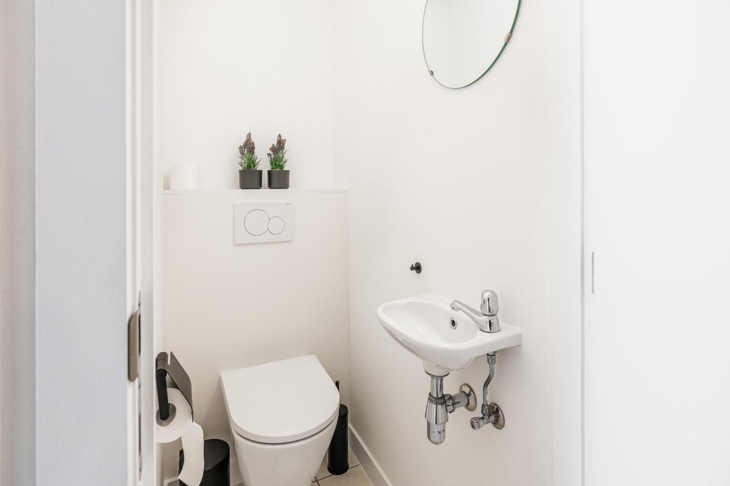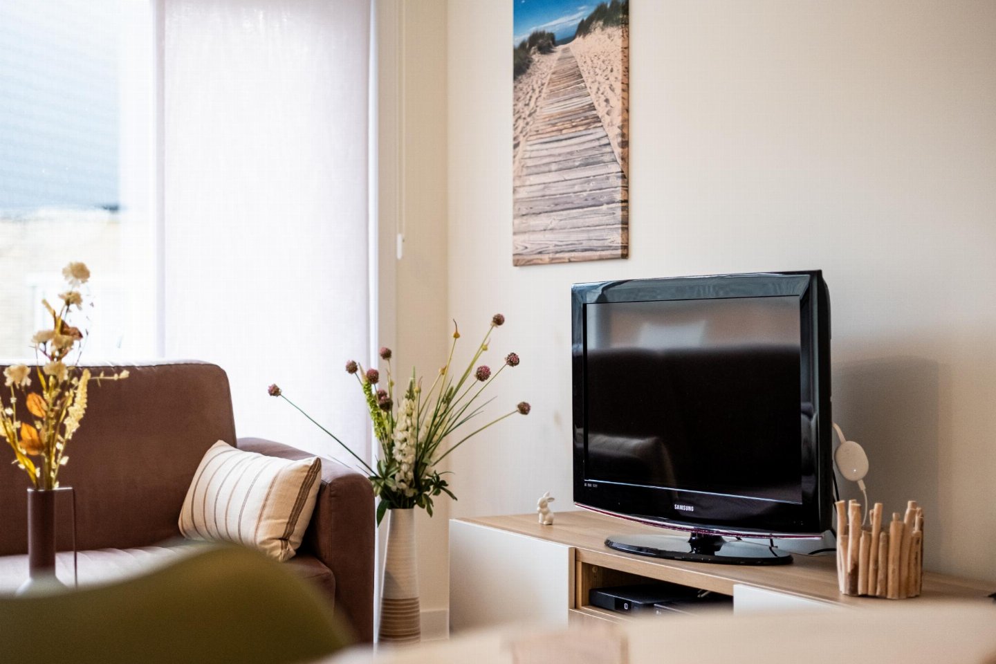 Op de 2e etage: (open keuken(kookplaat(inductie), waterkoker, broodrooster, afzuigkap, koffiezetapparaat(filtermaling, nespresso cups), oven, magnetron, afwasmachine, koelkast, Staafmixer), woon/eetkamer(2-pers. slaapbank(2 persoons dekbed), TV(flatscreen, digital), eettafel, zithoek), slaapkamer(2-pers. bed(2 persoons dekbed)), badkamer(bad met douche, wastafel), toilet(wc), balkon, tuinmeubilair(2 personen))