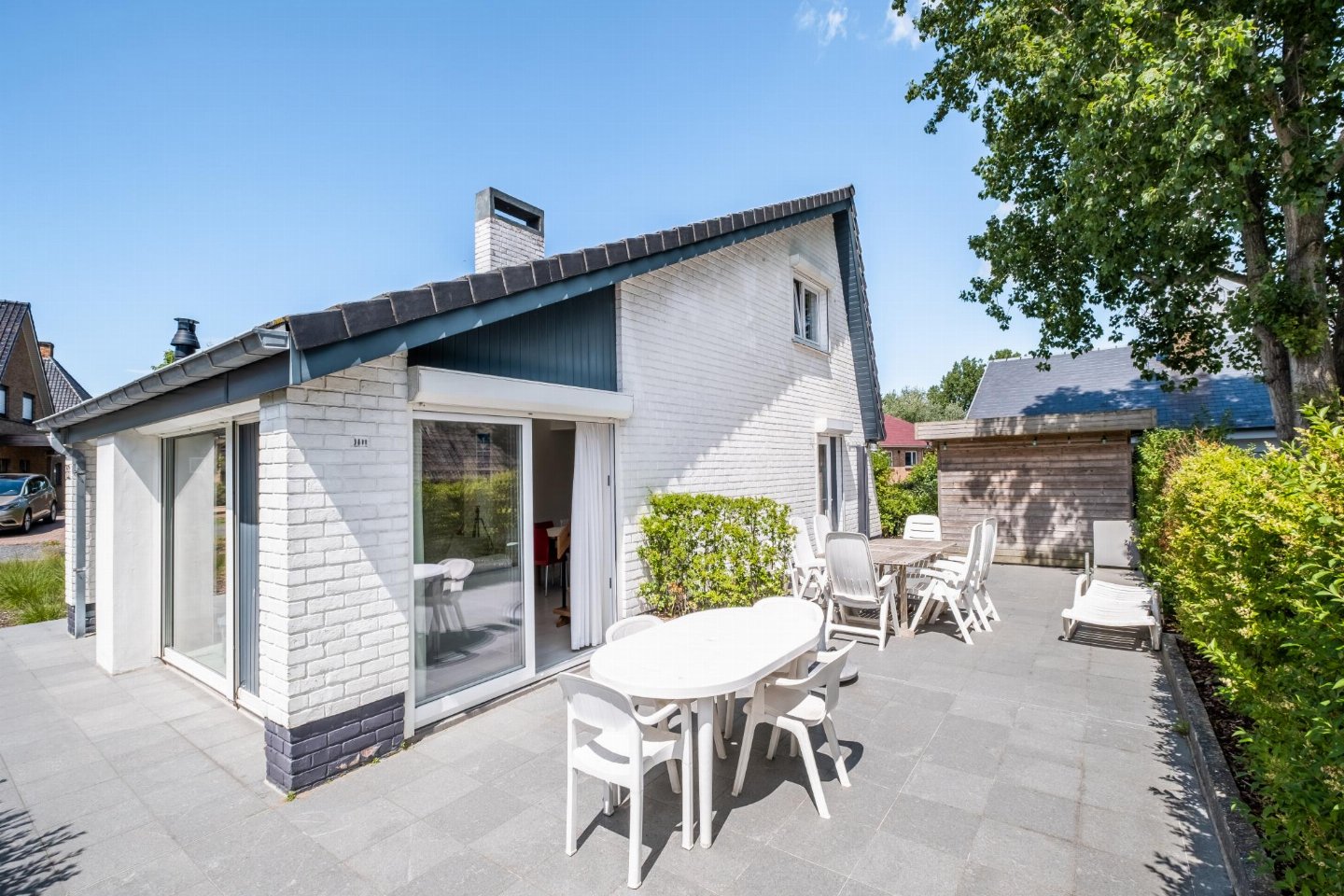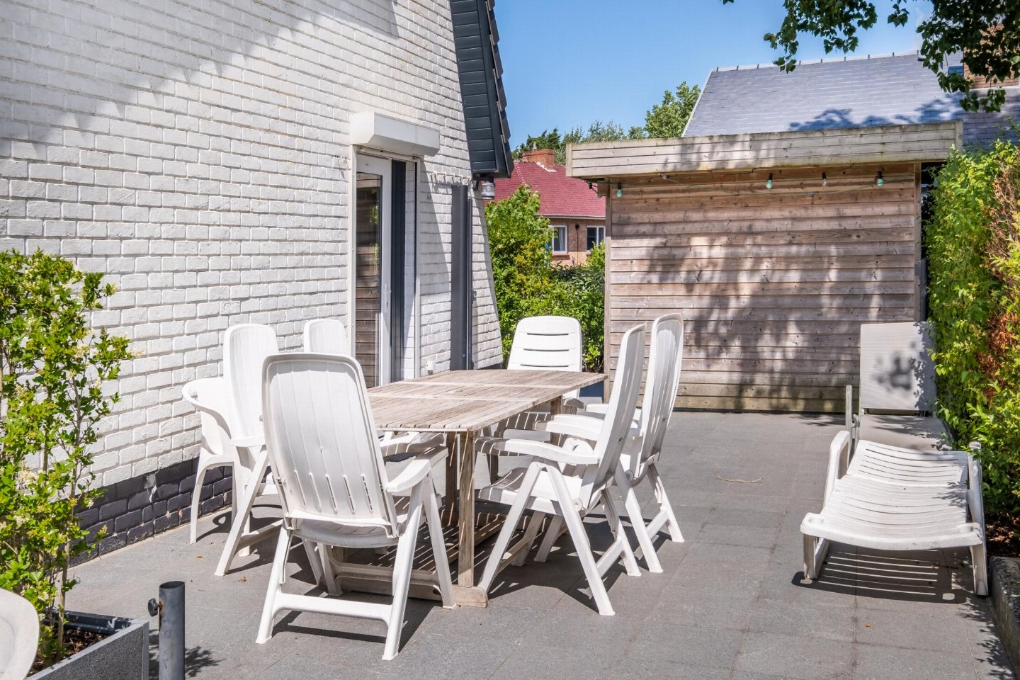 terras, tuin(privé, niet omheind), fietsenberging, tuinmeubilair, ligbedden, BBQ(houtskool), 2x parking, Tuinhuis