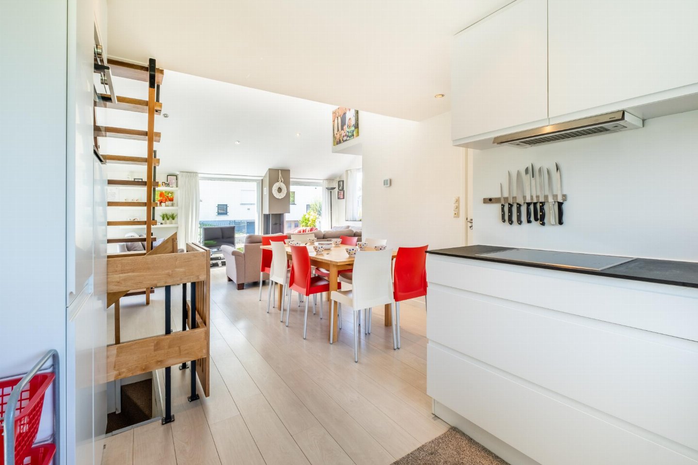 Begane grond: (hal, open keuken(kookplaat, waterkoker, broodrooster, afzuigkap, koffiezetapparaat(filtermaling, nespresso cups), oven, magnetron, afwasmachine, koelkast, Staafmixer), woon/eetkamer(TV(flatscreen, digital), eettafel, sfeerhaard, zithoek), slaapkamer(2-pers. bed(2 persoons dekbed)), badkamer(douche, wastafel, wc))