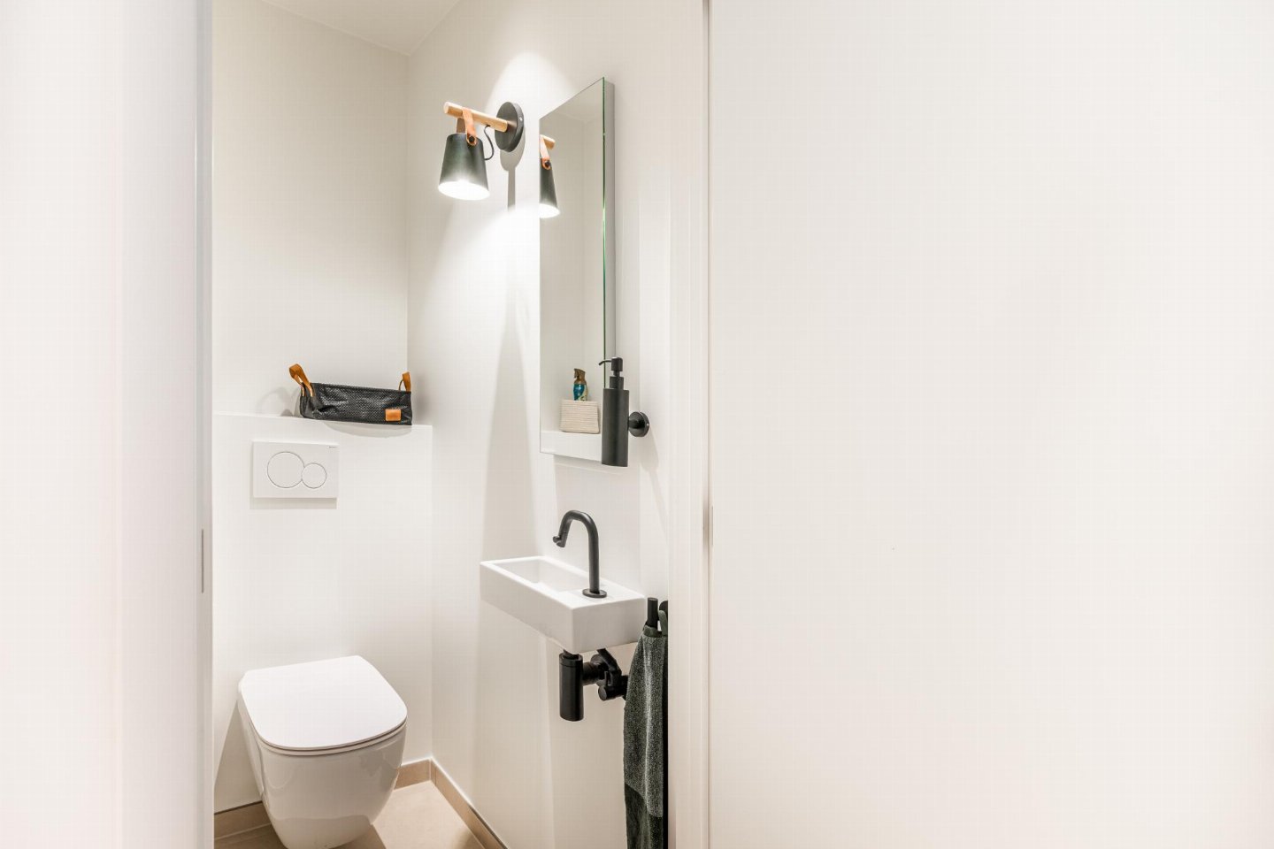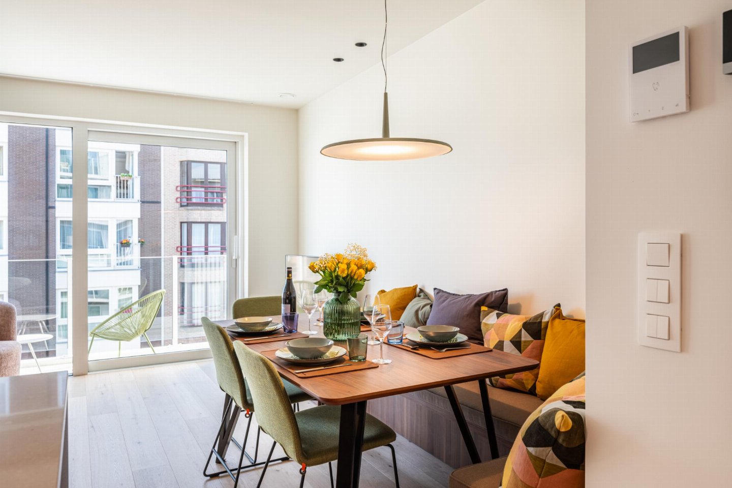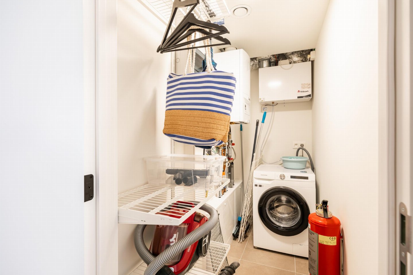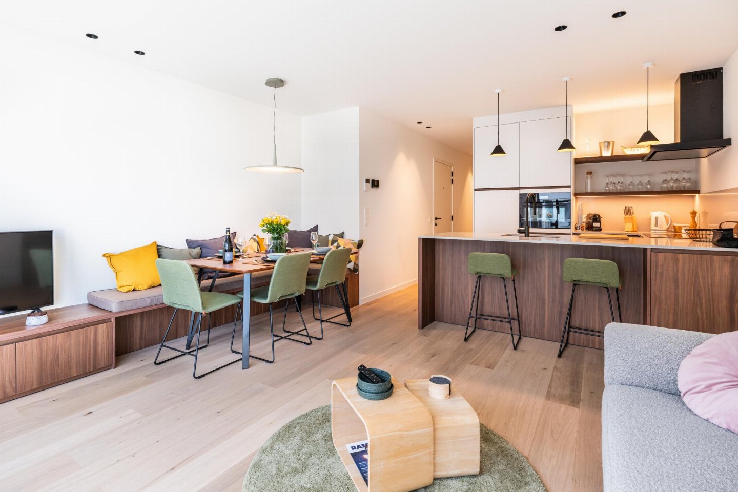 Op de 3e etage: (open keuken(kookplaat(inductie), waterkoker, broodrooster, afzuigkap, koffiezetapparaat(nespresso cups), oven, grill, afwasmachine, koelkast, Staafmixer), woon/eetkamer(TV(flatscreen, digital, smart TV), eettafel, zithoek, radio), slaapkamer(2-pers. bed(2 x 1 persoons dekbed)), slaapkamer(2x 1-pers. bed(dekbed)), badkamer(douche(inloopdouche), wastafel, haardroger), toilet(wc), berging(wasmachine, stofzuiger), 3x balkon, tuinmeubilair, 1x kinderstoel)