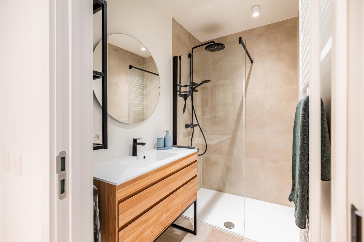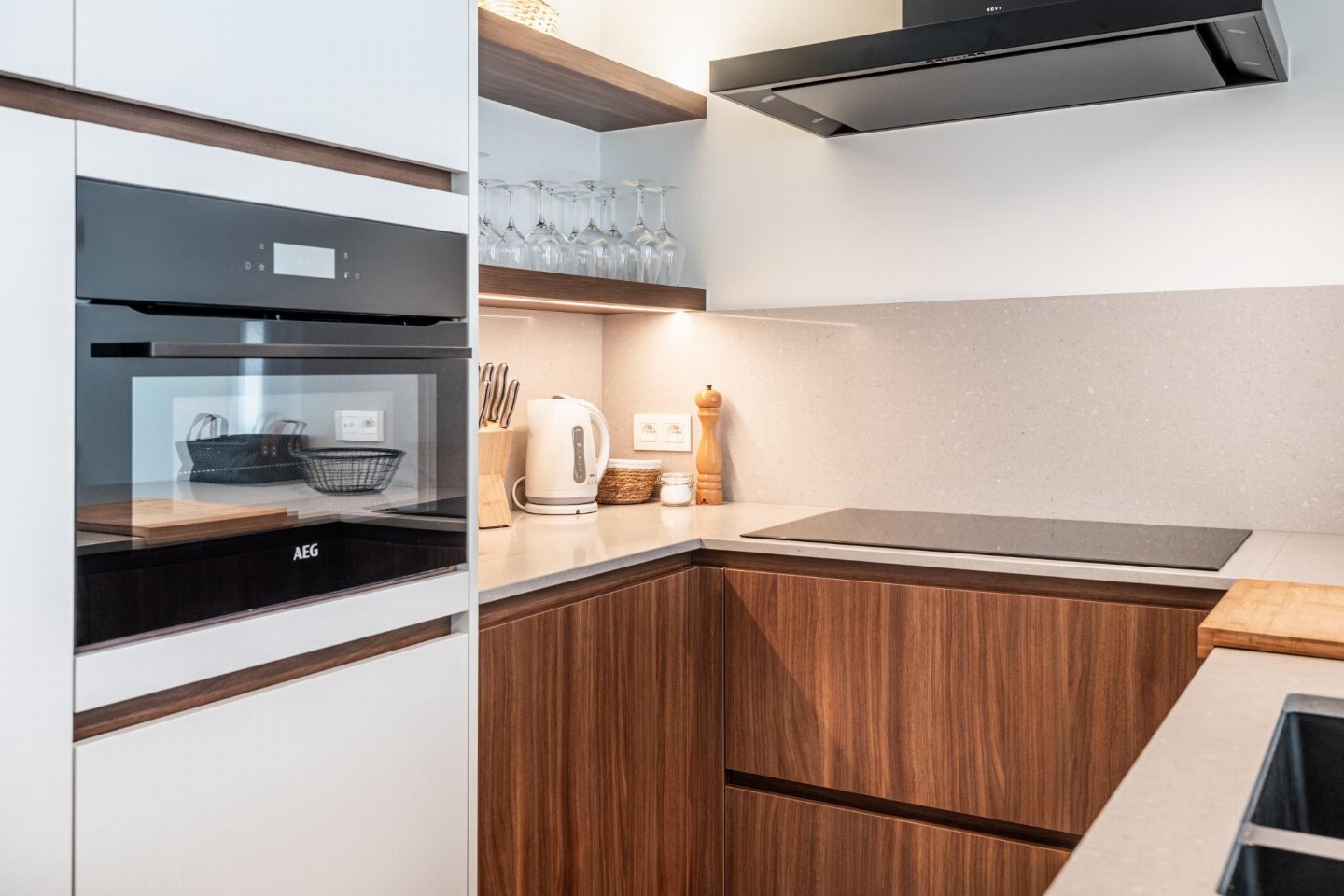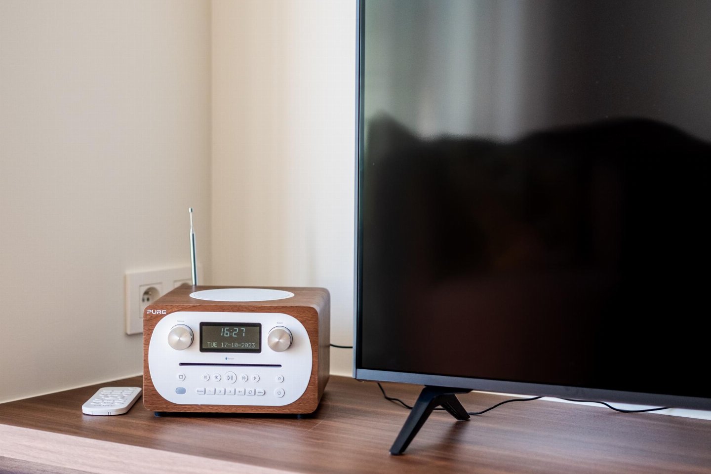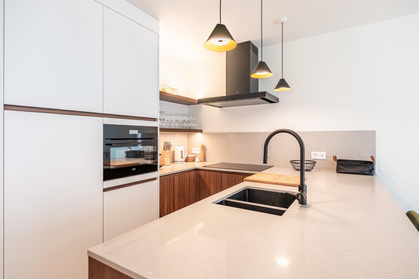 Op de 3e etage: (open keuken(kookplaat(inductie), waterkoker, broodrooster, afzuigkap, koffiezetapparaat(nespresso cups), oven, grill, afwasmachine, koelkast, Staafmixer), woon/eetkamer(TV(flatscreen, digital, smart TV), eettafel, zithoek, radio), slaapkamer(2-pers. bed(2 x 1 persoons dekbed)), slaapkamer(2x 1-pers. bed(dekbed)), badkamer(douche(inloopdouche), wastafel, haardroger), toilet(wc), berging(wasmachine, stofzuiger), 3x balkon, tuinmeubilair, 1x kinderstoel)