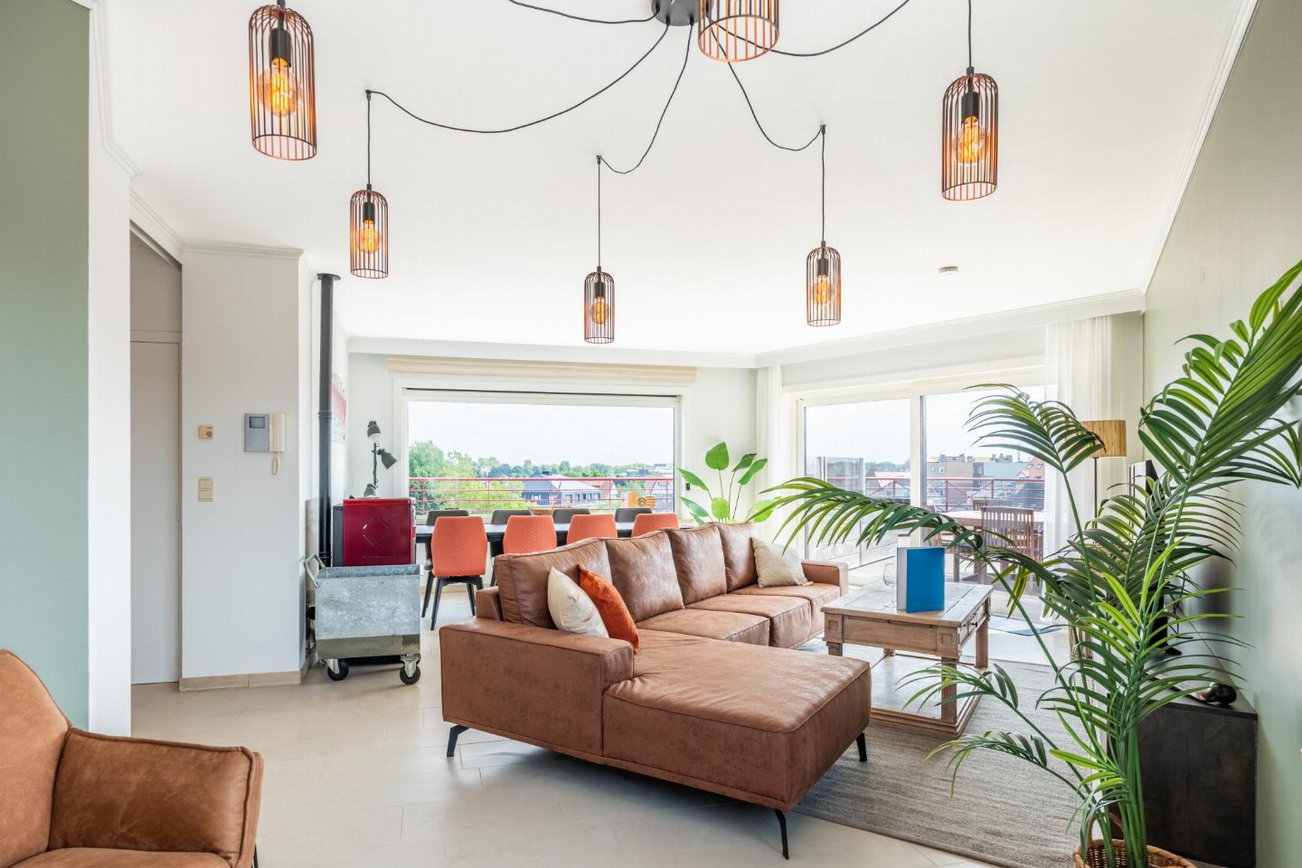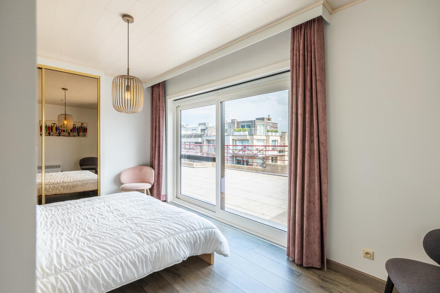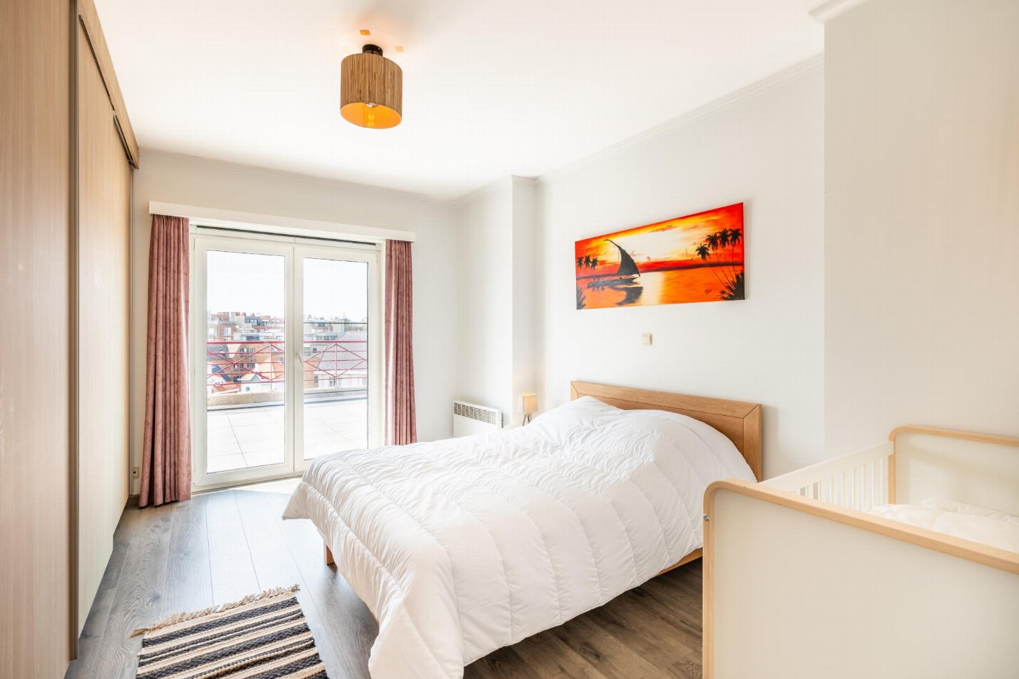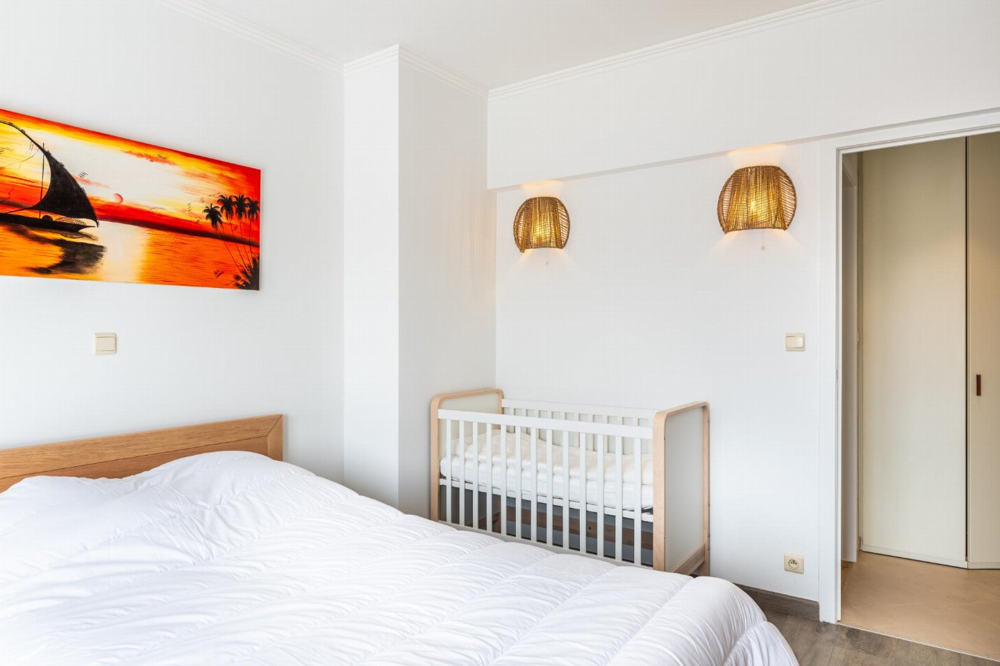 Op de 5e etage: (keuken(eettafel, kookplaat(keramisch), waterkoker, broodrooster, afzuigkap, koffiezetapparaat(filtermaling), combimagnetron, afwasmachine, koelkast( ijsmachine, vriesvak, Amerikaans), Staafmixer), woon/eetkamer(TV(flatscreen, digital), eettafel, kachel(Pellet), zithoek), 2x slaapkamer(2-pers. bed(2 persoons dekbed)), slaapkamer(1-pers. bed(dekbed), stapelbed(dekbed)), badkamer(douche, wastafel), badkamer(wasdroger, ligbad, douche, 2x wastafel, wasmachine), toilet(wc), 2x stofzuiger, dakterras, tuinmeubilair, 1x kinderbed (excl. beddengoed))