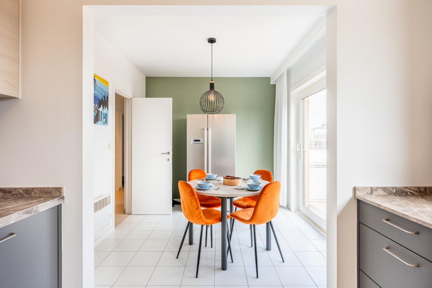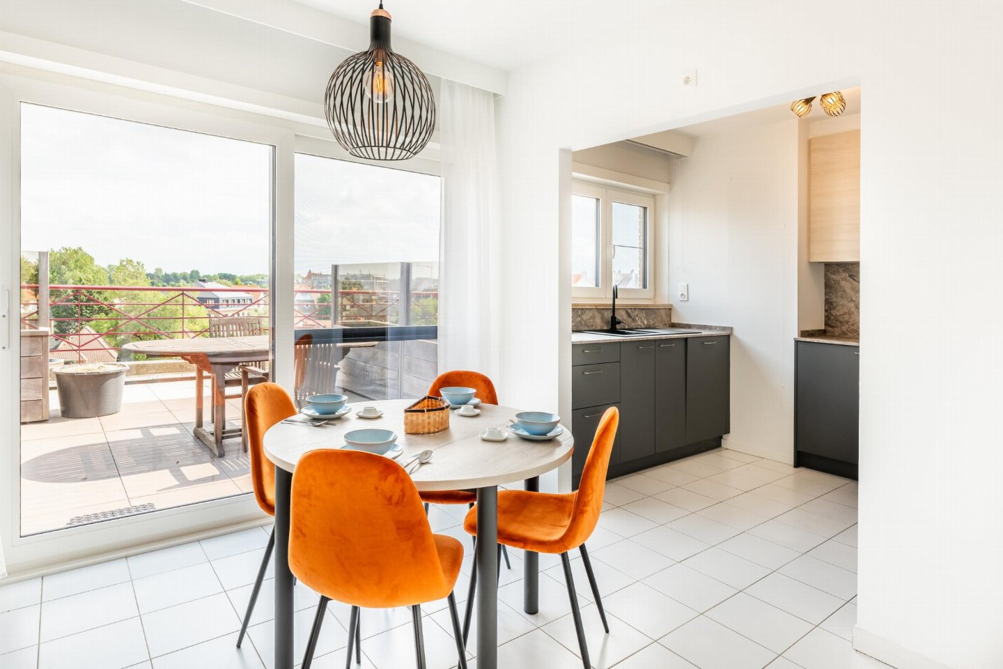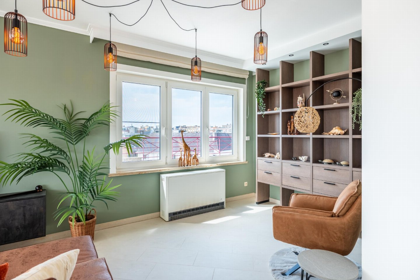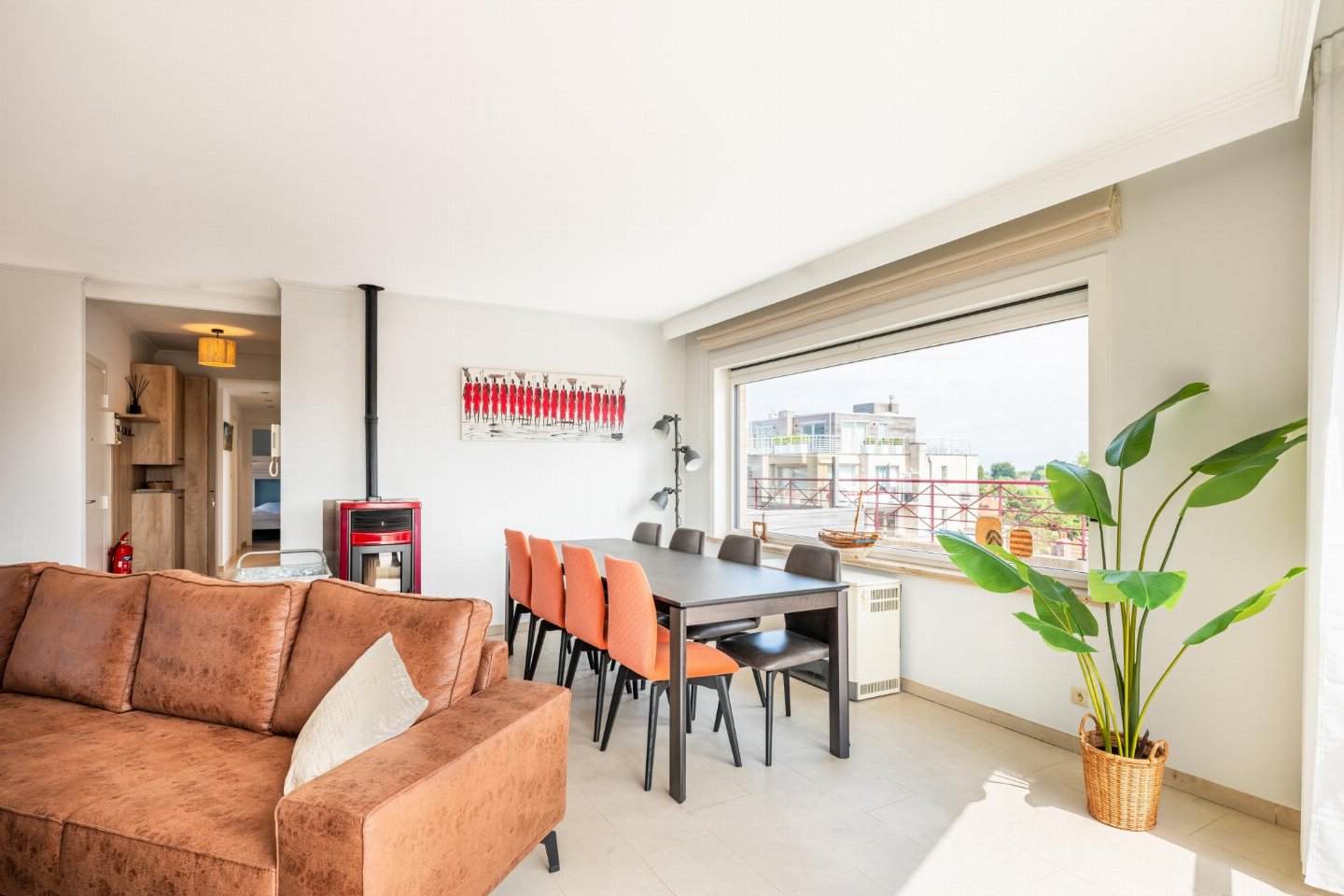 Op de 5e etage: (keuken(eettafel, kookplaat(keramisch), waterkoker, broodrooster, afzuigkap, koffiezetapparaat(filtermaling), combimagnetron, afwasmachine, koelkast( ijsmachine, vriesvak, Amerikaans), Staafmixer), woon/eetkamer(TV(flatscreen, digital), eettafel, kachel(Pellet), zithoek), 2x slaapkamer(2-pers. bed(2 persoons dekbed)), slaapkamer(1-pers. bed(dekbed), stapelbed(dekbed)), badkamer(douche, wastafel), badkamer(wasdroger, ligbad, douche, 2x wastafel, wasmachine), toilet(wc), 2x stofzuiger, dakterras, tuinmeubilair, 1x kinderbed (excl. beddengoed))