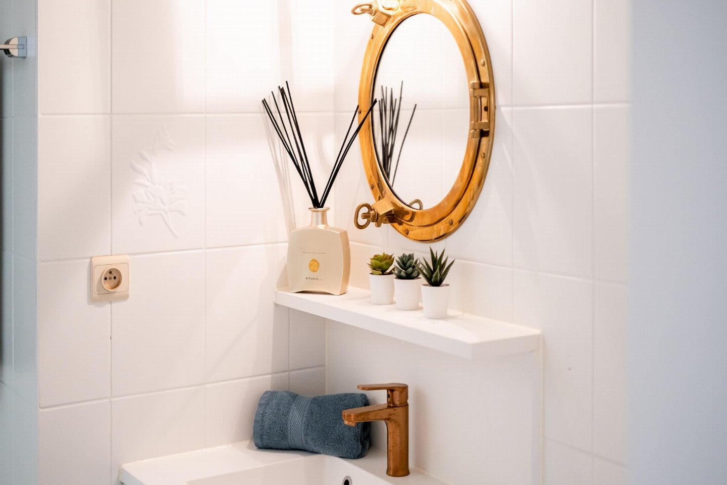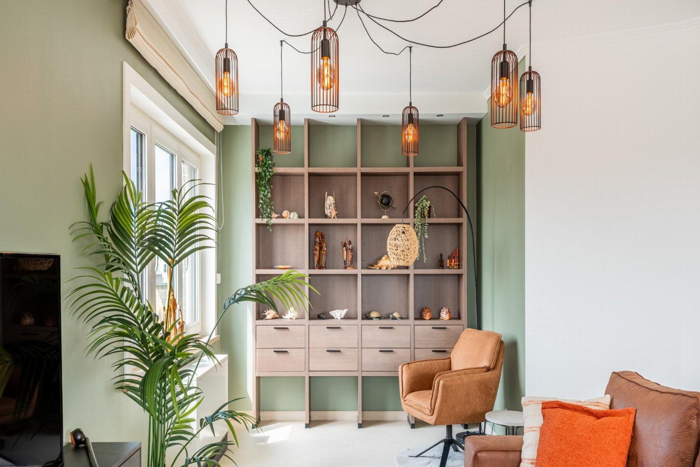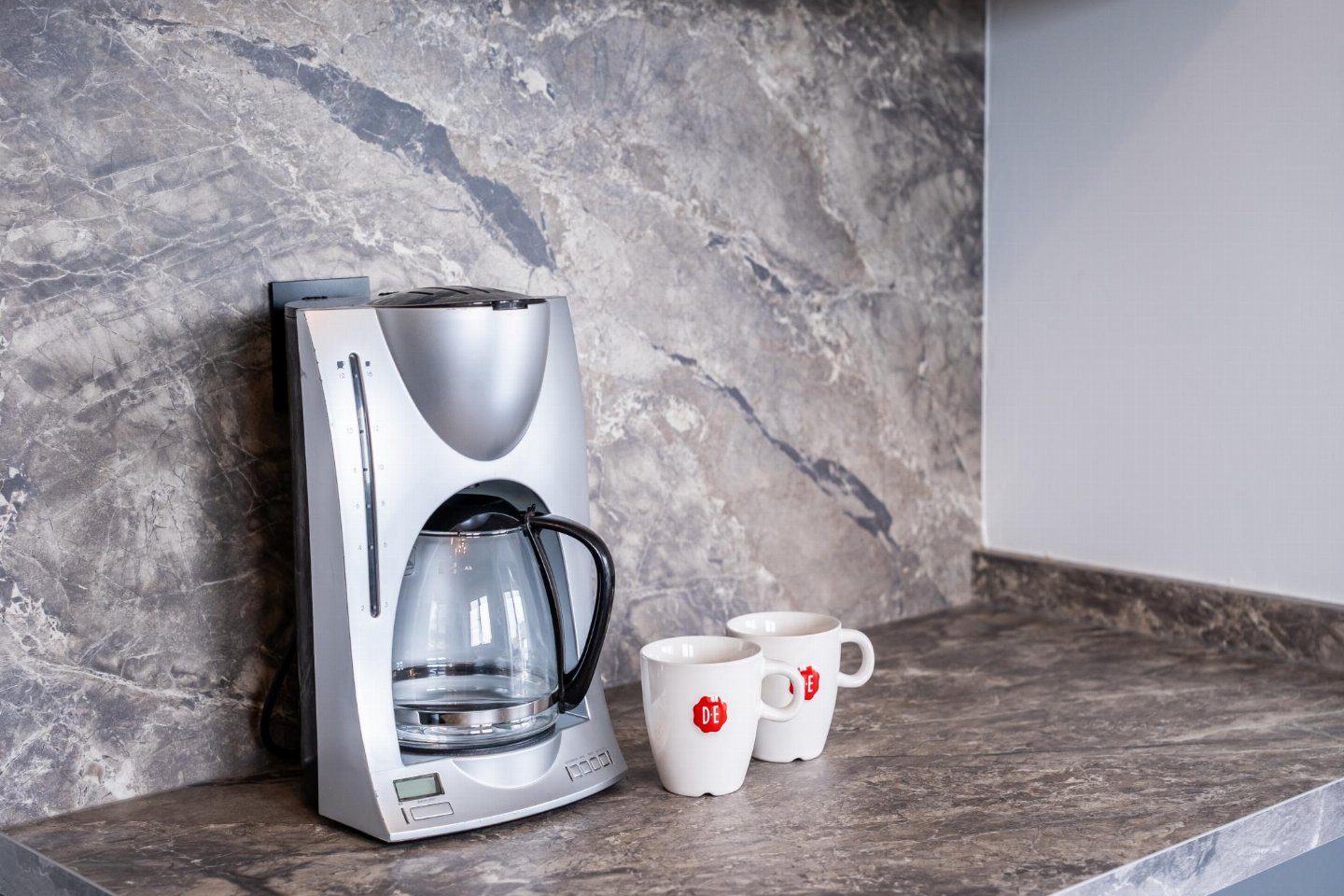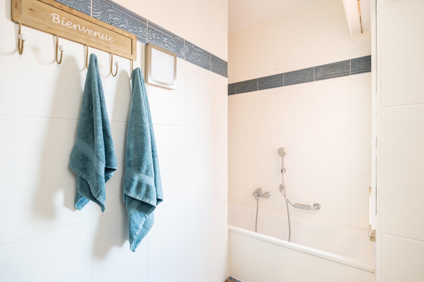 Op de 5e etage: (keuken(eettafel, kookplaat(keramisch), waterkoker, broodrooster, afzuigkap, koffiezetapparaat(filtermaling), combimagnetron, afwasmachine, koelkast( ijsmachine, vriesvak, Amerikaans), Staafmixer), woon/eetkamer(TV(flatscreen, digital), eettafel, kachel(Pellet), zithoek), 2x slaapkamer(2-pers. bed(2 persoons dekbed)), slaapkamer(1-pers. bed(dekbed), stapelbed(dekbed)), badkamer(douche, wastafel), badkamer(wasdroger, ligbad, douche, 2x wastafel, wasmachine), toilet(wc), 2x stofzuiger, dakterras, tuinmeubilair, 1x kinderbed (excl. beddengoed))