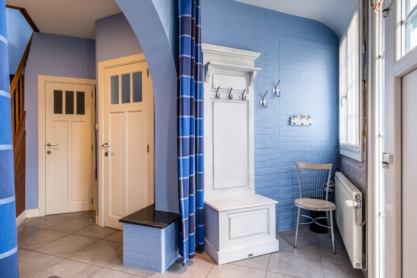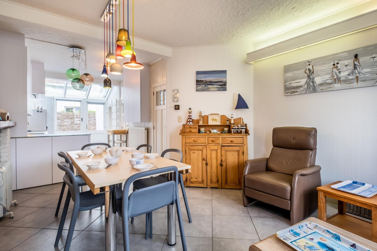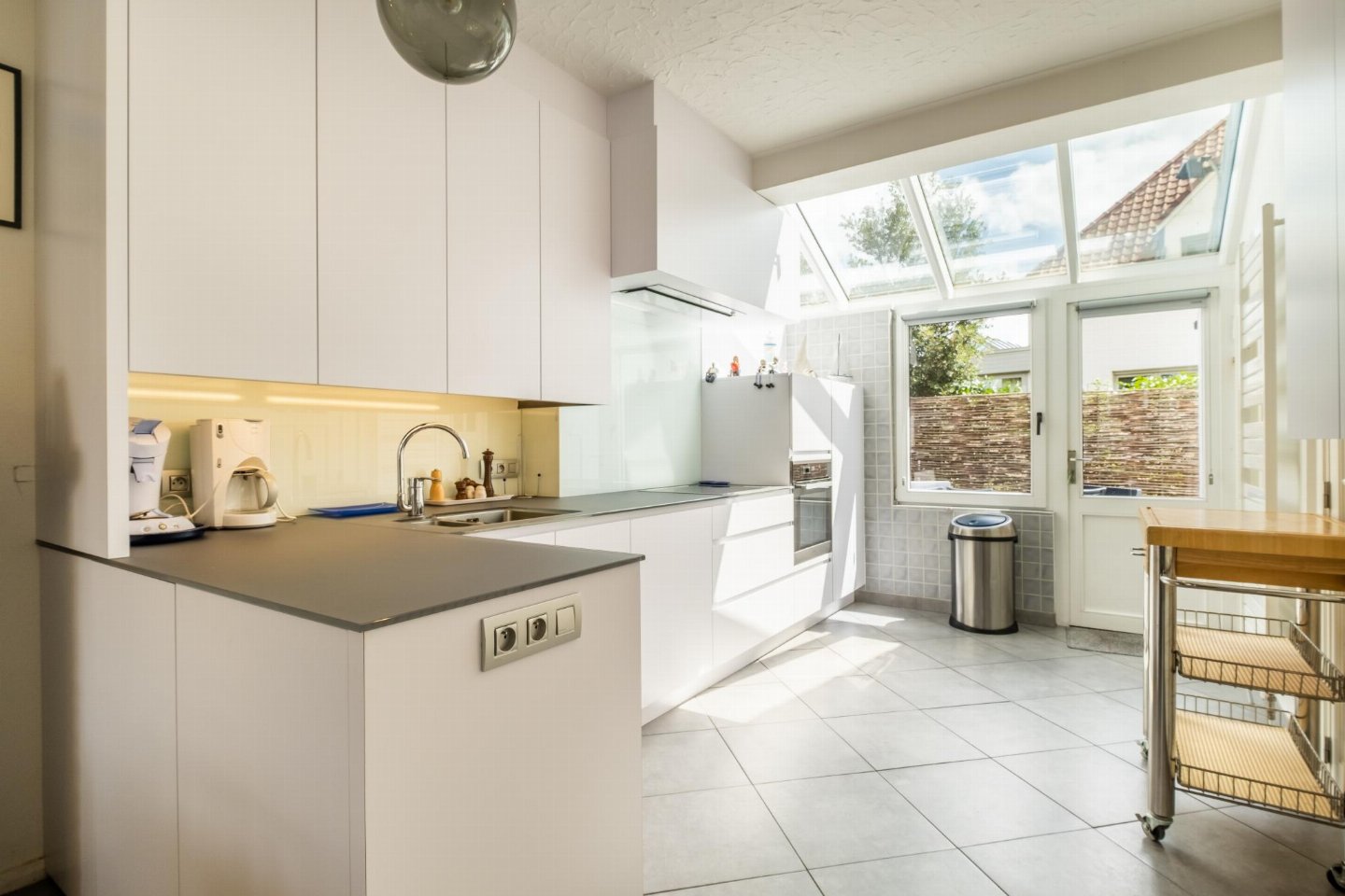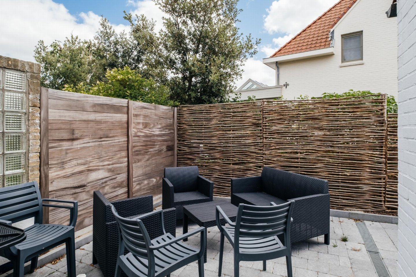 Begane grond: (hal, open keuken(kookplaat, broodrooster, afzuigkap, afzuigkap, koffiezetapparaat(filtermaling, senseo pads), oven, magnetron, afwasmachine, koelkast( vriesvak), koelkast, Staafmixer), woon/eetkamer(TV(flatscreen, digital), eettafel, zithoek), badkamer(ligbad, douche, wastafel), toilet(wc), terras(privé, omheind, 10 m2), tuin(privé, niet omheind), parasol)