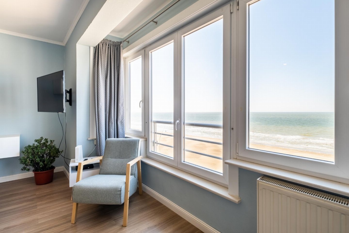 Appartement La Plage in Koksijde is een ruim, gerenoveerd appartement op de 5e verdieping met prachtig frontaal zeezicht, drie slaapkamers, een moderne open keuken en een comfortabele woonkamer. Ideaal voor 6 personen. Met haar topligging direct aan het strand en op slechts enkele honderden meters van het centrum met de winkels en restaurants is het perfect voor een ontspannende strandvakantie aan de Belgische Kust