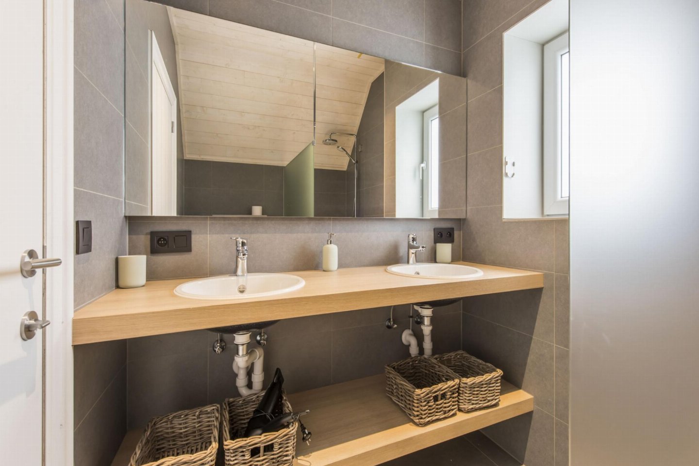 Op de 1e etage: (2x slaapkamer(2-pers. bed(2 persoons dekbed)), slaapkamer(2x 1-pers. bed(dekbed), stapelbed(dekbed)), badkamer(douche(inloopdouche), 2x wastafel, wc))