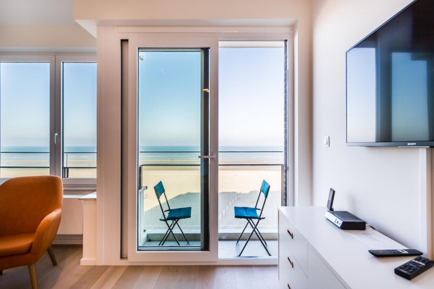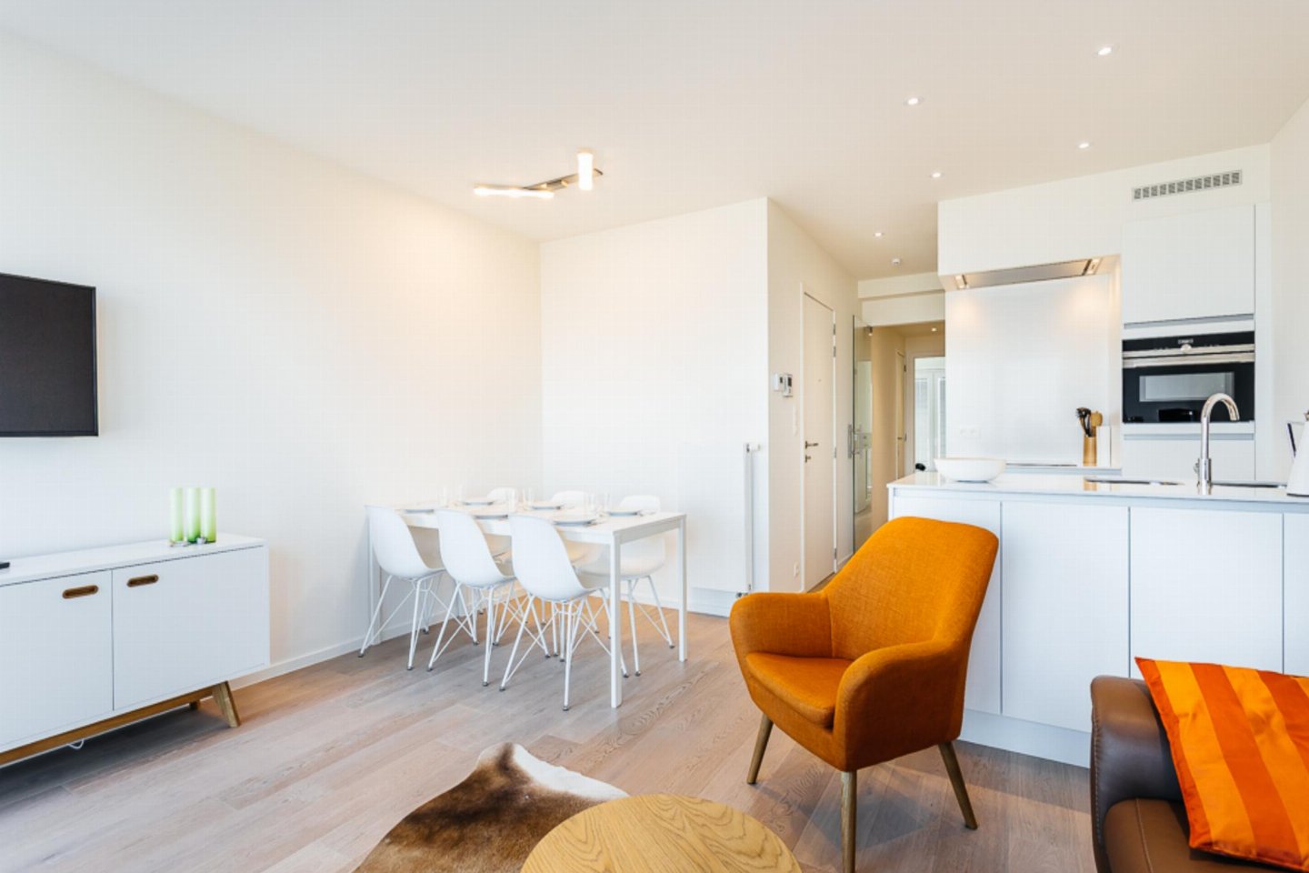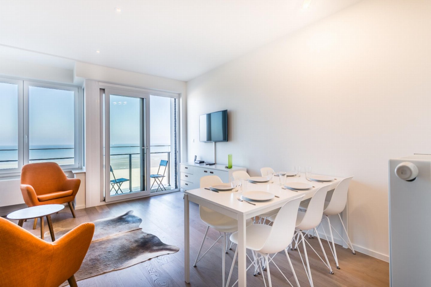 Modern luxe appartement op de vierde verdieping direct aan het strand gelegen en met een prachtig frontaal zeezicht. Het is een ideaal appartement voor een gezin met kinderen. Geniet van een moderne open keuken, inloopdouche en alle comfort voor vijf personen. bed(2 persoons dekbed) , slaapkamer met 1-pers.