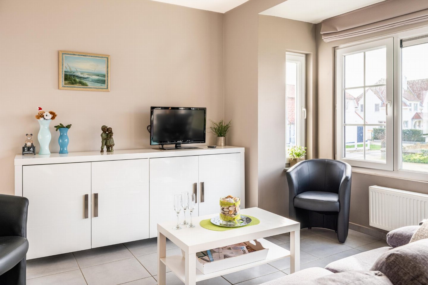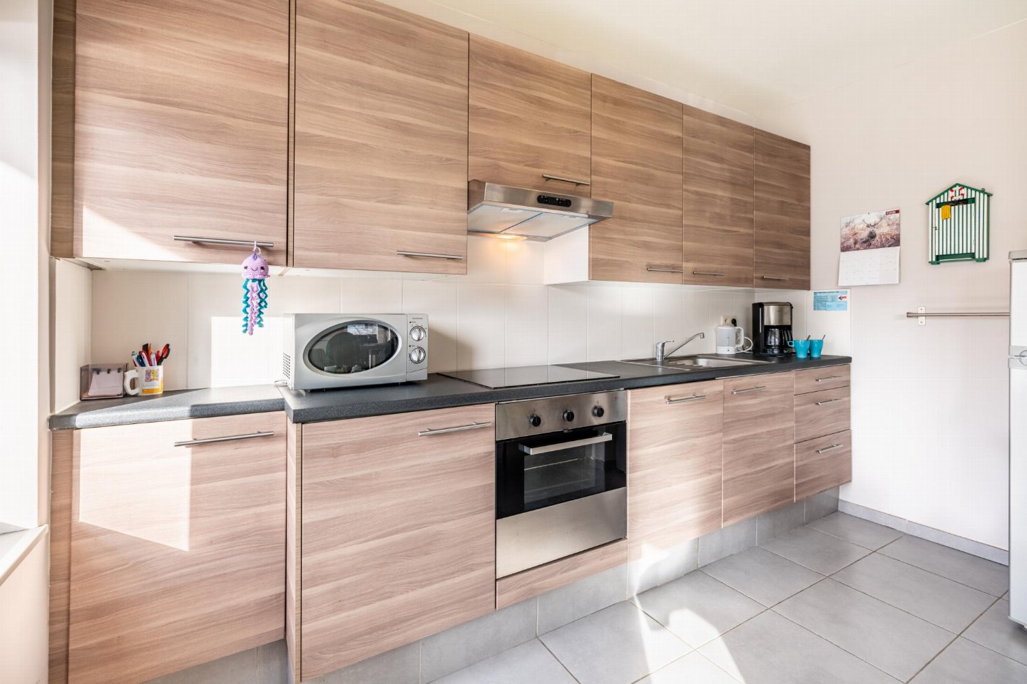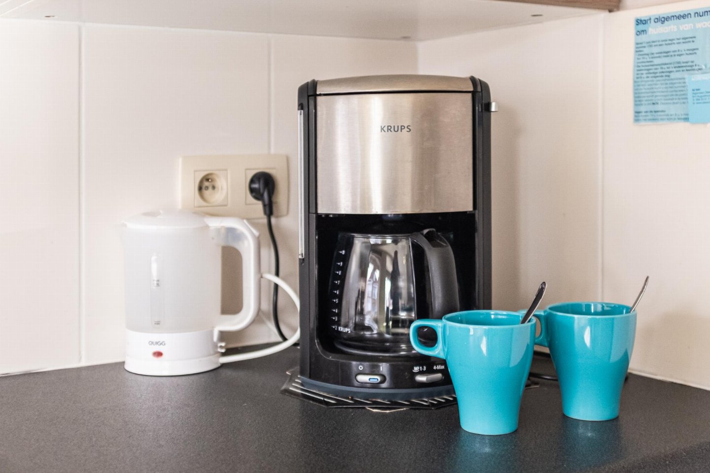 Op de 1e etage: (keuken(kookplaat(keramisch), waterkoker, broodrooster, koffiezetapparaat(filtermaling), oven, magnetron, afwasmachine, koelkast( vriesvak)), woon/eetkamer(TV(flatscreen, digital), eettafel, zithoek), slaapkamer(2-pers. bed(2 persoons dekbed)), slaapkamer(2x stapelbed(dekbed)), badkamer(bad met douche, 2x wastafel, wc))