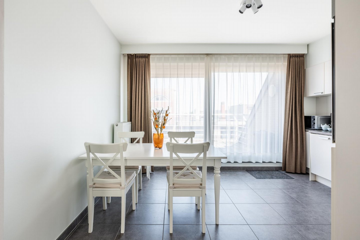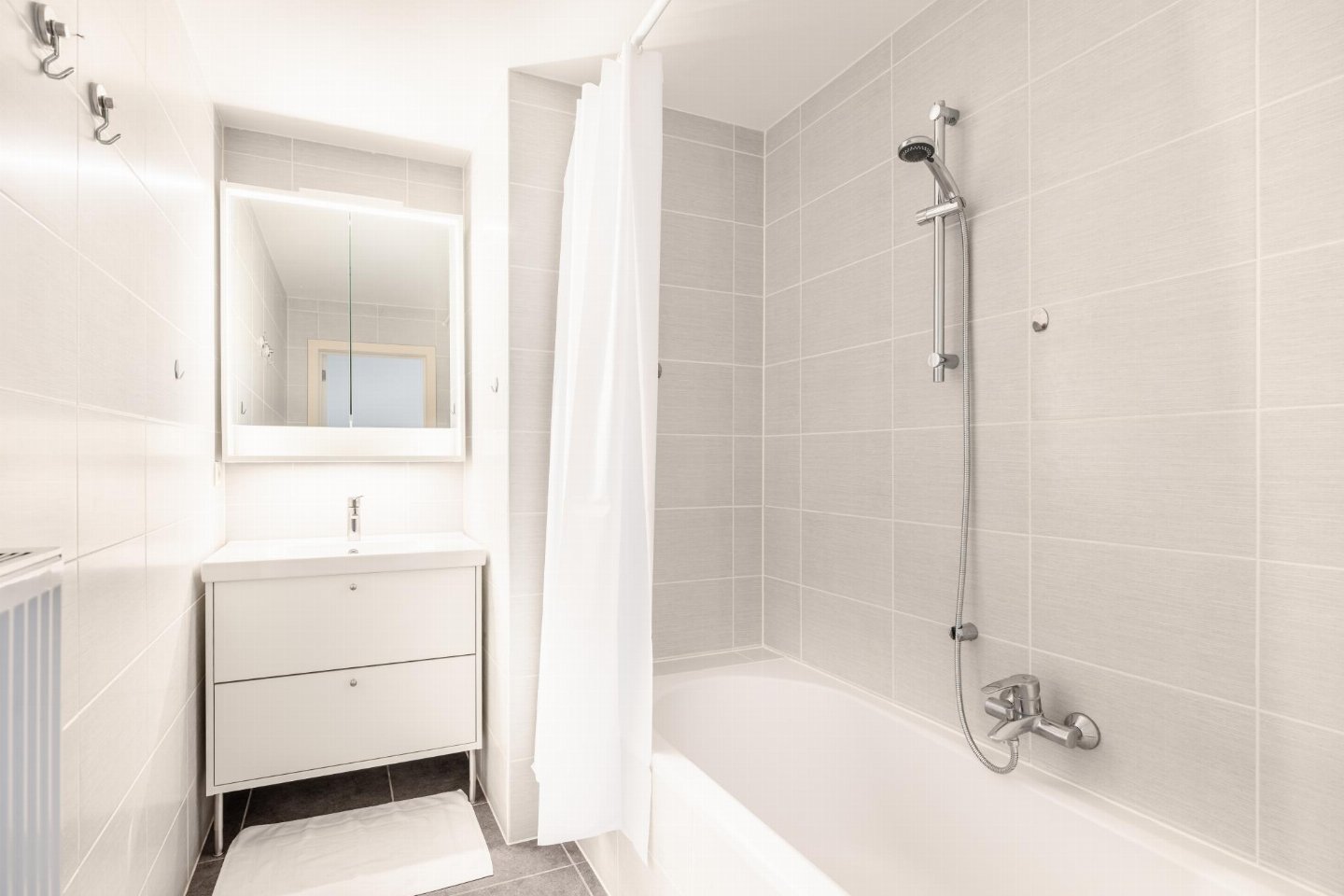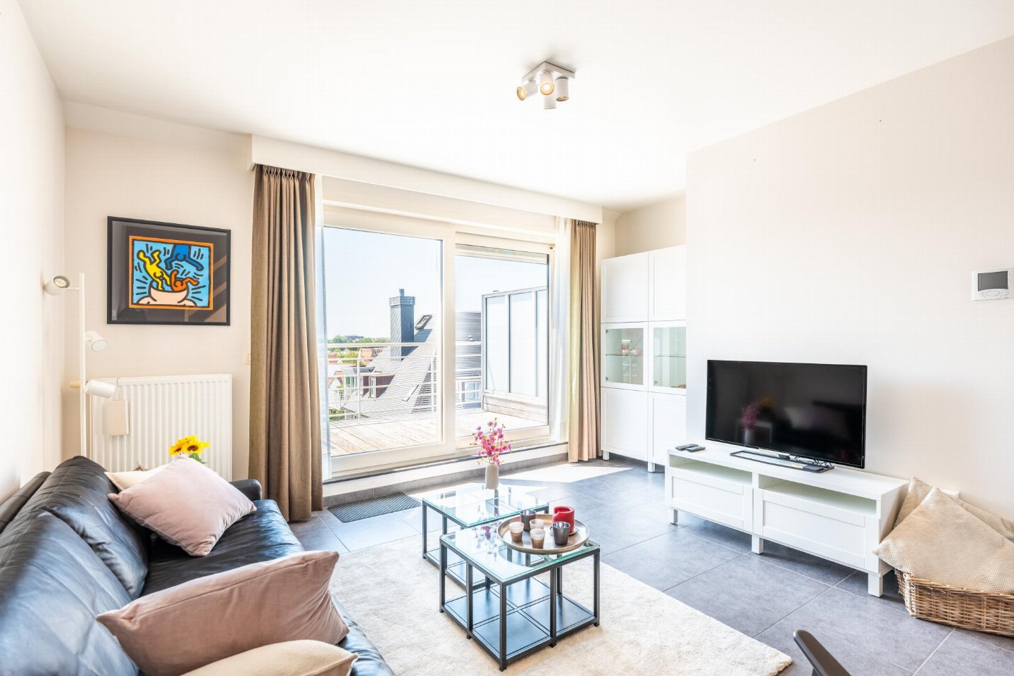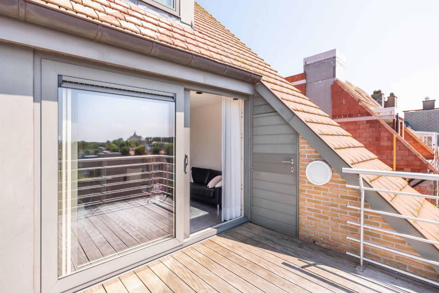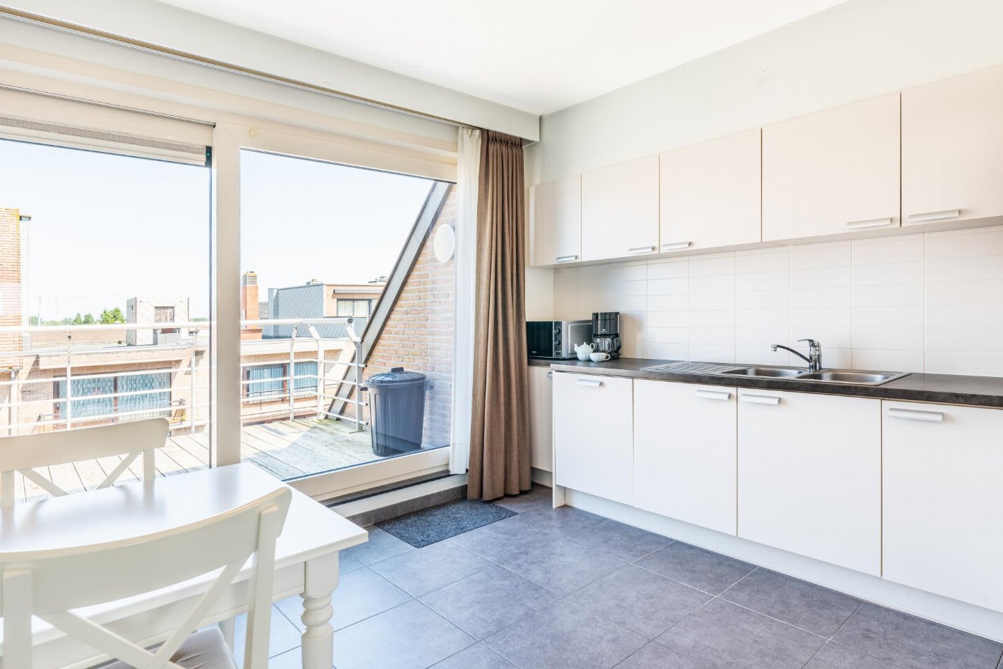 Op de 4e etage: (woonkamer(TV(flatscreen, digital), zithoek), eetkamer(eettafel), open keuken(kookplaat(keramisch), waterkoker, broodrooster, afzuigkap, koffiezetapparaat(filtermaling), oven, grill, magnetron, afwasmachine, koelkast( vriesvak), Staafmixer), toilet(wc), 2x terras(privé), tuinmeubilair, ligbedden)