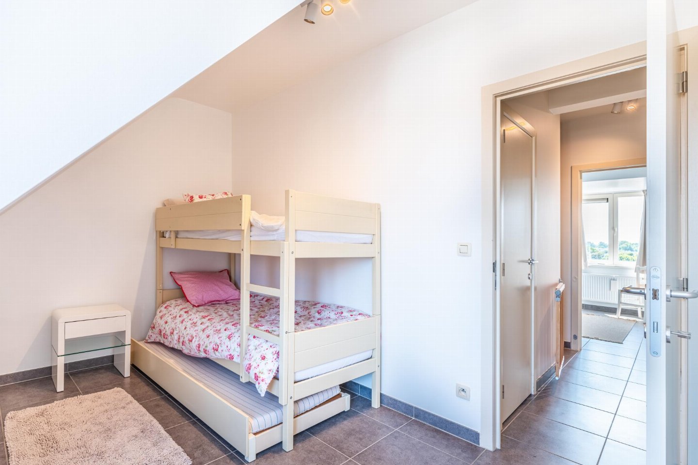 Op de 5e etage(via steile trap): (slaapkamer(2-pers. bed(2 persoons dekbed)), slaapkamer(1-pers. onderschuifbed(dekbed), stapelbed(dekbed)), badkamer(bad met douche, wastafel), toilet(wc))