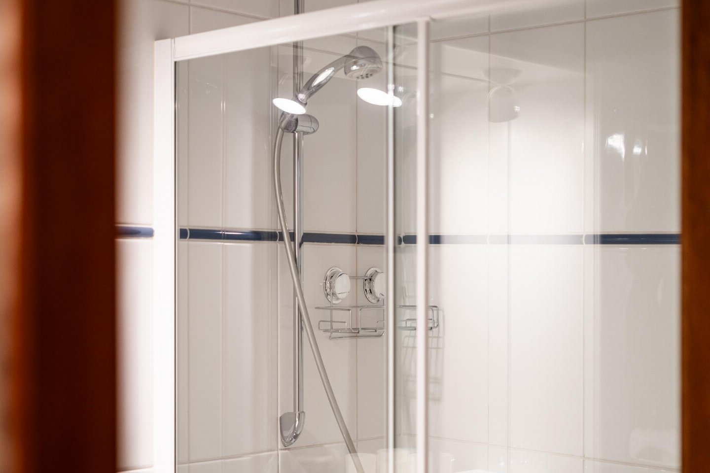 Op de 1e etage: (keuken(kookplaat(keramisch), waterkoker, broodrooster, afzuigkap, koffiezetapparaat(filtermaling), combimagnetron, afwasmachine, koelkast( vriesvak), Staafmixer), woon/eetkamer(TV(flatscreen, digital), eettafel, zithoek, radio, CD-speler), slaapkamer(1-pers. bed(dekbed, 90 x 200 cm), stapelbed(dekbed, 90 x 200 cm)), slaapkamer(2-pers. bed(2 persoons dekbed, 160 x 200 cm)), badkamer(douche, wastafel, haardroger), toilet(wc), eettafel, stofzuiger, balkon, terras(privé), tuinmeubilair, parasol, strijkijzer)