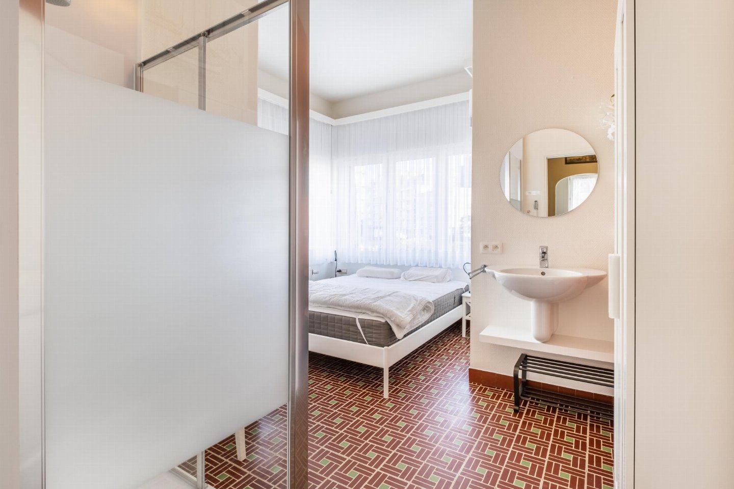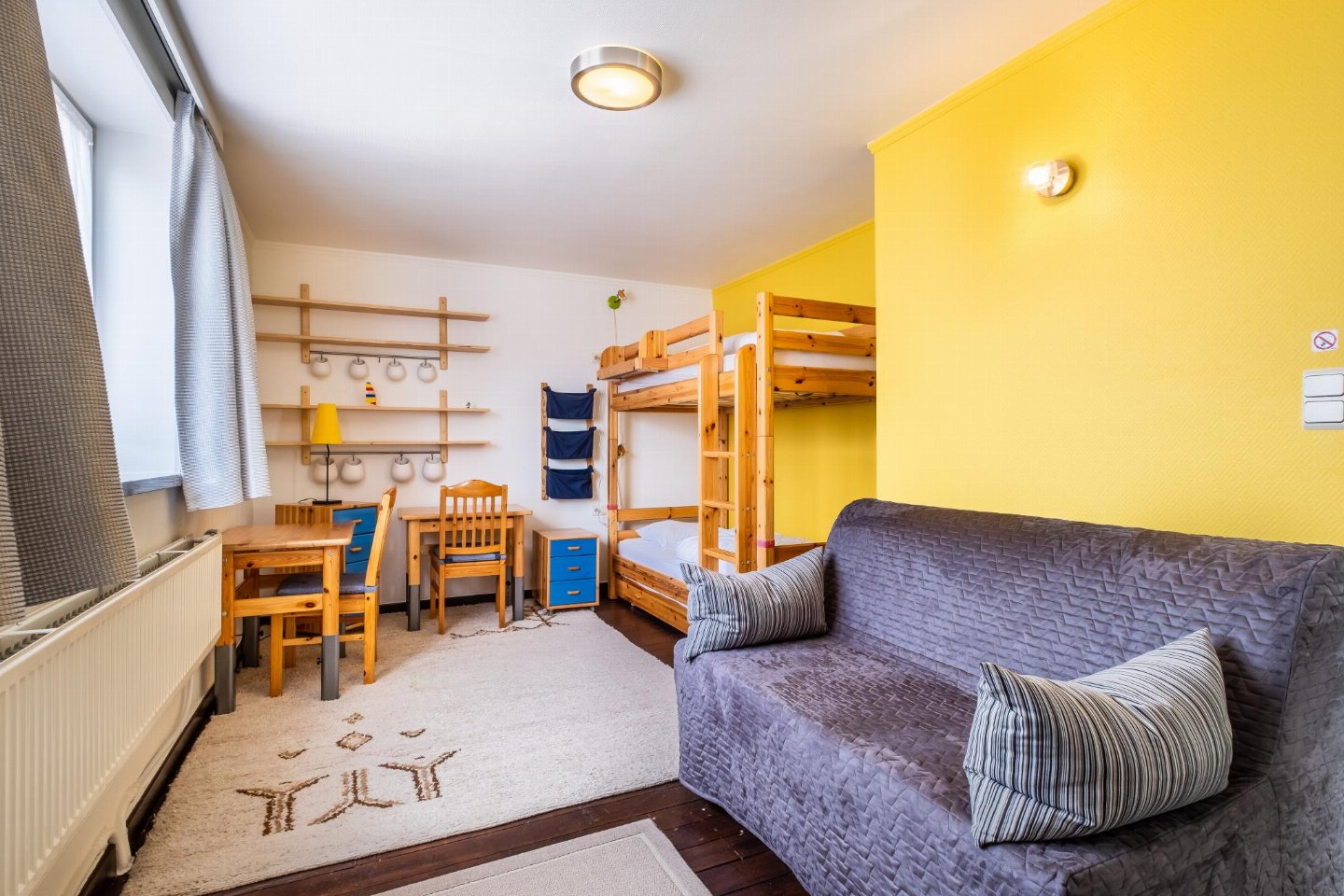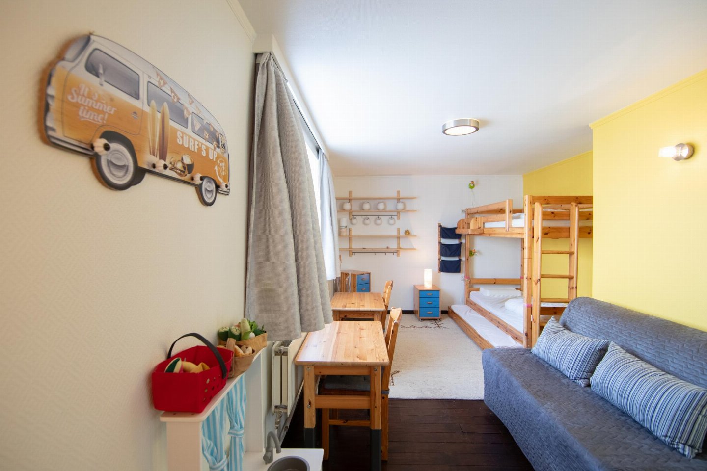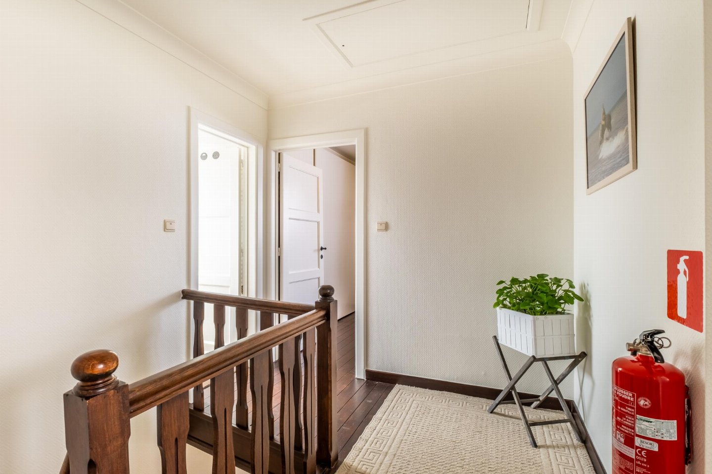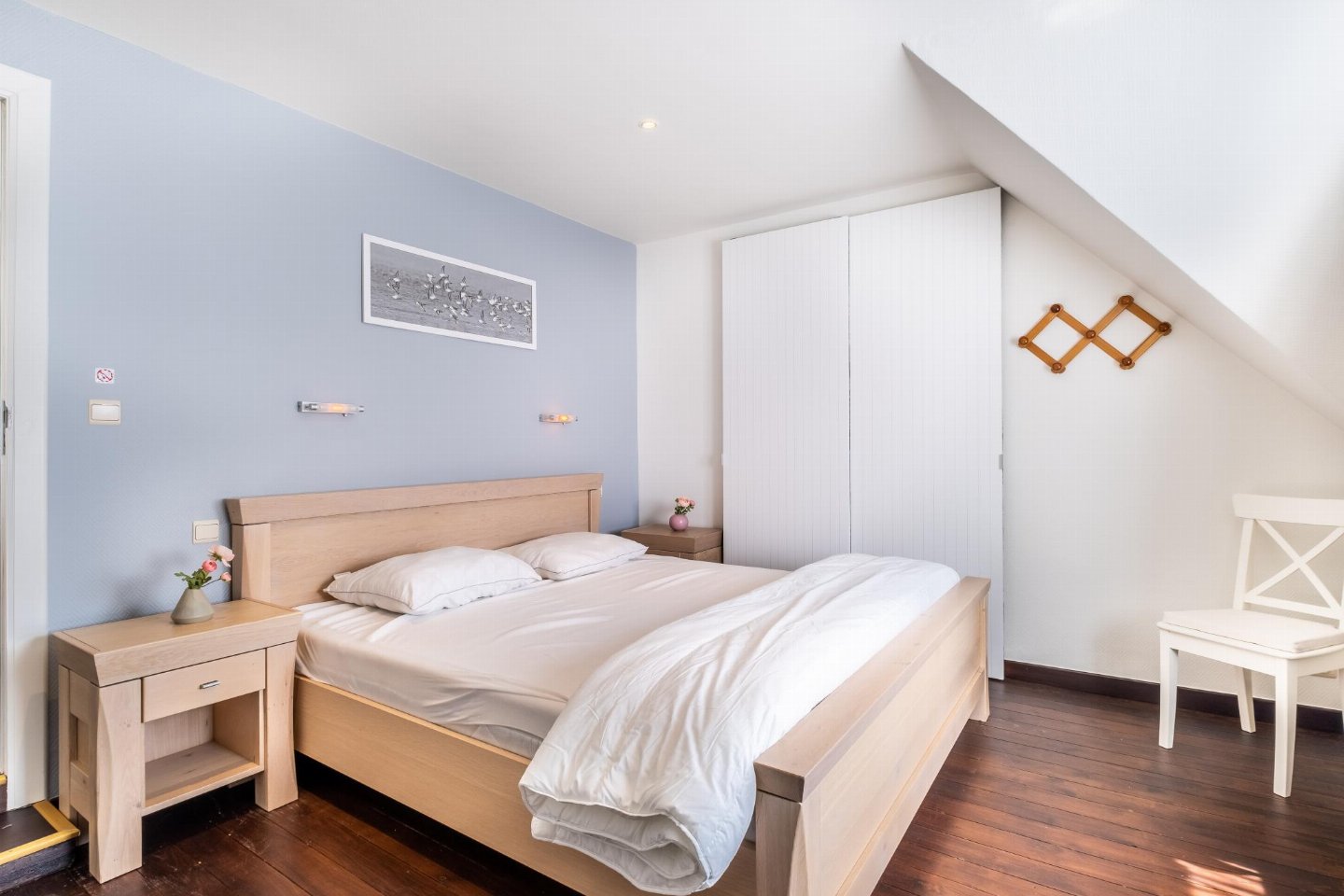 Op de 1e etage: (2x slaapkamer(2-pers. bed(2 persoons dekbed)), slaapkamer(1-pers. onderschuifbed(dekbed), stapelbed(dekbed), zithoek), badkamer(bad met douche, wastafel), badkamer(douche, wastafel, wc))