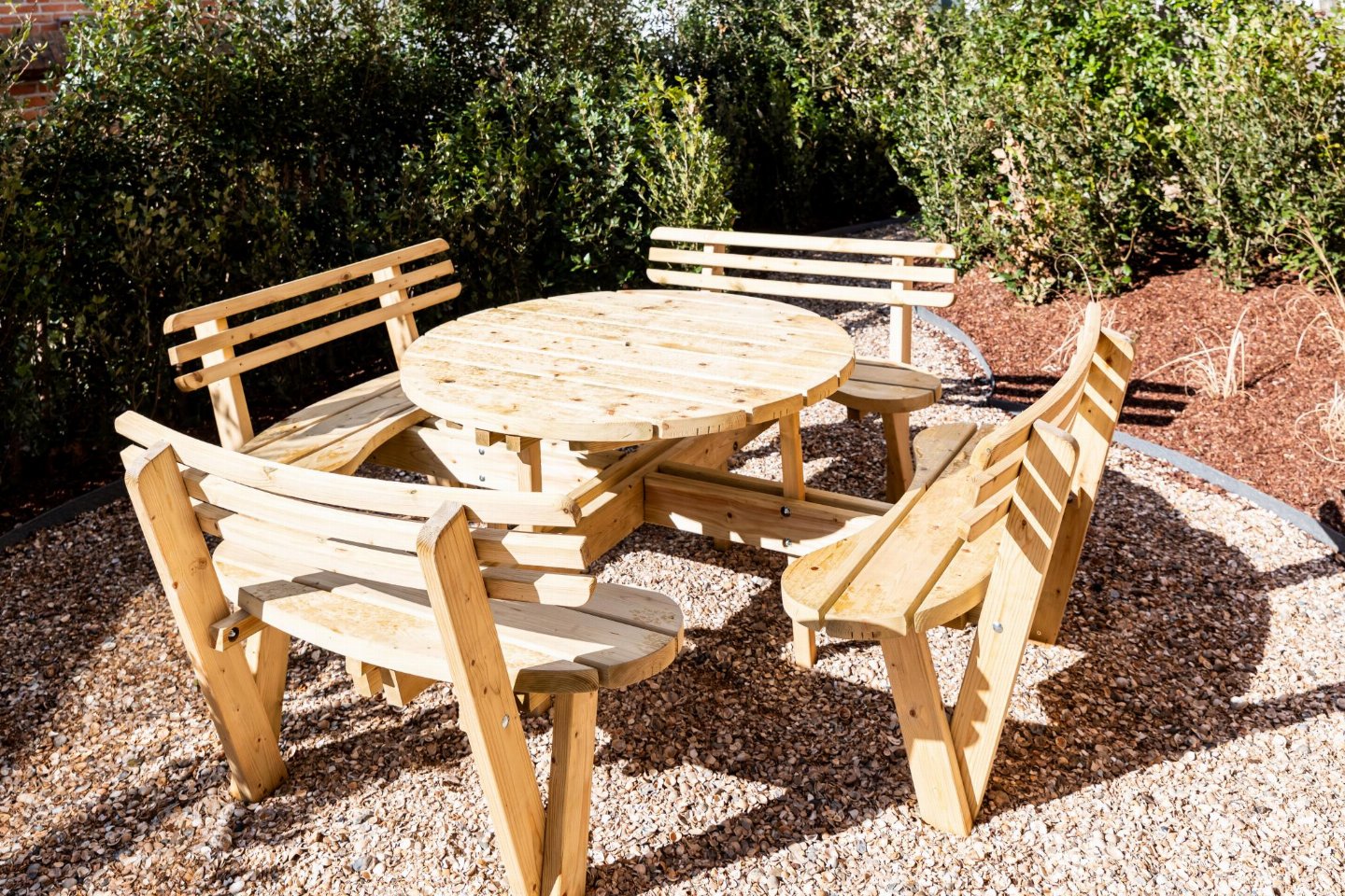 Begane grond: (hal, keuken(kookplaat(keramisch), waterkoker, broodrooster, afzuigkap, koffiezetapparaat(filtermaling, Dolce Gusto), oven(elektrisch, stoom), combimagnetron, afwasmachine, koelkast( ijsmachine, vriesvak, Amerikaans), vriezer, Staafmixer), woon/eetkamer(TV(flatscreen, digital), eettafel, zithoek), slaapkamer met badkamer(2-pers. bed(2 persoons dekbed), TV(flatscreen, digital), douche, wastafel), toilet(wc), terras, tuin(privé, aangelegd, omheind), tuinmeubilair, ligbedden, BBQ(houtskool), zandbak, 1x kinderstoel)