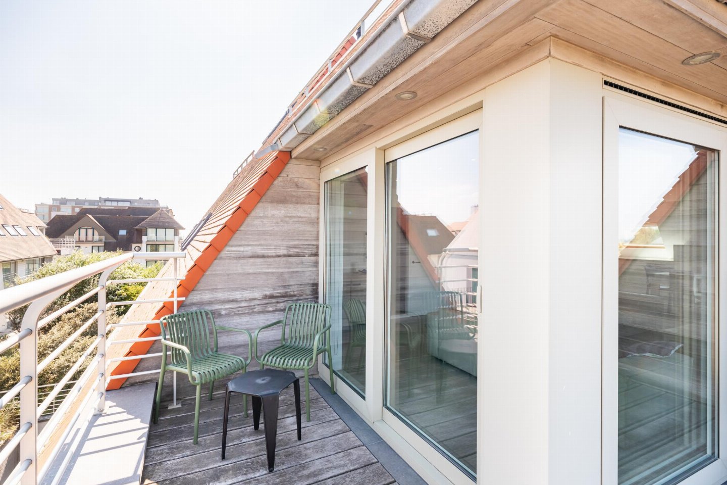 Op de 2e etage: open keuken met kookplaat(keramisch), waterkoker, afzuigkap, koffiezetapparaat(filtermaling), oven(elektrisch), combimagnetron, magnetron, afwasmachine, koelkast, Staafmixer , woon/eetkamer met TV(flatscreen, digital), eettafel, zithoek , slaapkamer met 2-pers. bed(2 x 1 persoons dekbed) , slaapkamer met 1-pers. bed(dekbed) , slaapkamer met 1-pers. onderschuifbed(dekbed), stapelbed(dekbed) , slaapkamer met badkamer met 2-pers. bed(2 x 1 persoons dekbed), bad met douche, 2x wastafel, wc , badkamer met douche, 2x wastafel , 2x toilet met wc , berging met wasdroger, wasmachine, stofzuiger , 2x terras, dakterras