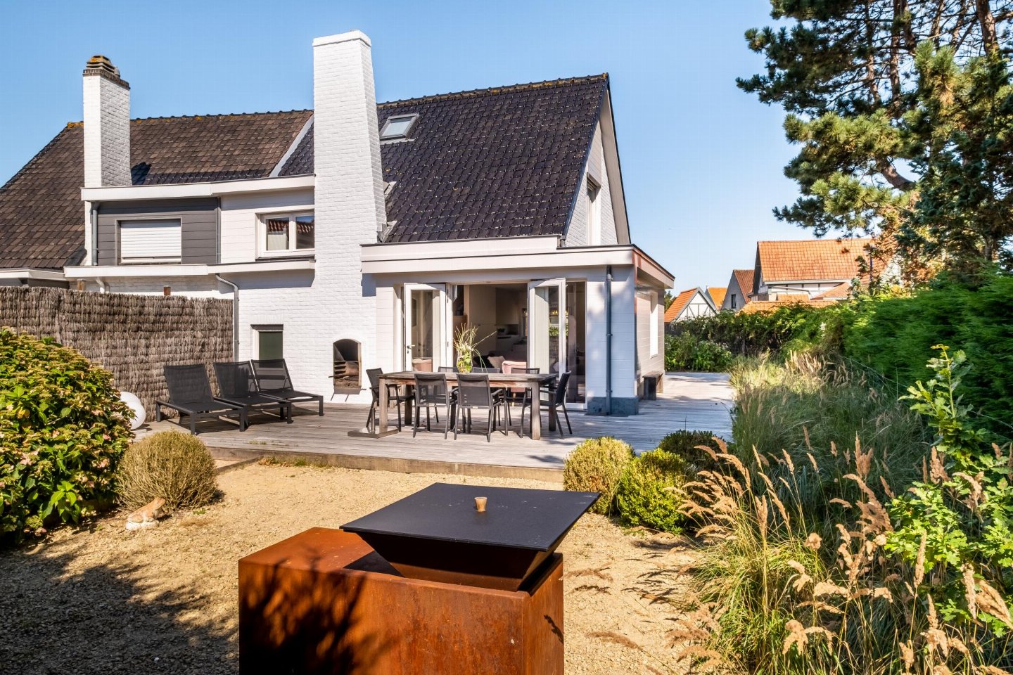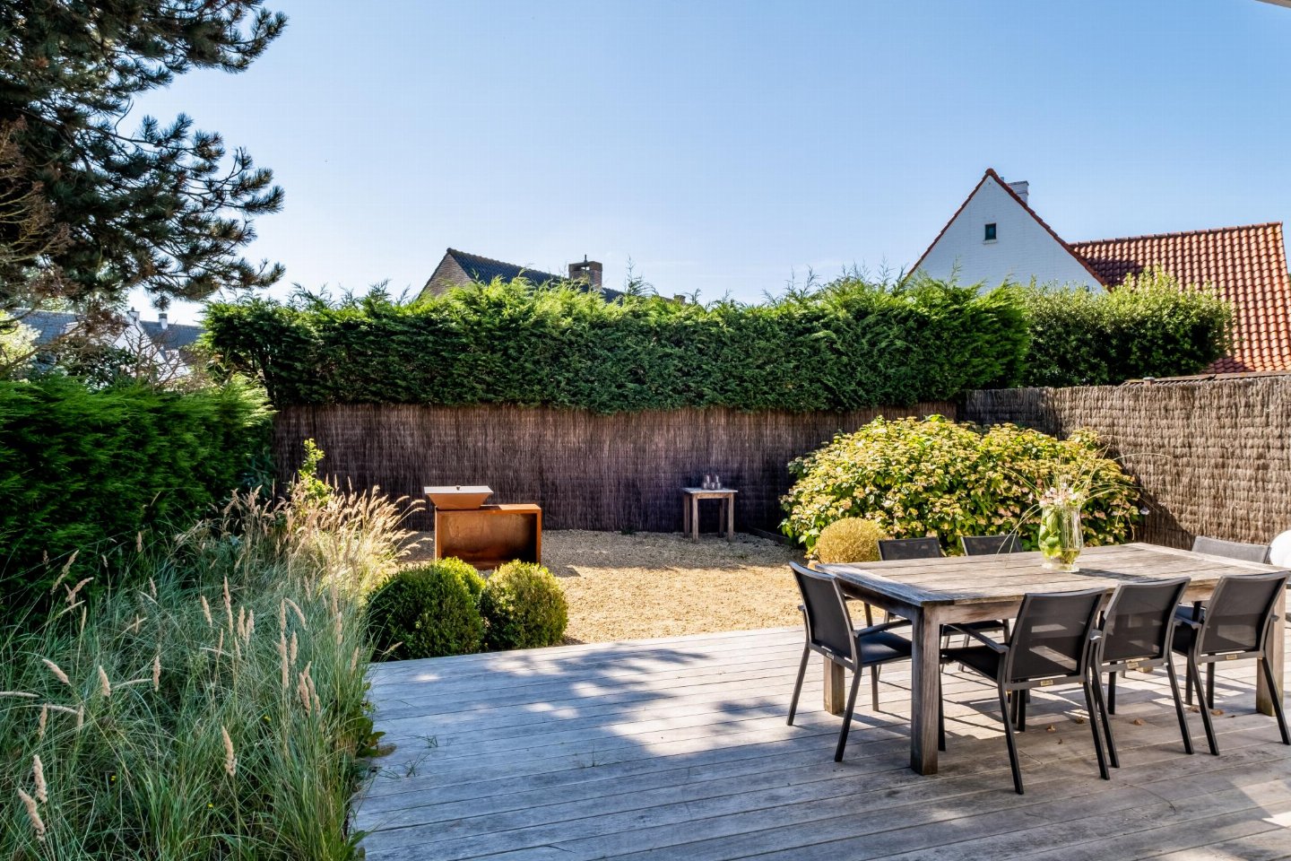 terras(10 m2), tuin(privé, aangelegd, omheind), tuinmeubilair, ligbedden, BBQ(houtskool), zandbak
