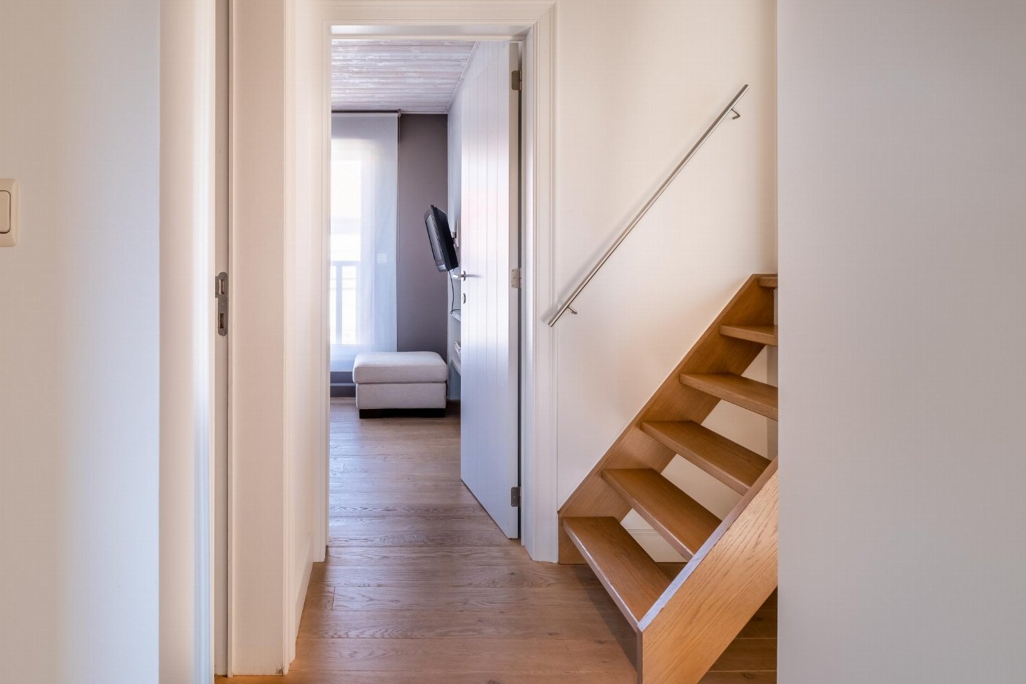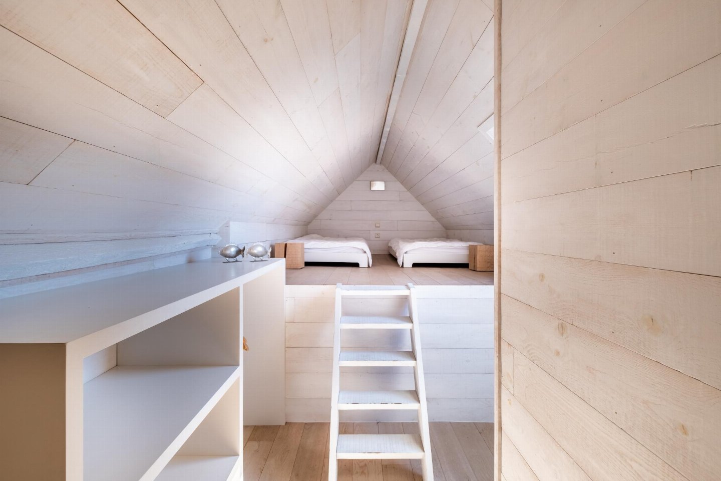 Op de 2e etage: (slaapkamer(via steile trap)(2x 1-pers. bed(dekbed)))