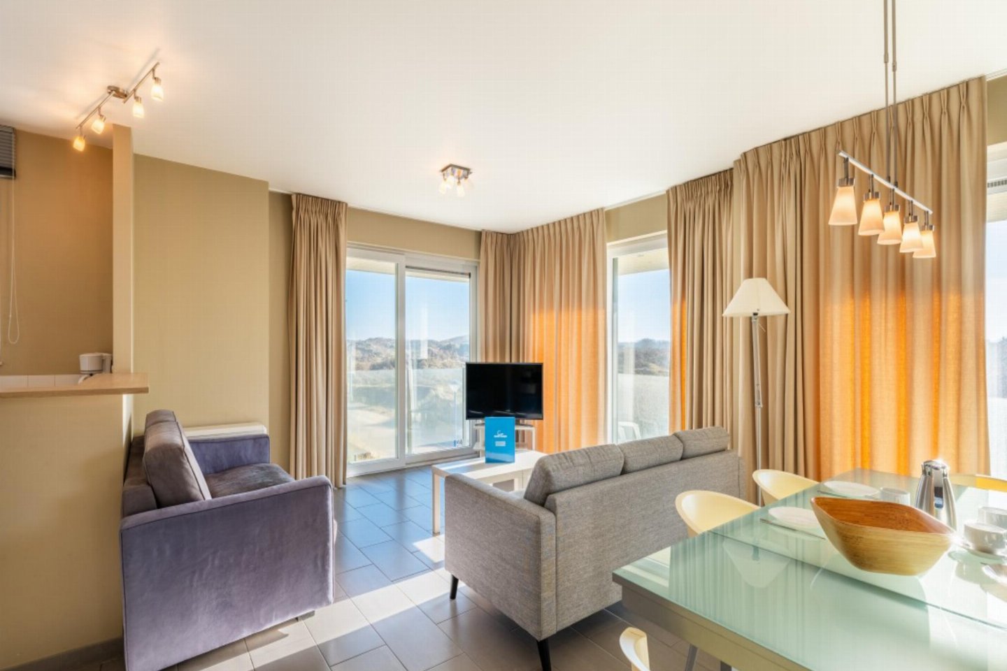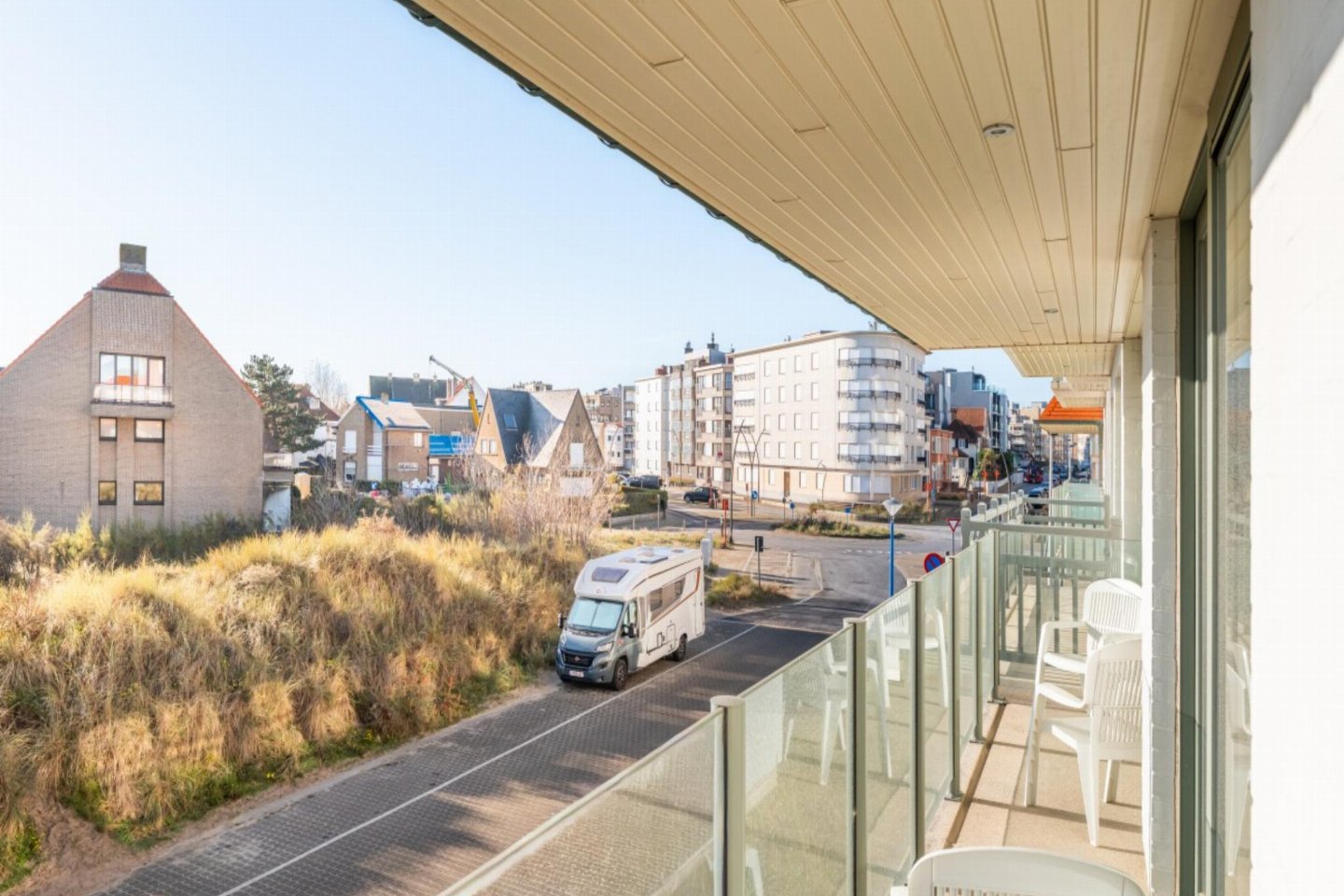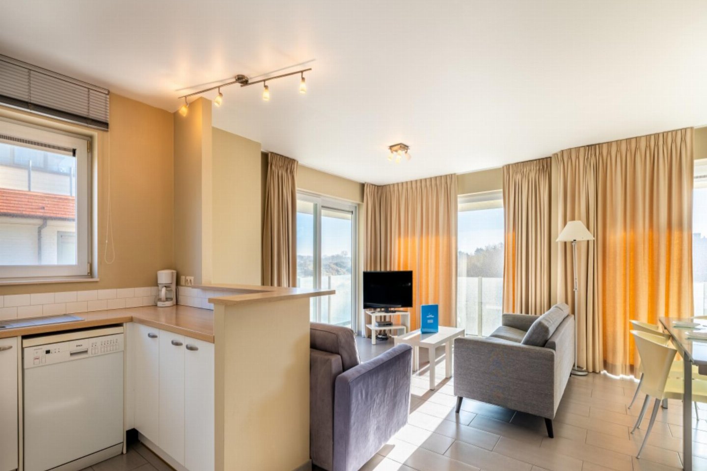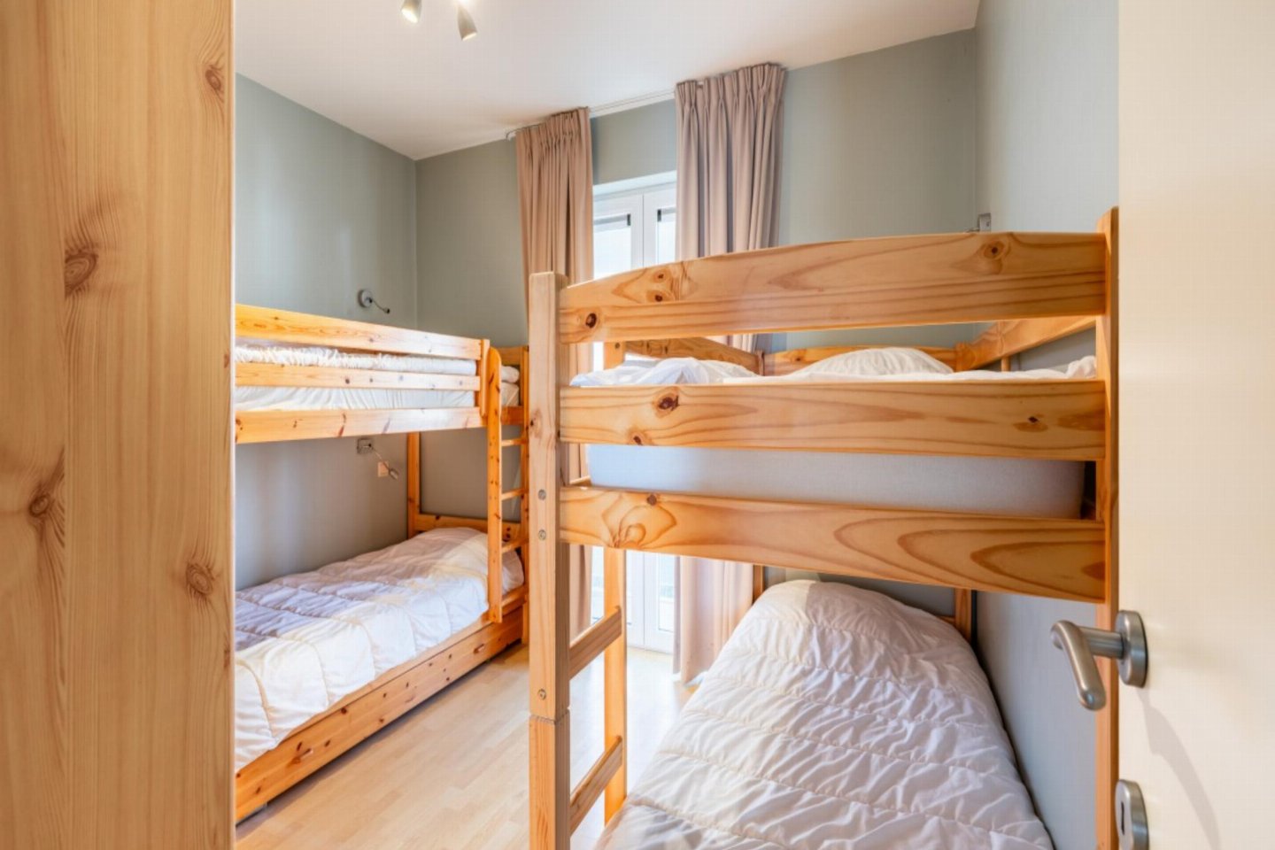 Ontdek Vue Dunes in Koksijde: een elegant appartement op de eerste verdieping, slechts 50m van het strand!. Geniet van betoverend duin- en zeezicht vanaf je terras, ideaal voor 7 personen met 2 slaapkamers (dubbel bed stapelbedden), 2 badkamers en volledig uitgeruste keuken.
