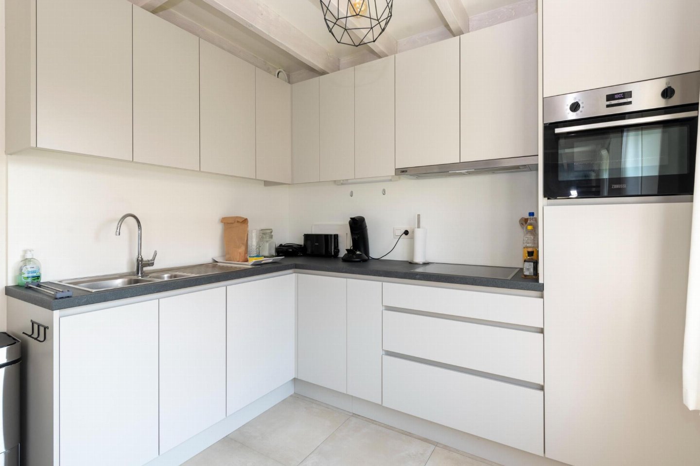 Begane grond: (open keuken(kookplaat, waterkoker, koffiezetapparaat(senseo pads), oven, magnetron, afwasmachine, koelkast( vriesvak)), woon/eetkamer(TV(flatscreen, digital, smart TV), eettafel, zithoek), slaapkamer(2-pers. bed(2 persoons dekbed, 160 x 200 cm)), badkamer(douche(inloopdouche), wastafel, haardroger), toilet(wc), berging(1x kinderbed (excl. beddengoed), 1x kinderstoel), airconditioning)