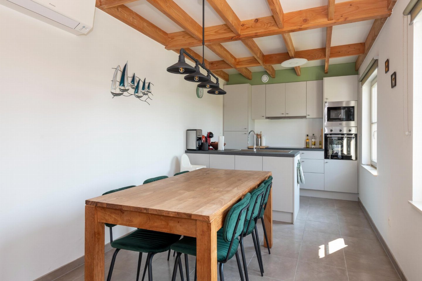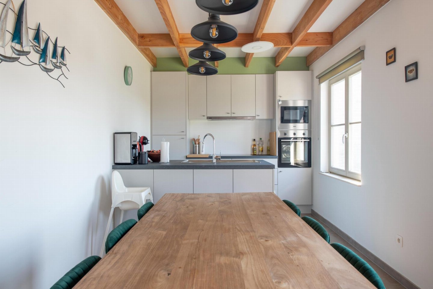 Begane grond: (open keuken(kookplaat, waterkoker, koffiezetapparaat(nespresso cups), oven, magnetron, afwasmachine, koelkast( vriesvak)), woon/eetkamer(TV(flatscreen, digital, smart TV), eettafel, zithoek, 1x kinderstoel), slaapkamer(2-pers. bed(2 x 1 persoons dekbed, 160 x 200 cm)), badkamer(douche(inloopdouche), wastafel, haardroger), toilet(wc), berging, airconditioning)