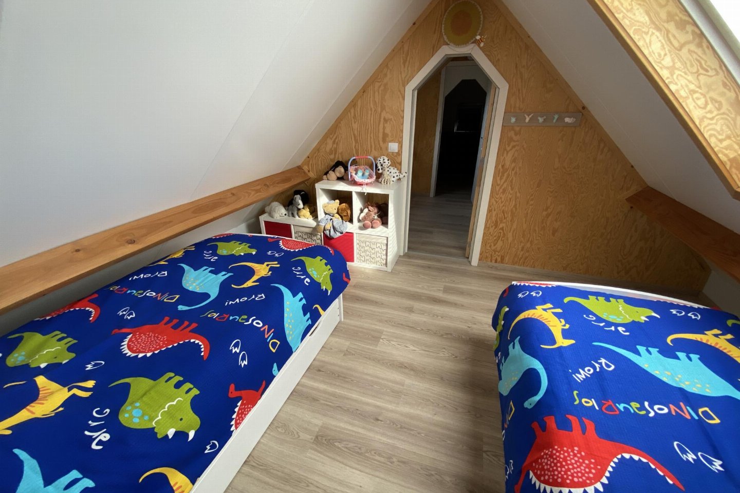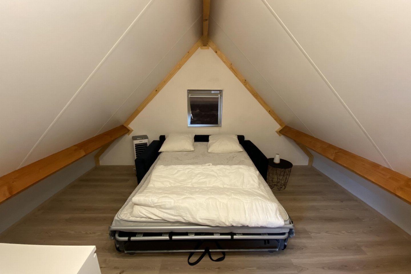 Op de 1e etage: (slaapkamer(2-pers. slaapbank(2 persoons dekbed, 140 x 200 cm)), slaapkamer(2x 1-pers. bed(dekbed, 90 x 200 cm)))