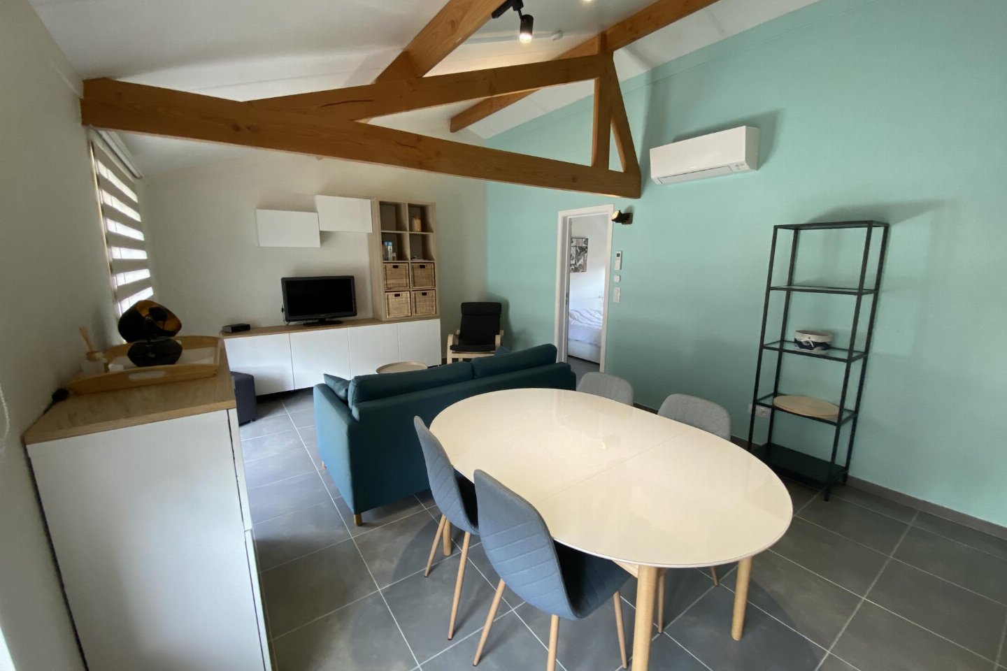 Begane grond: (open keuken(kookplaat, koffiezetapparaat(nespresso cups), oven, magnetron, afwasmachine, koelkast( vriesvak)), woon/eetkamer(TV, eettafel, zithoek, 1x kinderstoel), slaapkamer(2-pers. bed(2 persoons dekbed, 160 x 200 cm)), slaapkamer(2x 1-pers. bed(dekbed, 90 x 200 cm), 1x kinderbed (excl. beddengoed)), badkamer(bad met douche, wastafel), toilet(wc), airconditioning)