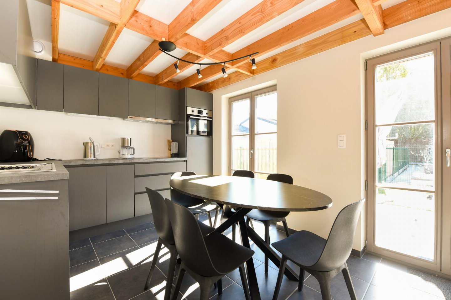 verwarming(elektrisch), tuin(privé, omheind), tuinmeubilair, BBQ(houtskool), 1x parking, parasol