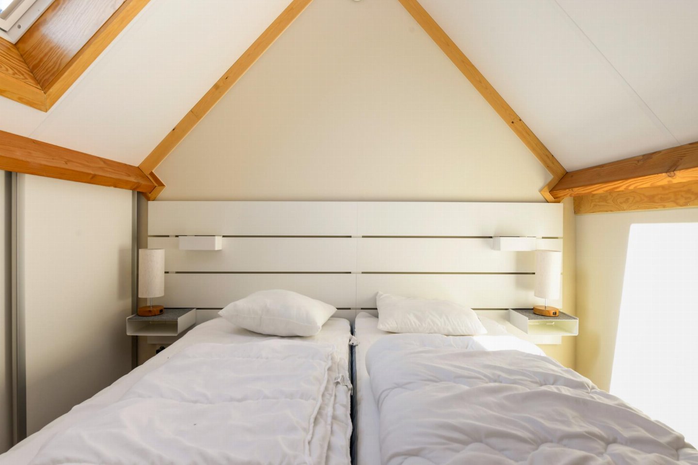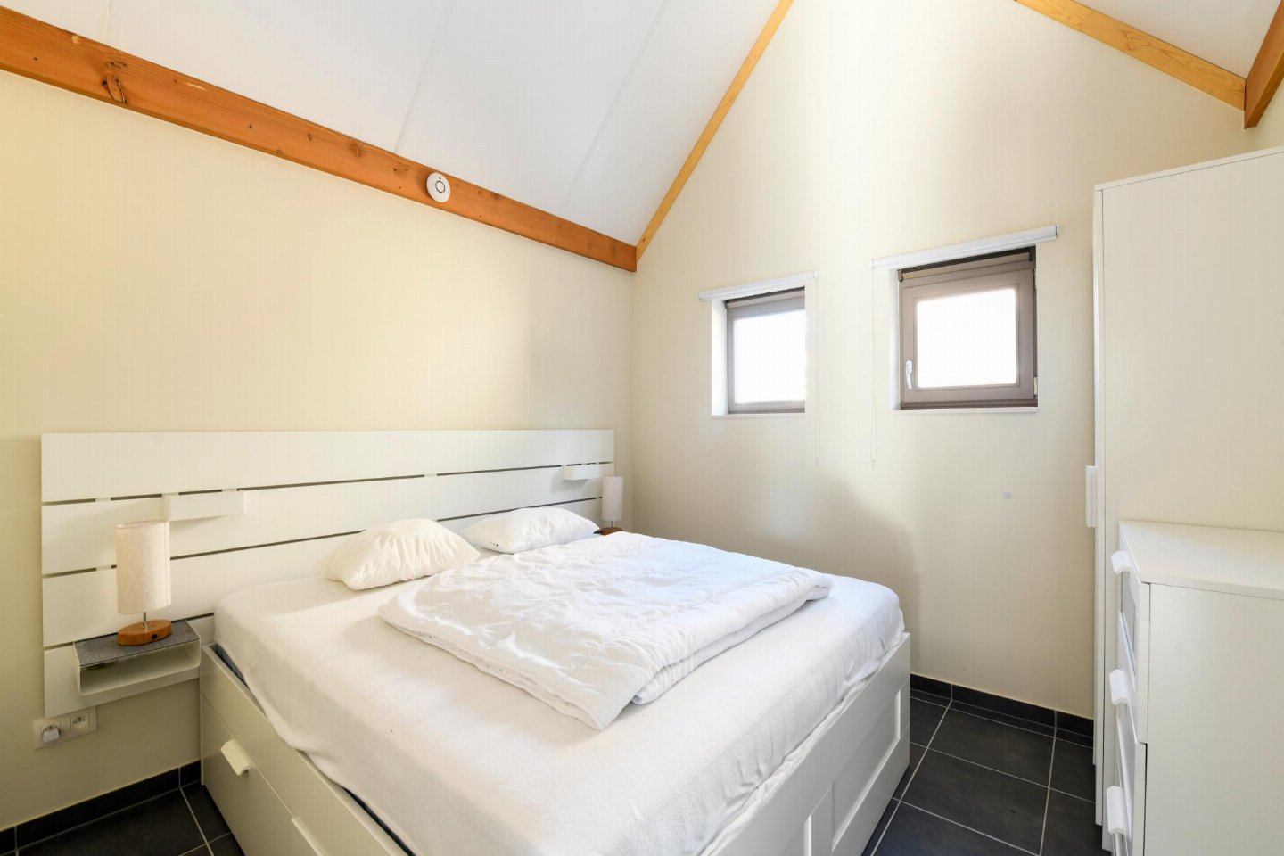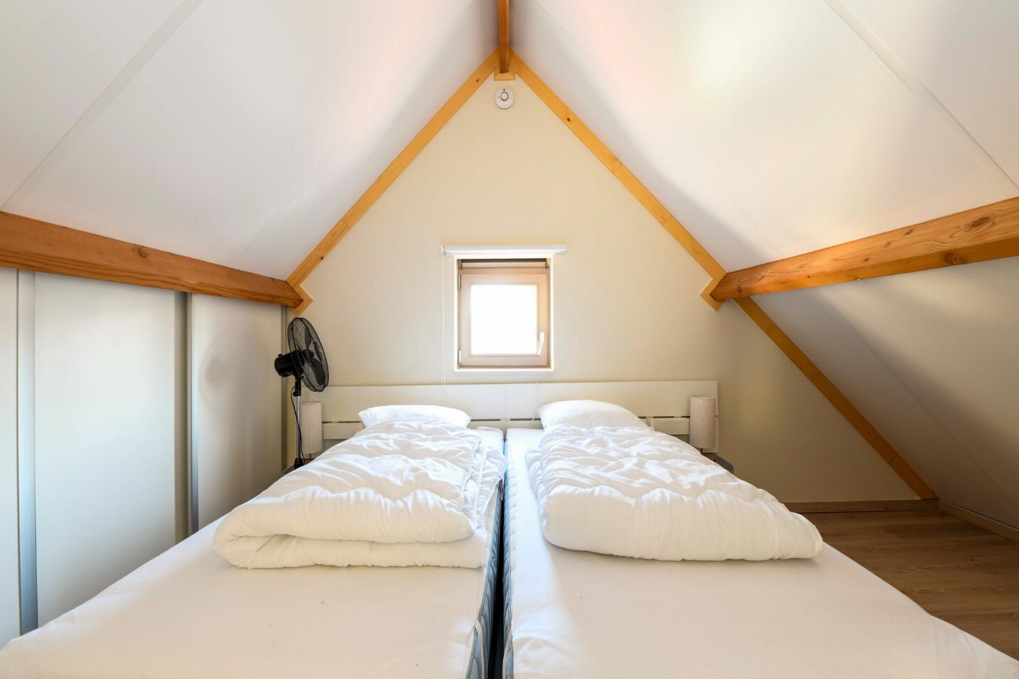 Op de 1e etage: (2x slaapkamer(2x 1-pers. bed(dekbed, 90 x 200 cm)), 1x kinderbed (excl. beddengoed))