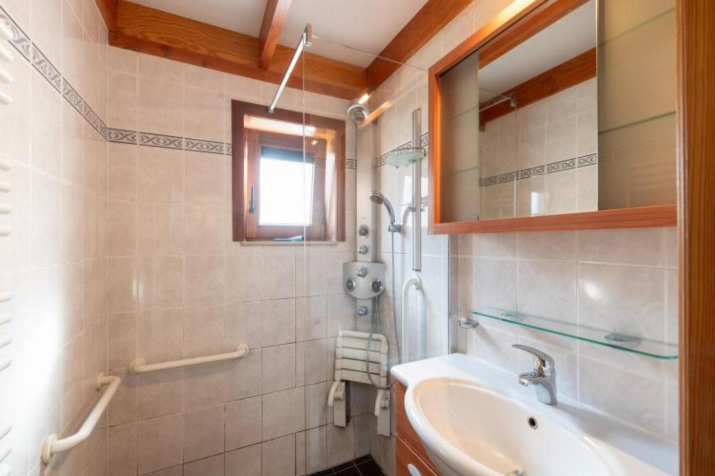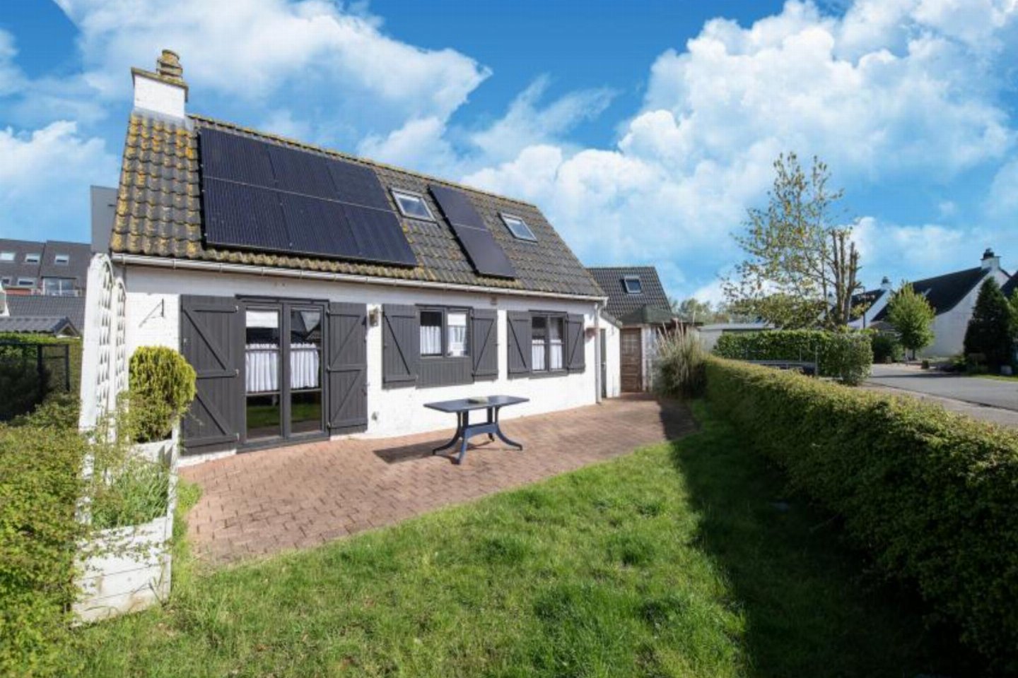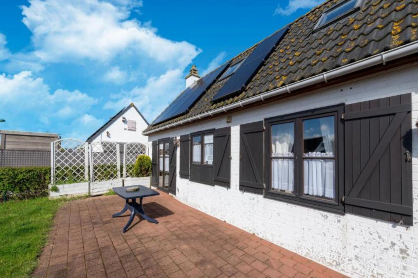 terras, tuin(privé, omheind), tuinmeubilair, BBQ(houtskool), 1x parking(buitenom bereikbaar), parasol, zwembad(gedeeld met andere gasten, buiten, omheind, geopend van Jul t/m Aug)