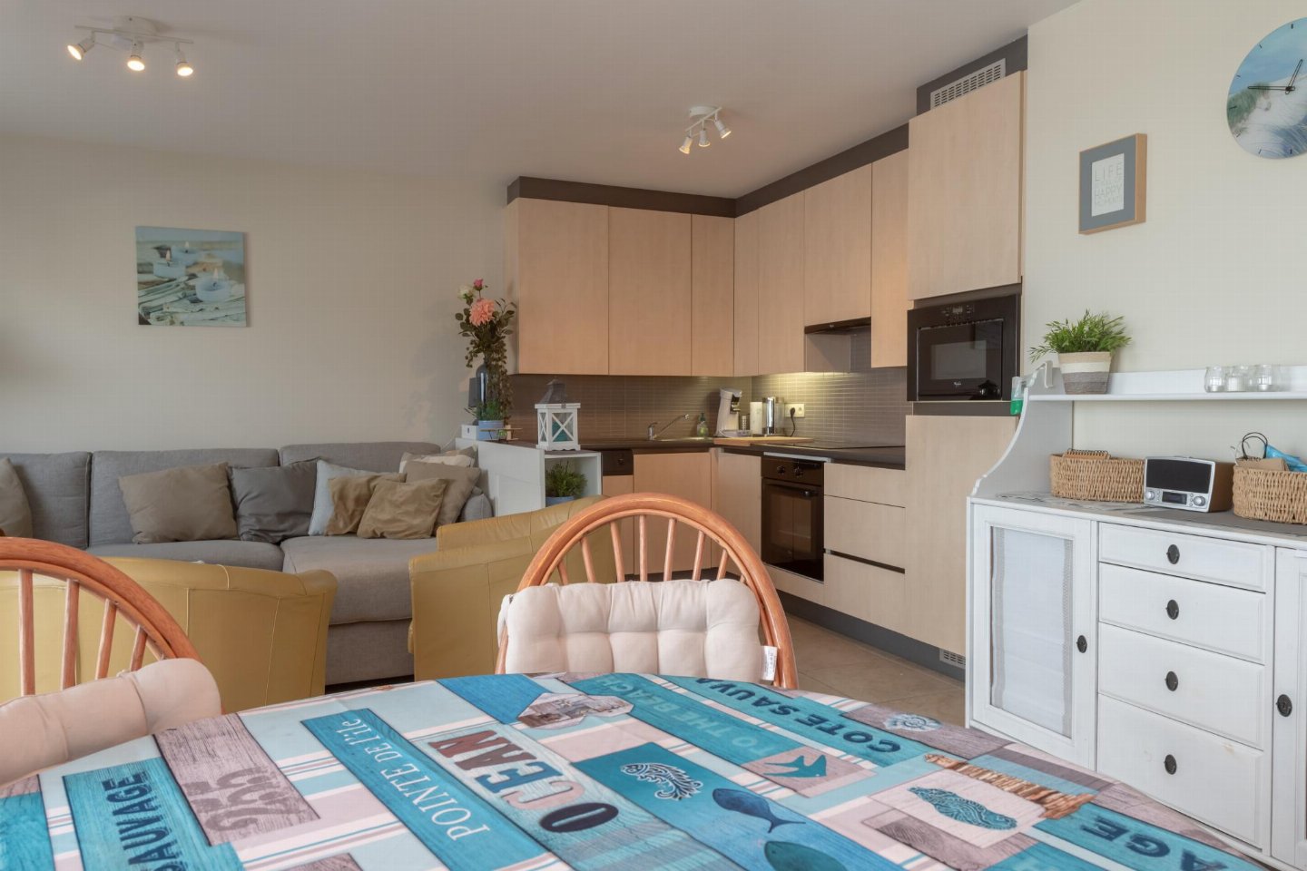 Op de 1e etage: (open keuken(koelkast), woon/eetkamer(2-pers. slaapbank(2 persoons dekbed, 140 x 200 cm), TV, eettafel, zithoek), slaapkamer(2-pers. bed(2 persoons dekbed, 160 x 200 cm)), badkamer(bad met douche, wastafel), toilet(wc), balkon of terras, tuinmeubilair)
